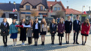 11 listopada delegacja naszej szkoły po raz kolejny wzięła udział w oficjalnych obchodach Narodowego Święta Niepodległości w Małogoszczu. Społeczność szkolną reprezentował poczet sztandarowy i poczet flagowy Szkoły Podstawowej im. Bohaterów Monte Cassino w Rembieszycach wraz z opiekunami oraz panią dyrektor Olgą Muszyńską.