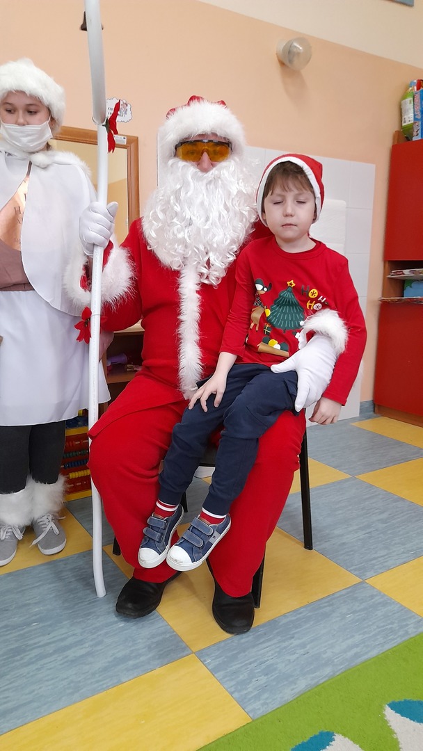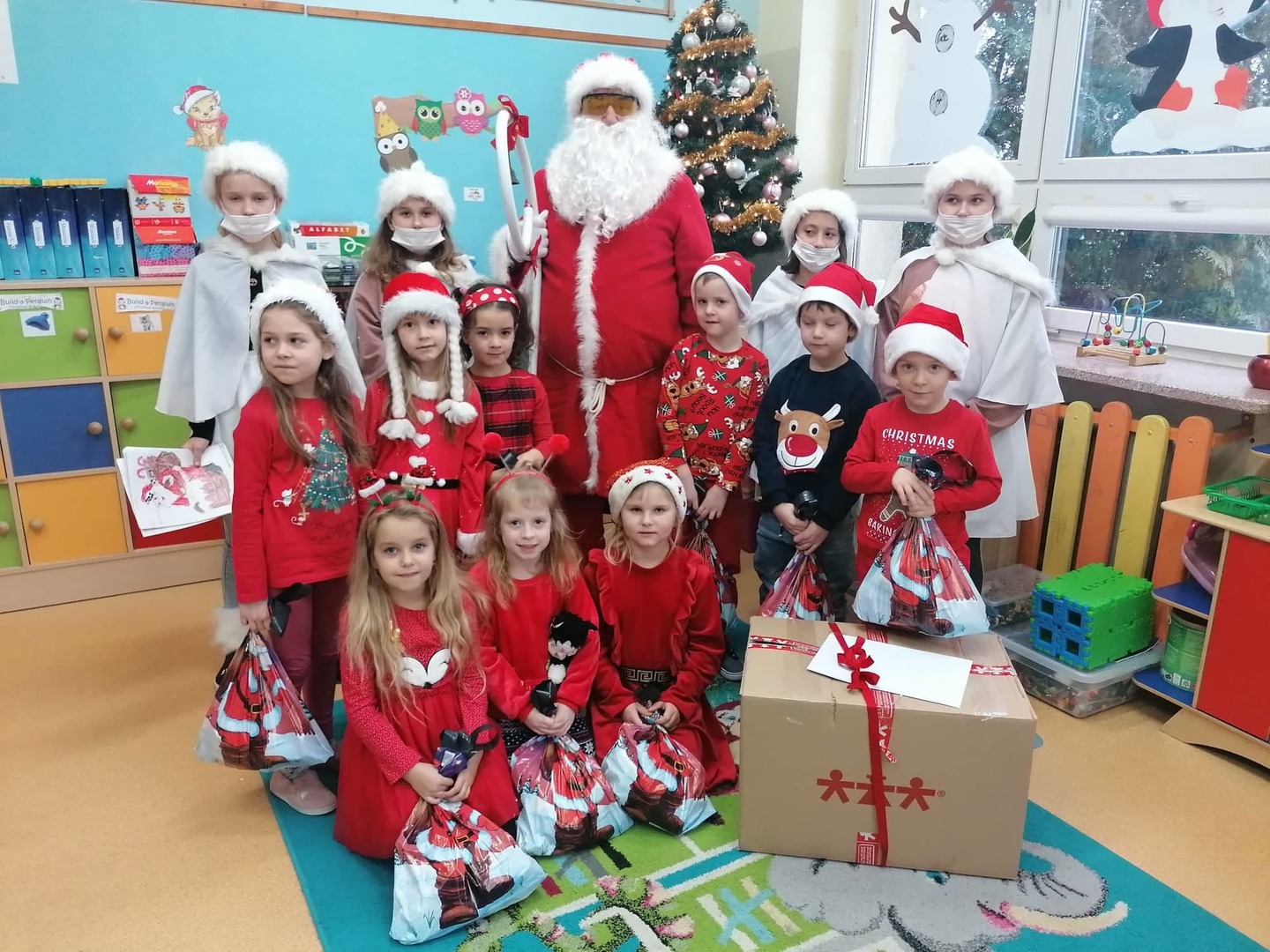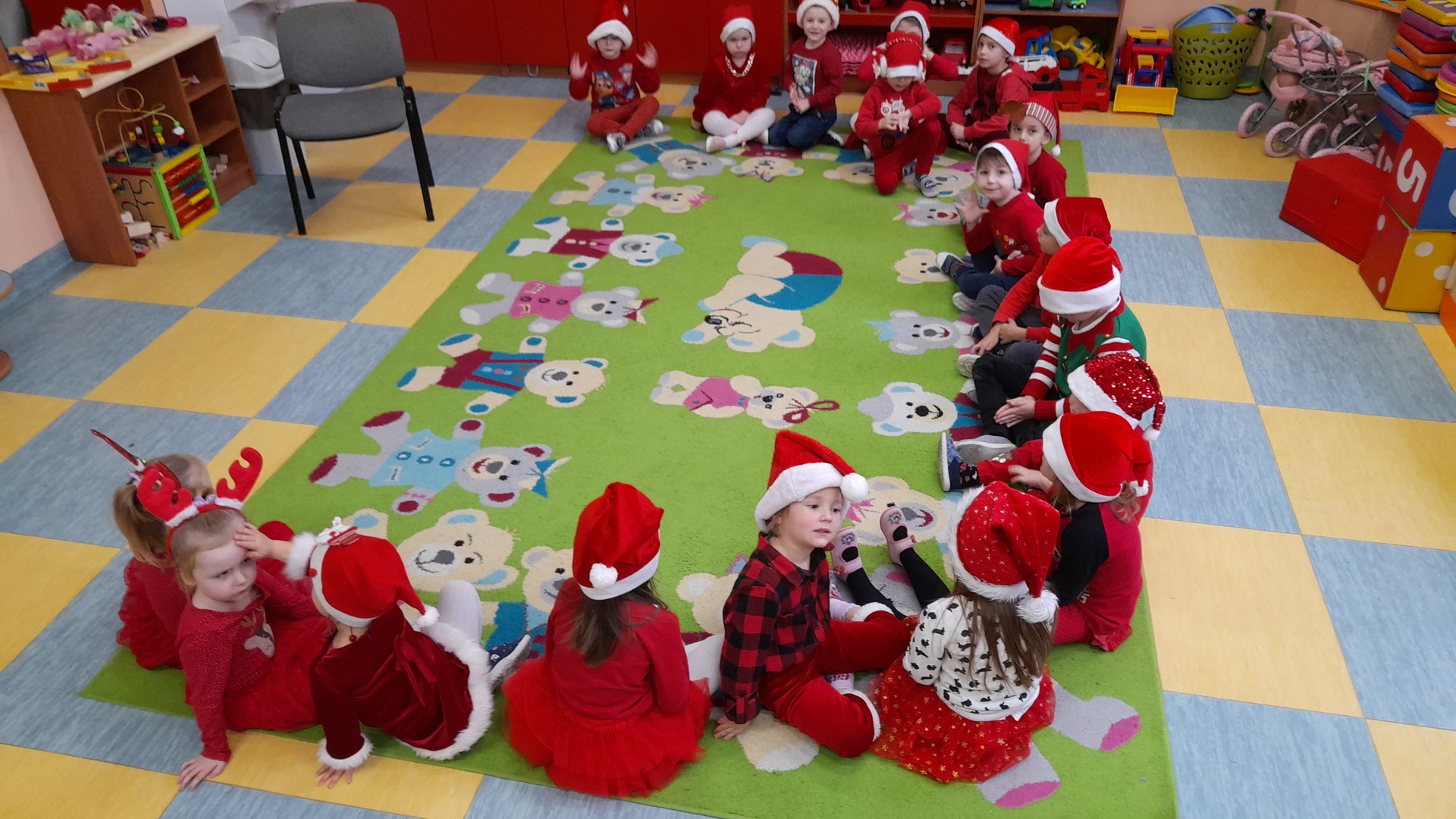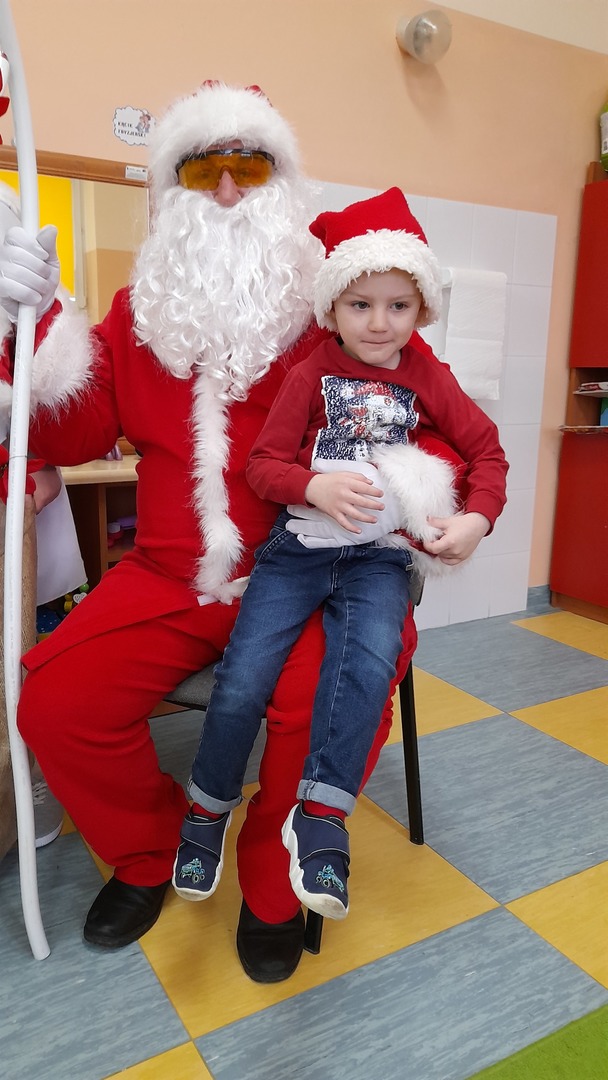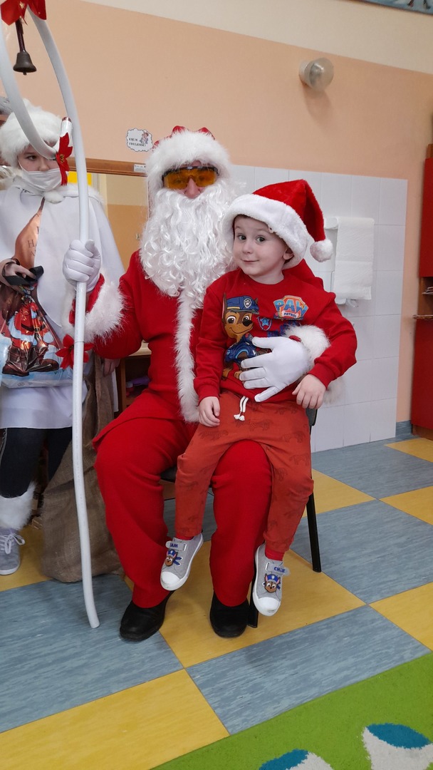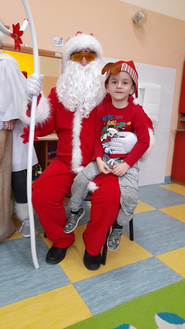 Najbardziej wyczekiwanym dniem w życiu każdego dziecka, jest dzień przybycia Świętego Mikołaja. Nasze pszedszkolaki już od rana nasłuchiwały dźwięku dzwoneczków. Kiedy do sali wszedł Święty Mikołaj na twarzach dzieci pojawiły się szerokie uśmiechy. Nim przedszkolaki otrzymały prezenty od Świętego Mikołaja zaprezentowały swoje umiejętności wokalne. Dzieci zdały egzamin celująco i otrzymały upominki od Świętego Mikołaja. Spotkanie z niezwykłym gościem sprawiło dużo przyjemności, uśmiechu i zabawy. Mikołaj na zakończenie spotkania życzył wszystkim Wesołych Świąt, a także obiecał , że odwiedzi nas w przyszłym roku.