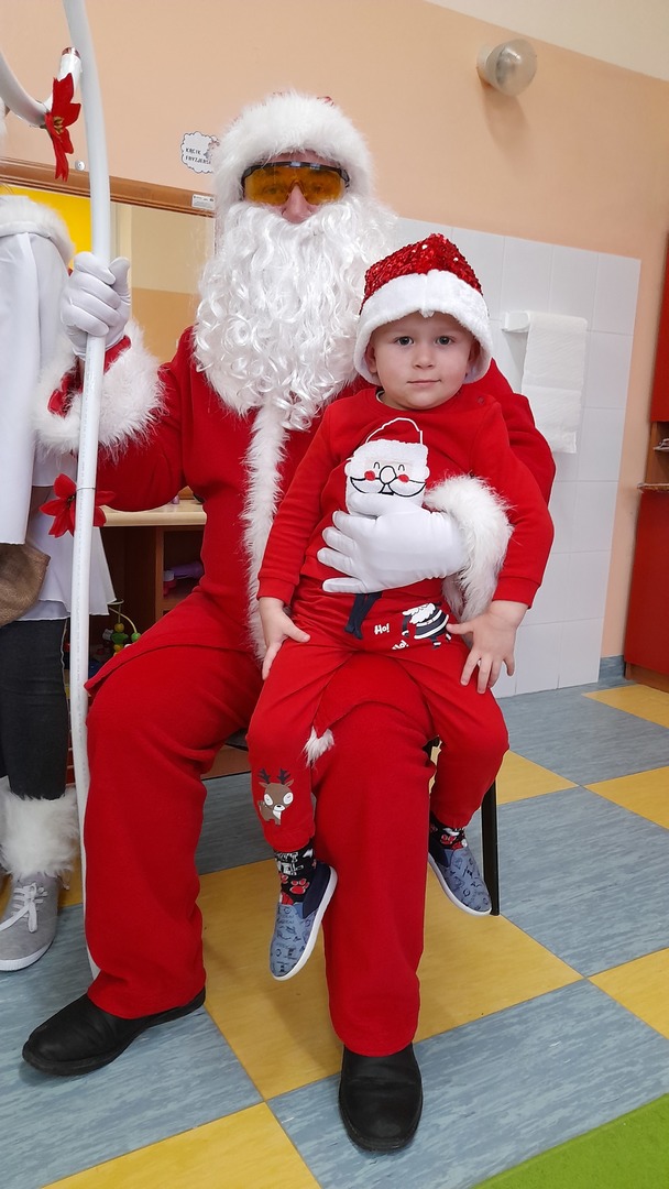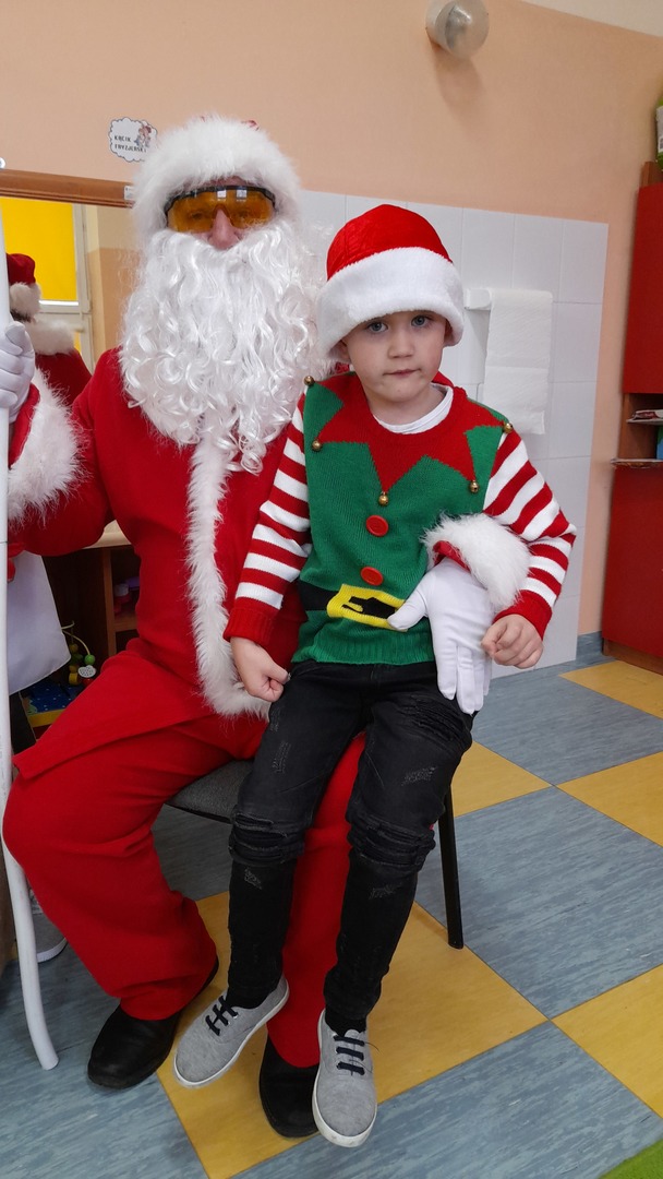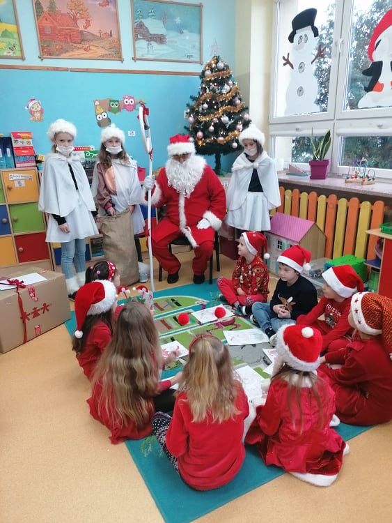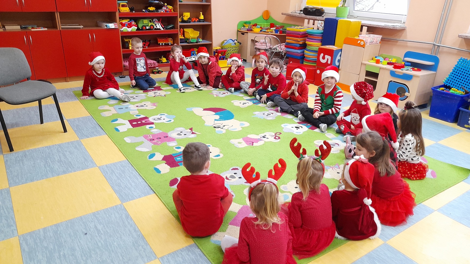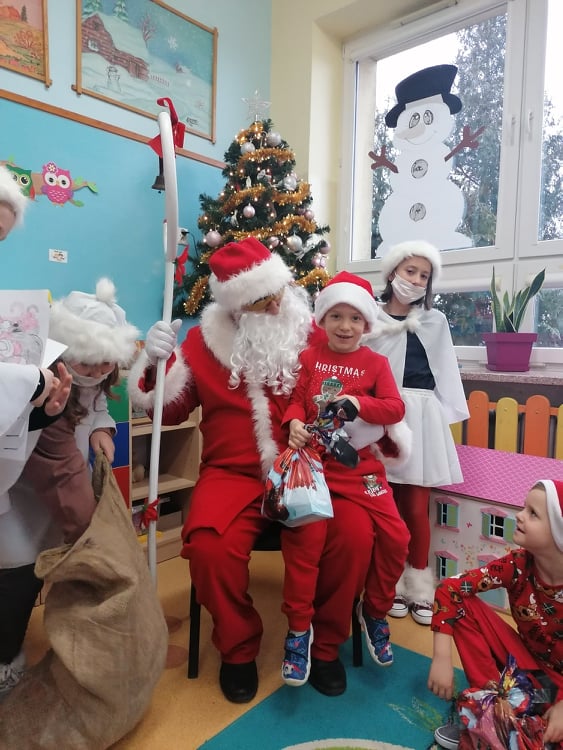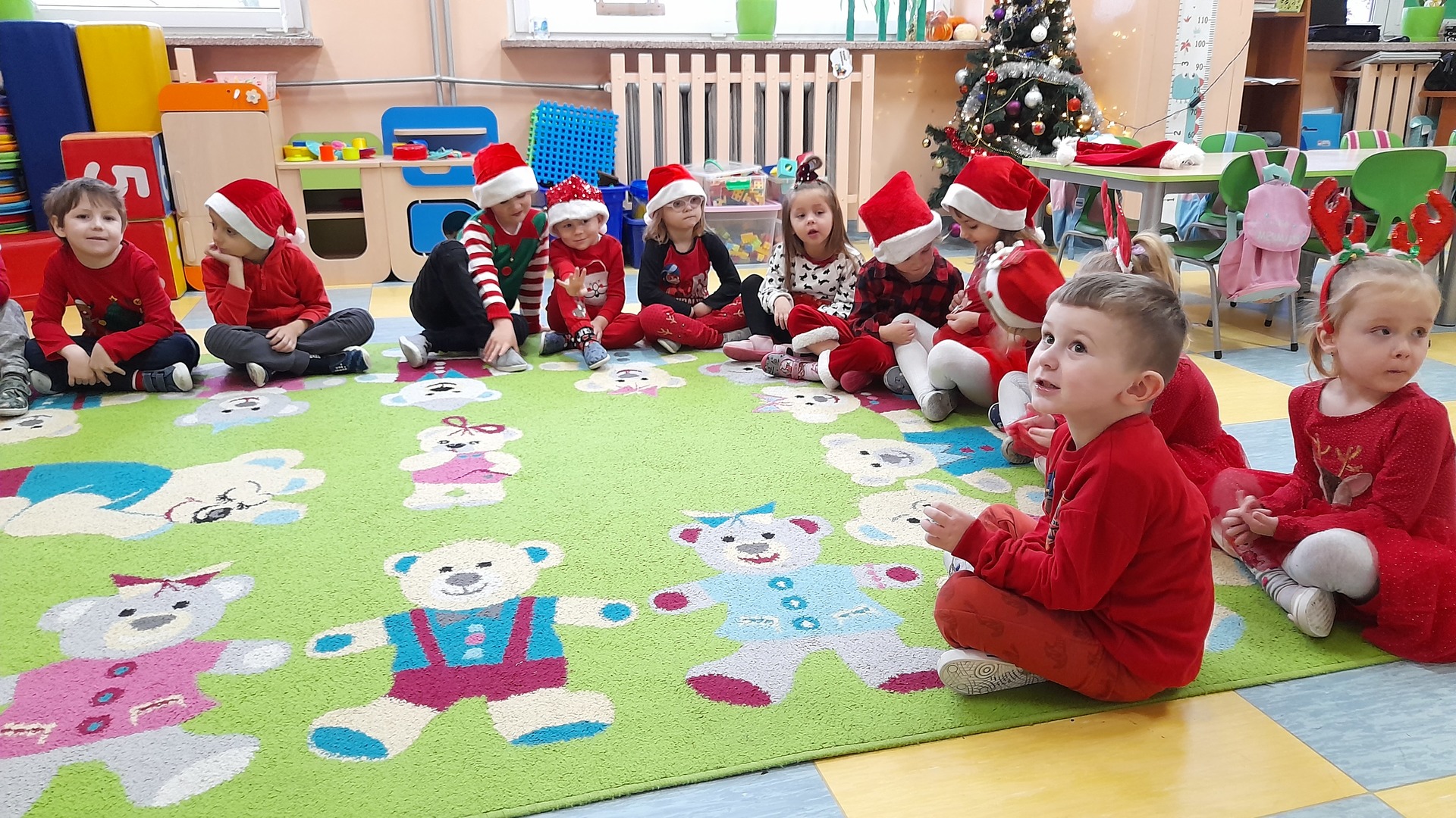 Najbardziej wyczekiwanym dniem w życiu każdego dziecka, jest dzień przybycia Świętego Mikołaja. Nasze pszedszkolaki już od rana nasłuchiwały dźwięku dzwoneczków. Kiedy do sali wszedł Święty Mikołaj na twarzach dzieci pojawiły się szerokie uśmiechy. Nim przedszkolaki otrzymały prezenty od Świętego Mikołaja zaprezentowały swoje umiejętności wokalne. Dzieci zdały egzamin celująco i otrzymały upominki od Świętego Mikołaja. Spotkanie z niezwykłym gościem sprawiło dużo przyjemności, uśmiechu i zabawy. Mikołaj na zakończenie spotkania życzył wszystkim Wesołych Świąt, a także obiecał , że odwiedzi nas w przyszłym roku.