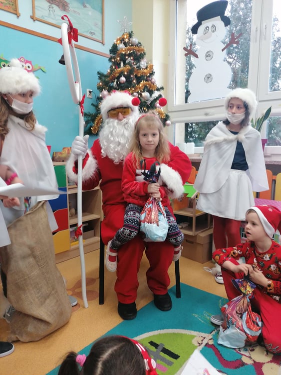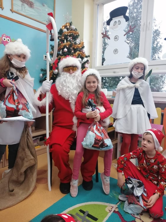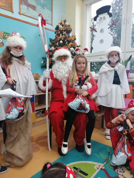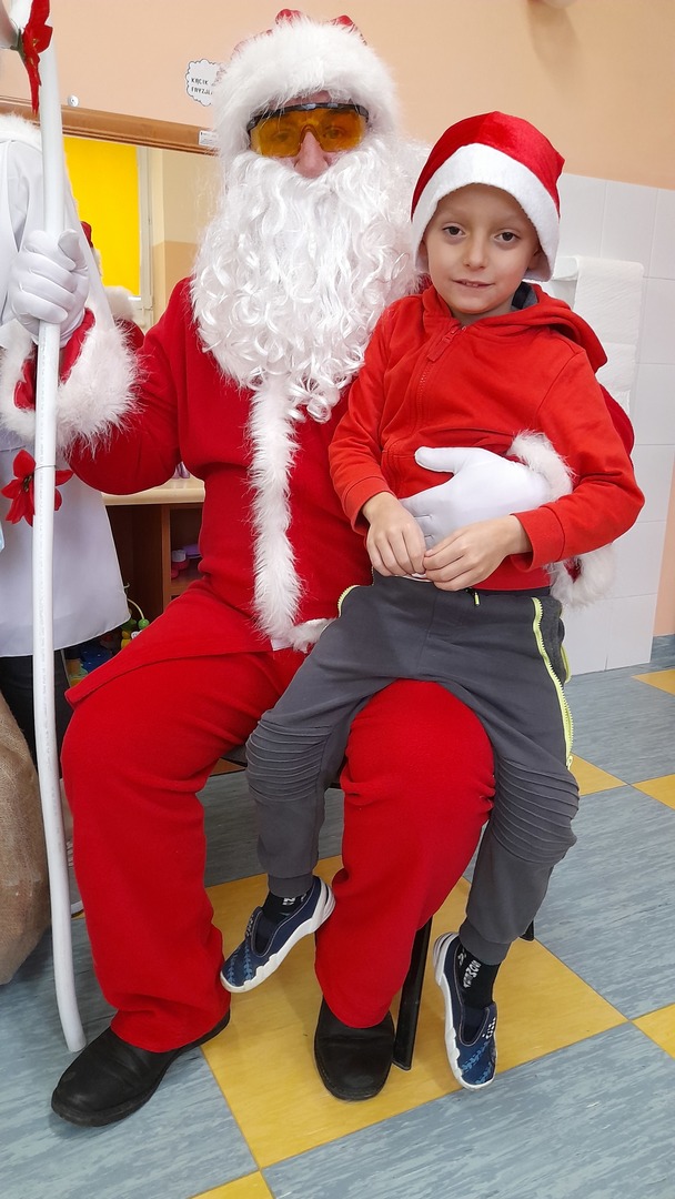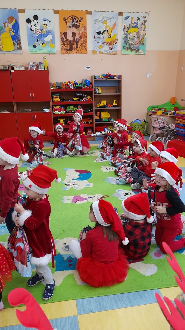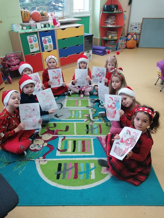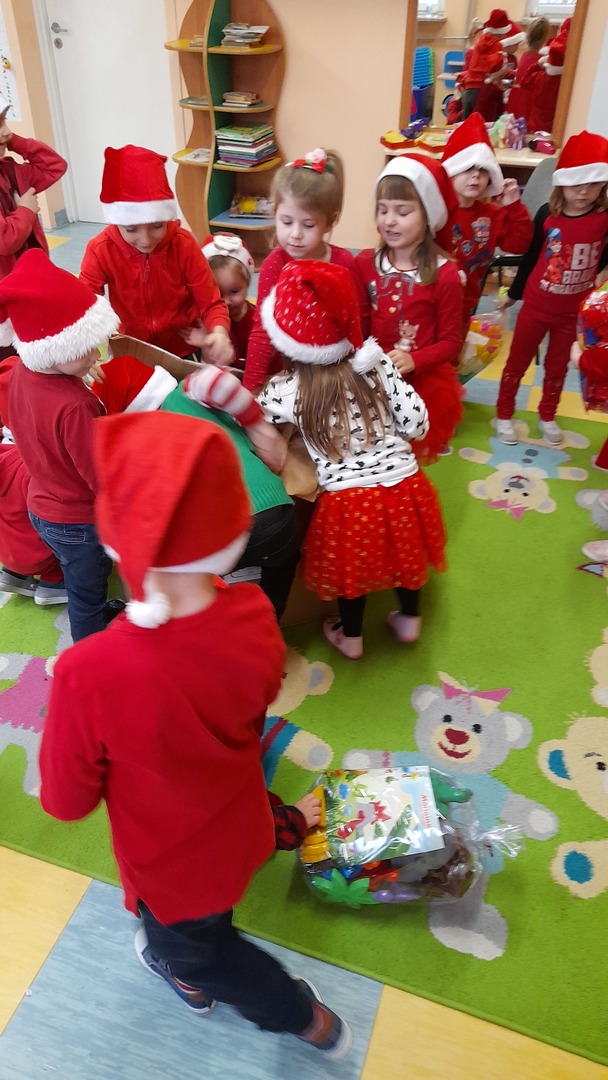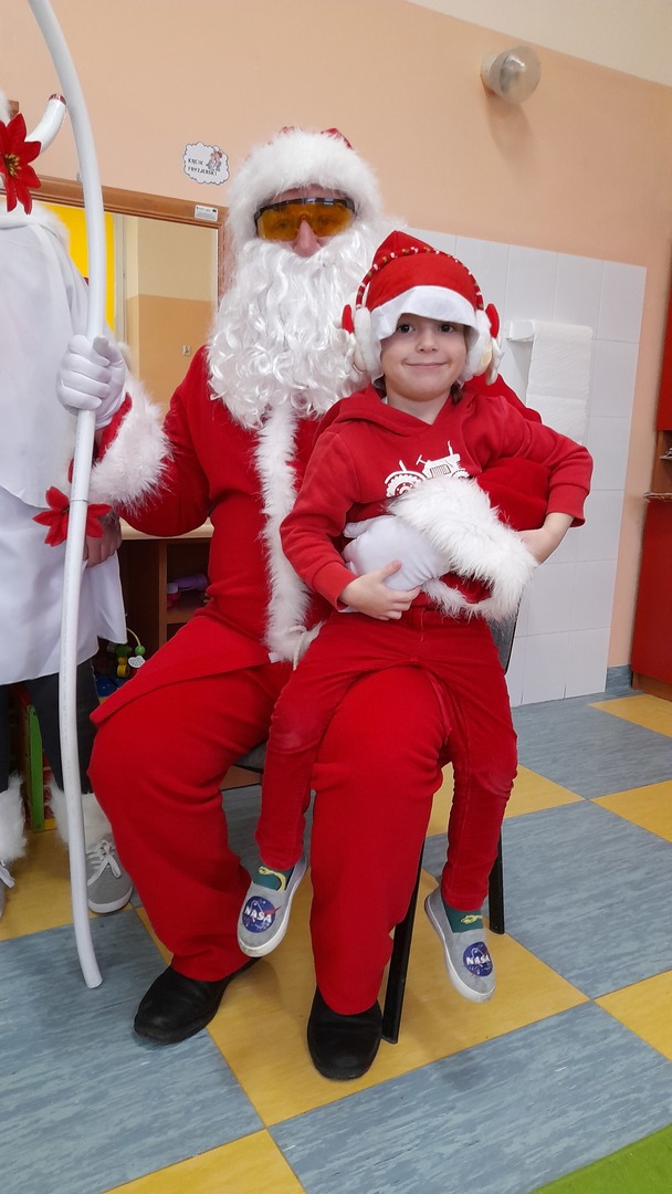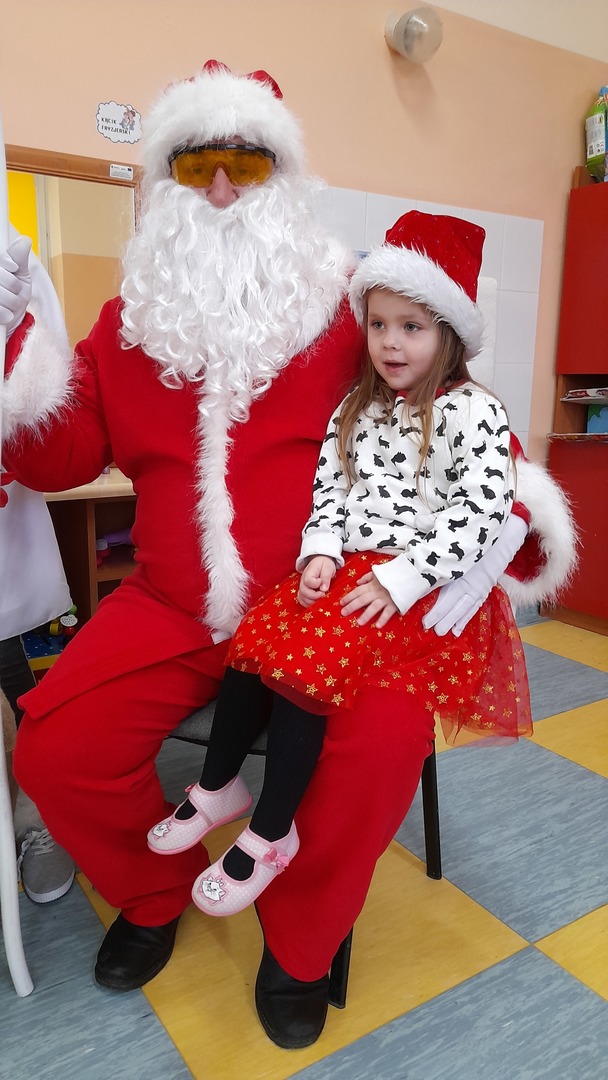 Najbardziej wyczekiwanym dniem w życiu każdego dziecka, jest dzień przybycia Świętego Mikołaja. Nasze pszedszkolaki już od rana nasłuchiwały dźwięku dzwoneczków. Kiedy do sali wszedł Święty Mikołaj na twarzach dzieci pojawiły się szerokie uśmiechy. Nim przedszkolaki otrzymały prezenty od Świętego Mikołaja zaprezentowały swoje umiejętności wokalne. Dzieci zdały egzamin celująco i otrzymały upominki od Świętego Mikołaja. Spotkanie z niezwykłym gościem sprawiło dużo przyjemności, uśmiechu i zabawy. Mikołaj na zakończenie spotkania życzył wszystkim Wesołych Świąt, a także obiecał , że odwiedzi nas w przyszłym roku.