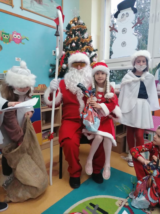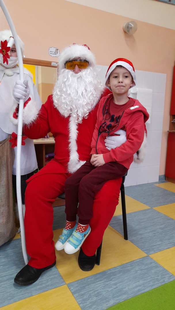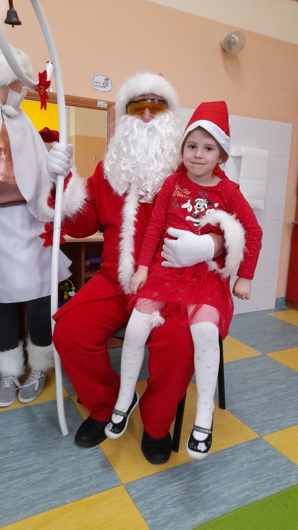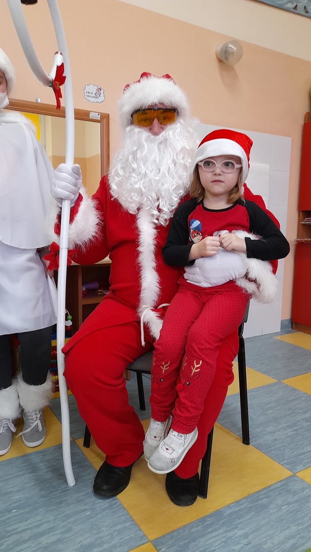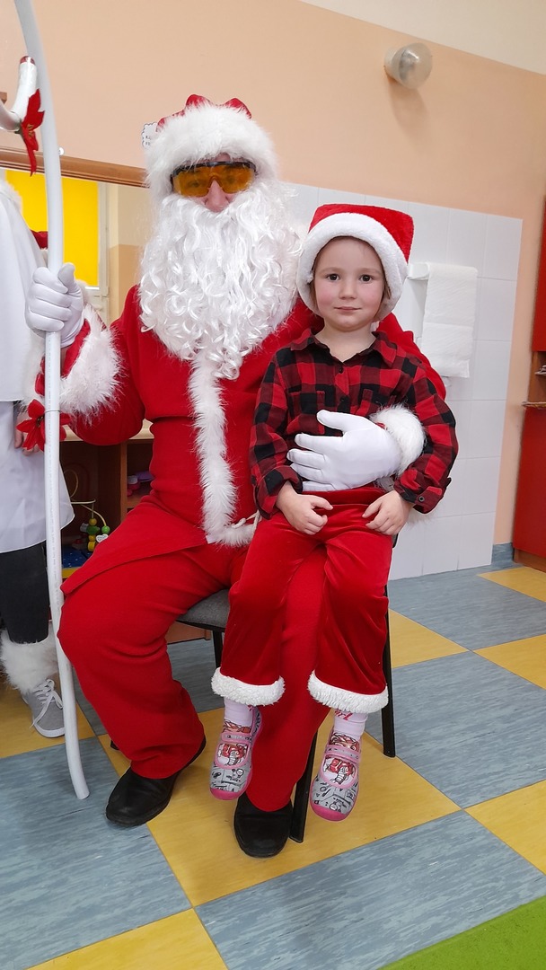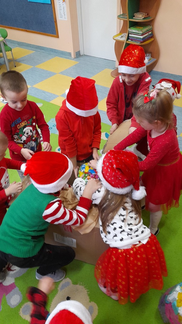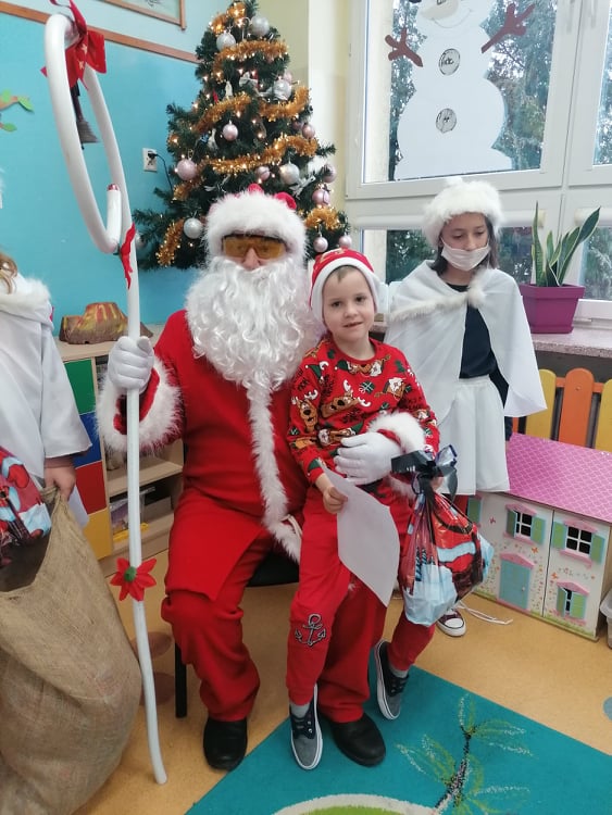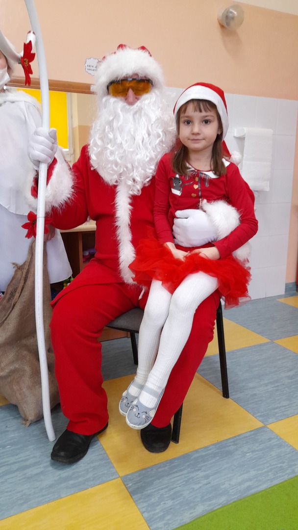 Najbardziej wyczekiwanym dniem w życiu każdego dziecka, jest dzień przybycia Świętego Mikołaja. Nasze pszedszkolaki już od rana nasłuchiwały dźwięku dzwoneczków. Kiedy do sali wszedł Święty Mikołaj na twarzach dzieci pojawiły się szerokie uśmiechy. Nim przedszkolaki otrzymały prezenty od Świętego Mikołaja zaprezentowały swoje umiejętności wokalne. Dzieci zdały egzamin celująco i otrzymały upominki od Świętego Mikołaja. Spotkanie z niezwykłym gościem sprawiło dużo przyjemności, uśmiechu i zabawy. Mikołaj na zakończenie spotkania życzył wszystkim Wesołych Świąt, a także obiecał , że odwiedzi nas w przyszłym roku.