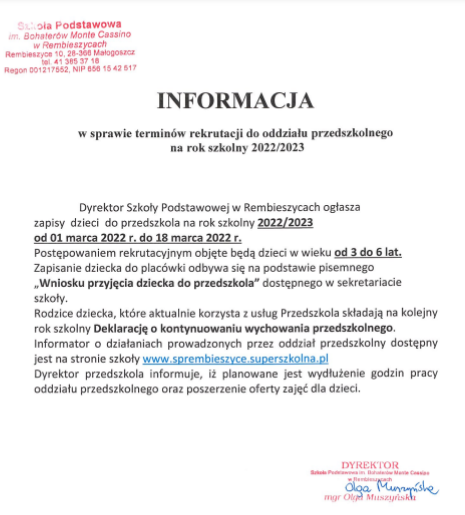 Szkoła Podstawowa im. Bohaterów Monte Cassino w Rembieszycach