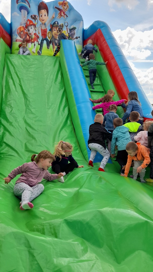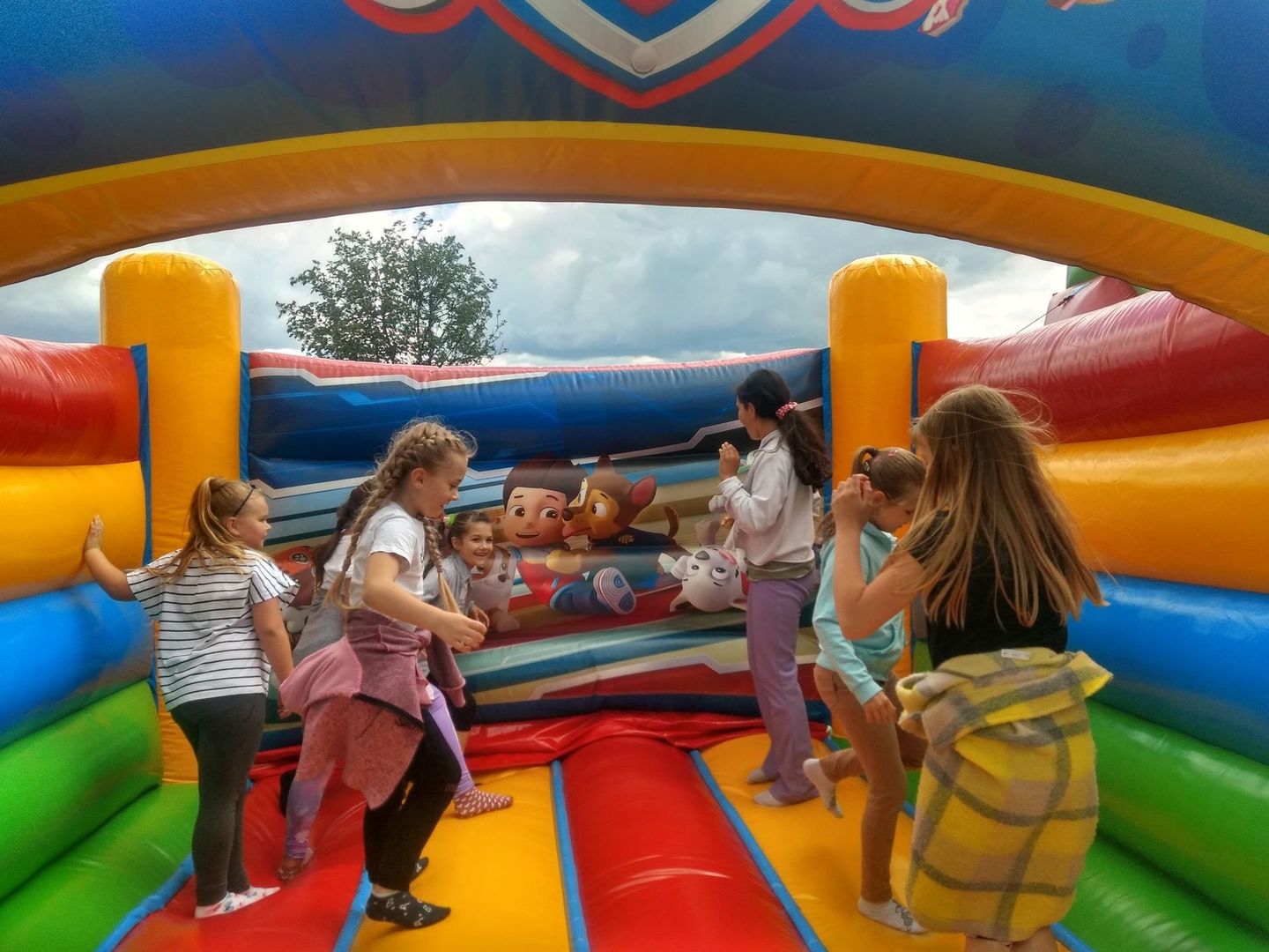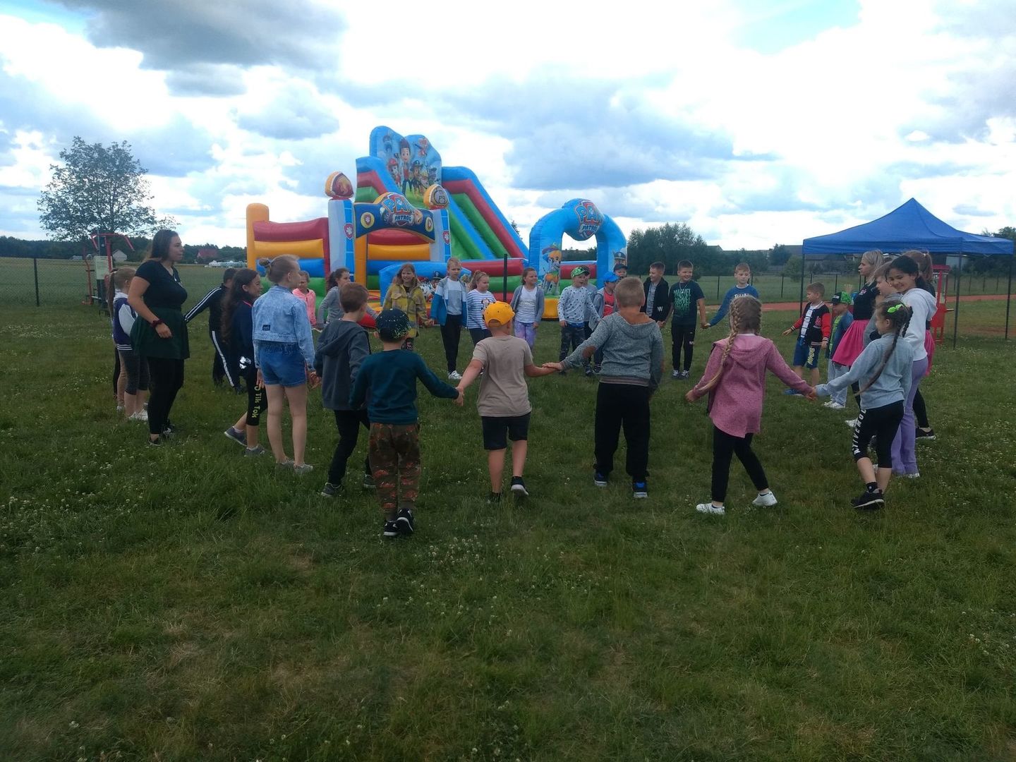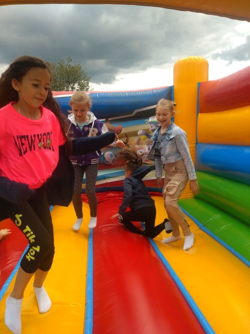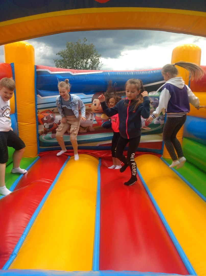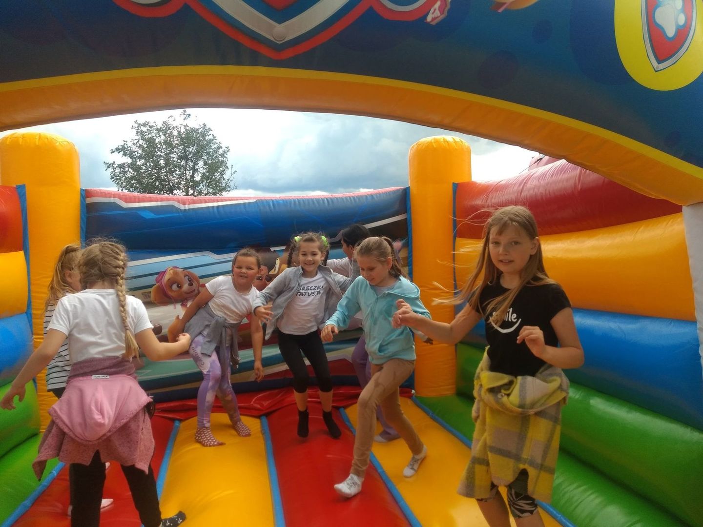 Dzień Dziecka to święto, które uwielbiają wszystkie dzieci, te małe i te duże. Z tej okazji 14 czerwca w naszej szkole został zorganizowany Festyn. Uczestniczyły w nim nasze przedszkolaki, dzieci, które dołączą do naszej drużyny w kolejnym roku przedszkolnym, przedszkolaki z Przedszkola w Małogoszczu oraz uczniowie z klas I-III . Imprezę prowadzili animatorzy z „Bawialni Kosia”. Były tańce, zabawy integracyjne z chustą, dmuchany zamek, trampolina, magiczny pokaz baniek mydlanych. Najmłodszych odwiedził również sympatyczny pies Marshall z Psiego Patrolu. Po wyczerpujących figlach dla wszystkich przygotowany był smakowity poczęstunek: wata cukrowa i popcorn. To był wyjątkowy dzień:)