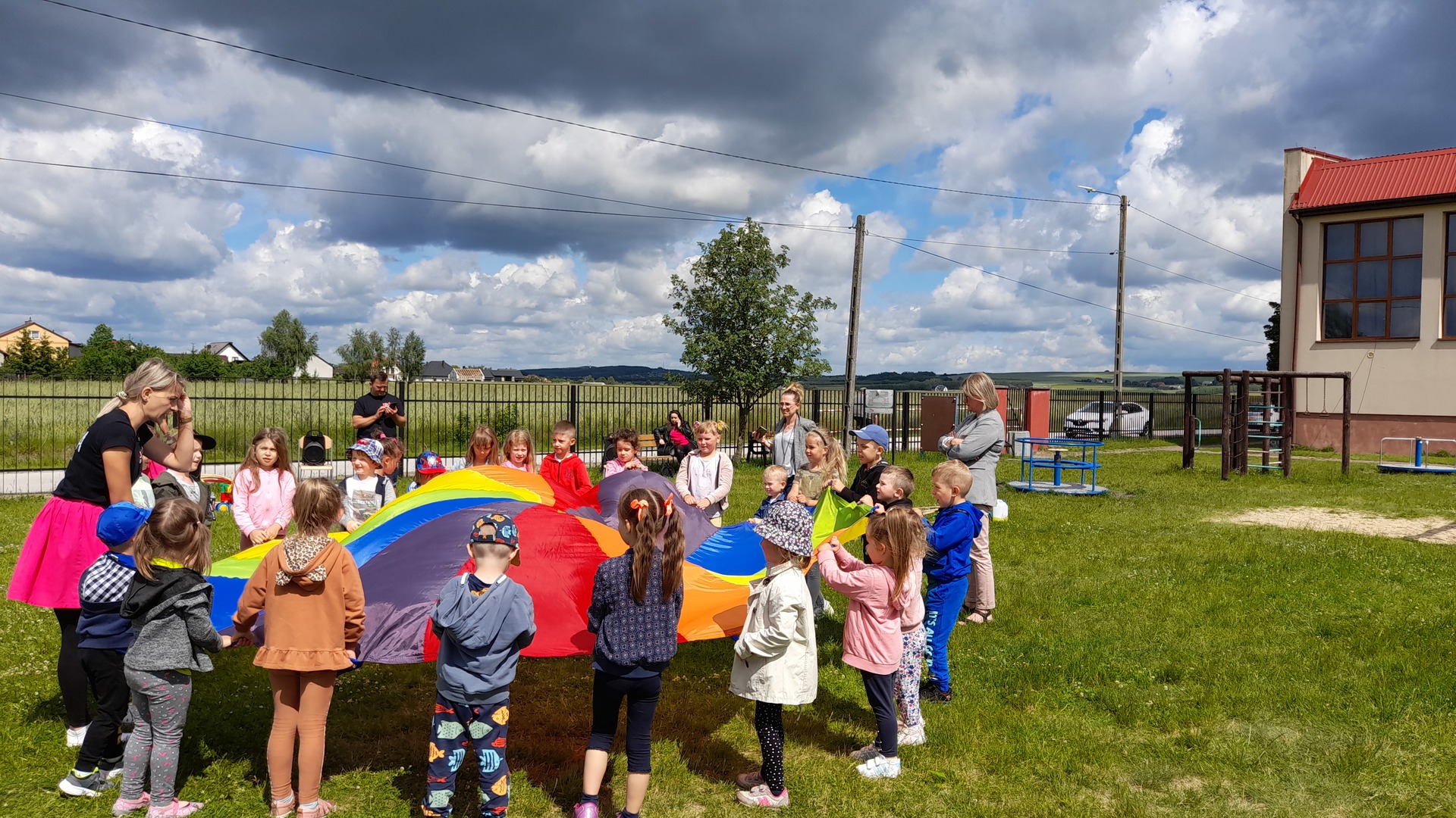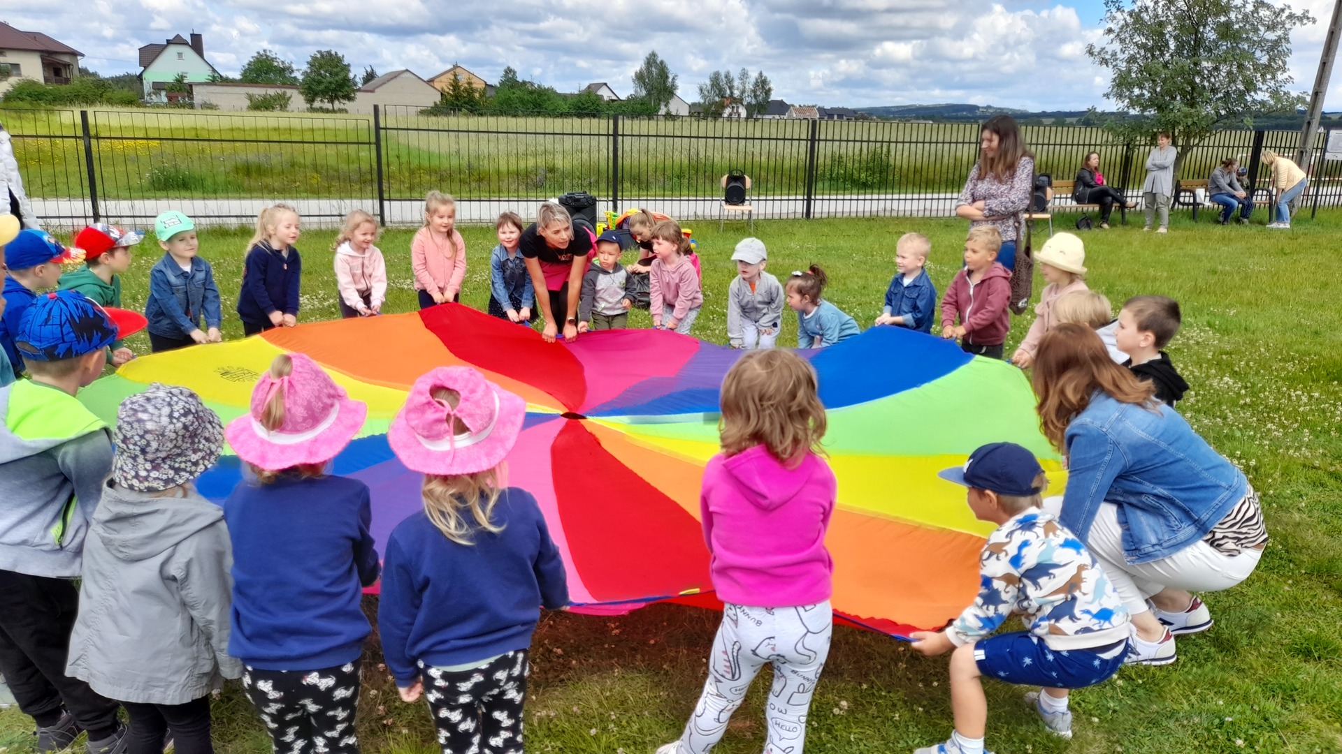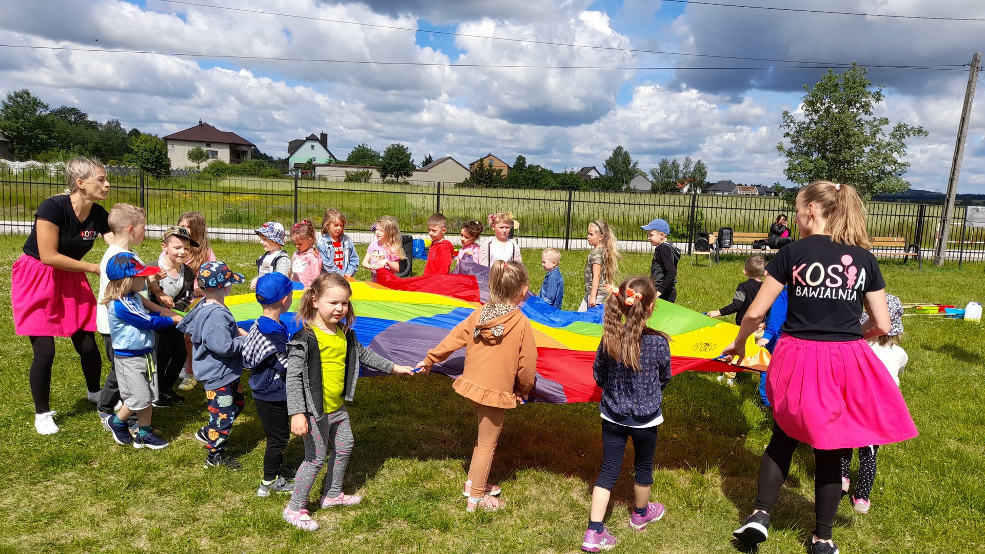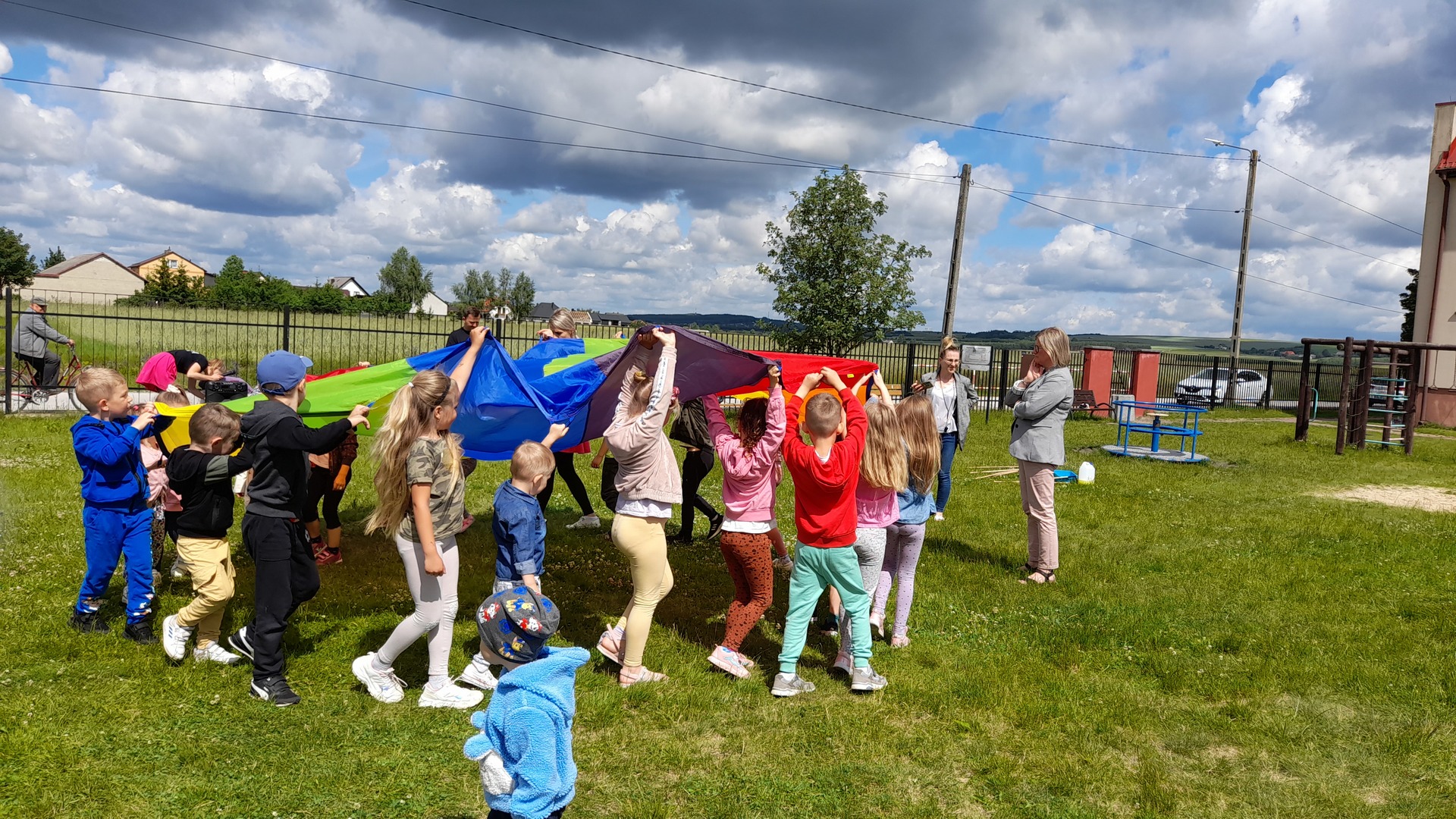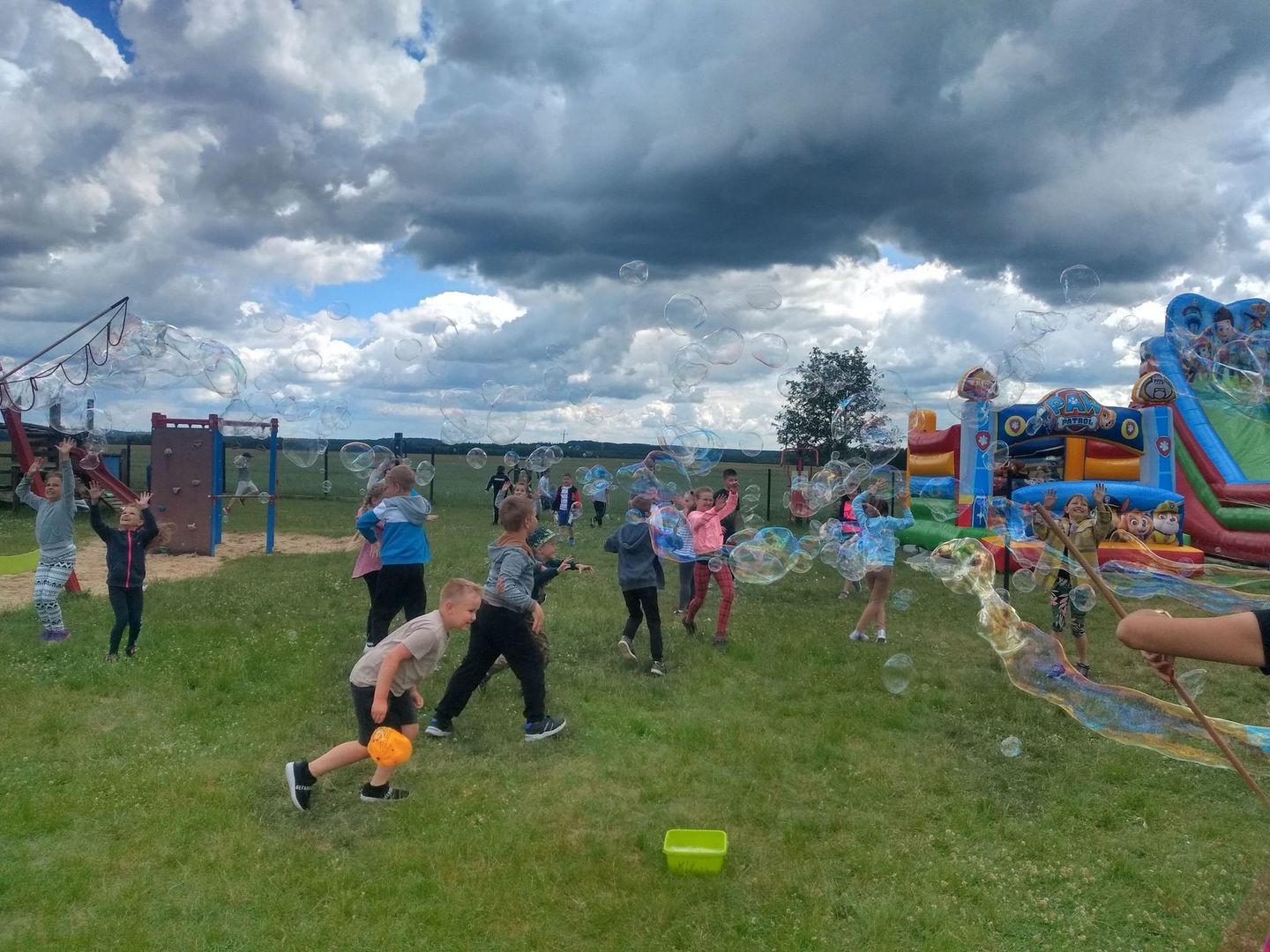 Dzień Dziecka to święto, które uwielbiają wszystkie dzieci, te małe i te duże. Z tej okazji 14 czerwca w naszej szkole został zorganizowany Festyn. Uczestniczyły w nim nasze przedszkolaki, dzieci, które dołączą do naszej drużyny w kolejnym roku przedszkolnym, przedszkolaki z Przedszkola w Małogoszczu oraz uczniowie z klas I-III . Imprezę prowadzili animatorzy z „Bawialni Kosia”. Były tańce, zabawy integracyjne z chustą, dmuchany zamek, trampolina, magiczny pokaz baniek mydlanych. Najmłodszych odwiedził również sympatyczny pies Marshall z Psiego Patrolu. Po wyczerpujących figlach dla wszystkich przygotowany był smakowity poczęstunek: wata cukrowa i popcorn. To był wyjątkowy dzień:)