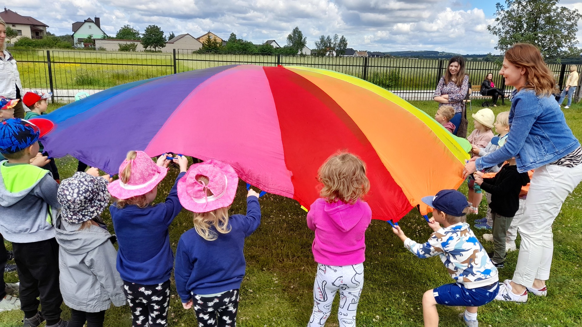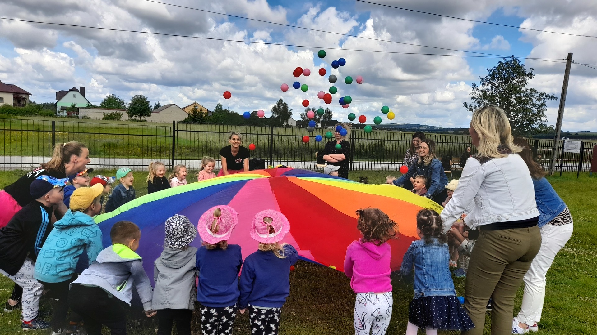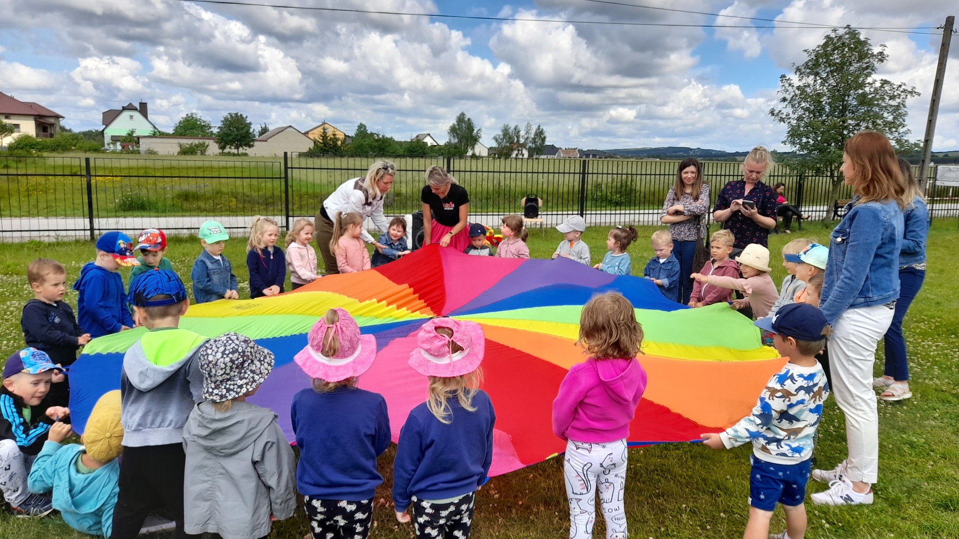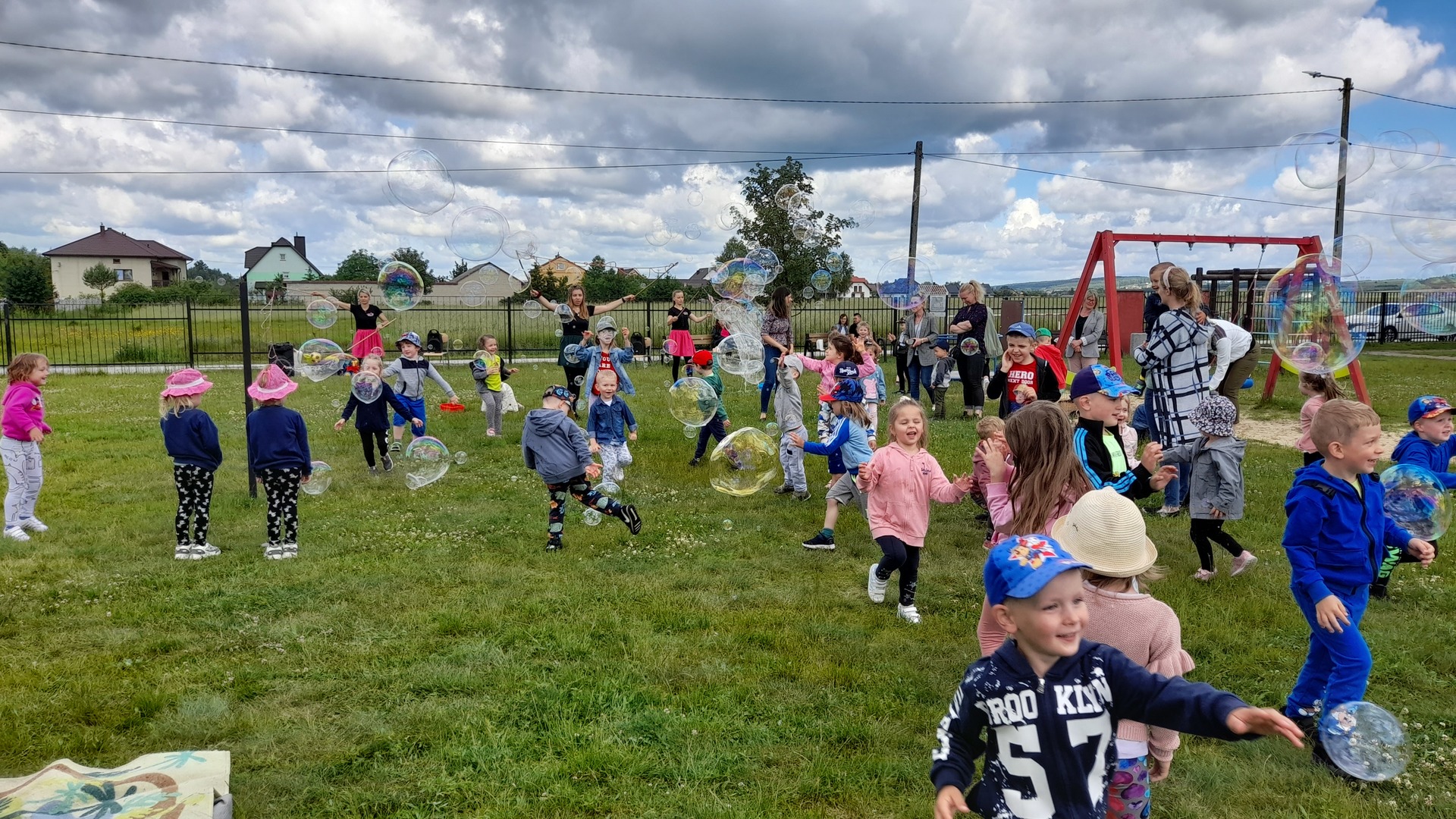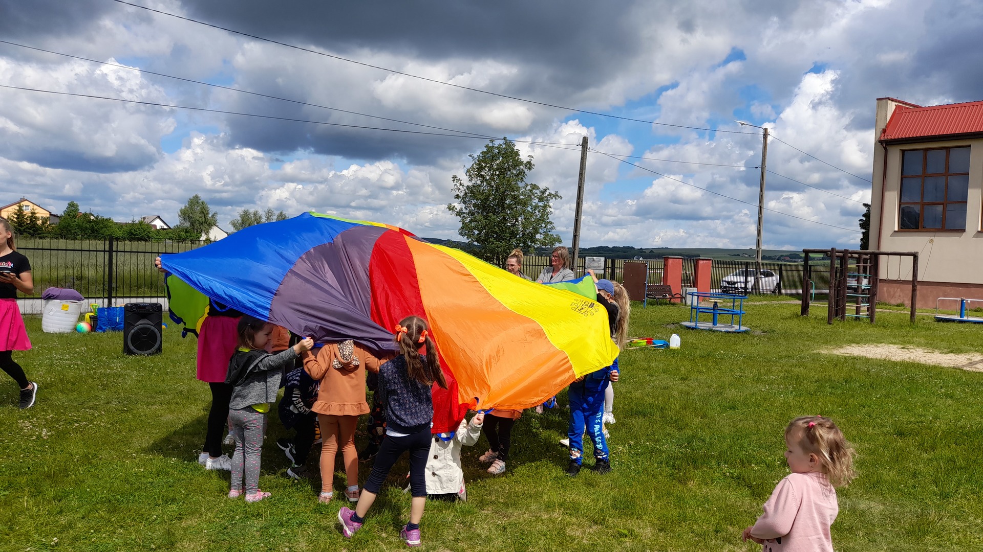 Dzień Dziecka to święto, które uwielbiają wszystkie dzieci, te małe i te duże. Z tej okazji 14 czerwca w naszej szkole został zorganizowany Festyn. Uczestniczyły w nim nasze przedszkolaki, dzieci, które dołączą do naszej drużyny w kolejnym roku przedszkolnym, przedszkolaki z Przedszkola w Małogoszczu oraz uczniowie z klas I-III . Imprezę prowadzili animatorzy z „Bawialni Kosia”. Były tańce, zabawy integracyjne z chustą, dmuchany zamek, trampolina, magiczny pokaz baniek mydlanych. Najmłodszych odwiedził również sympatyczny pies Marshall z Psiego Patrolu. Po wyczerpujących figlach dla wszystkich przygotowany był smakowity poczęstunek: wata cukrowa i popcorn. To był wyjątkowy dzień:)