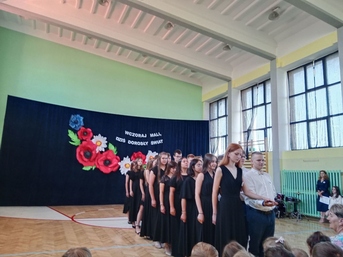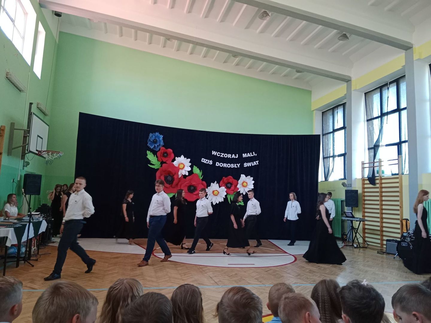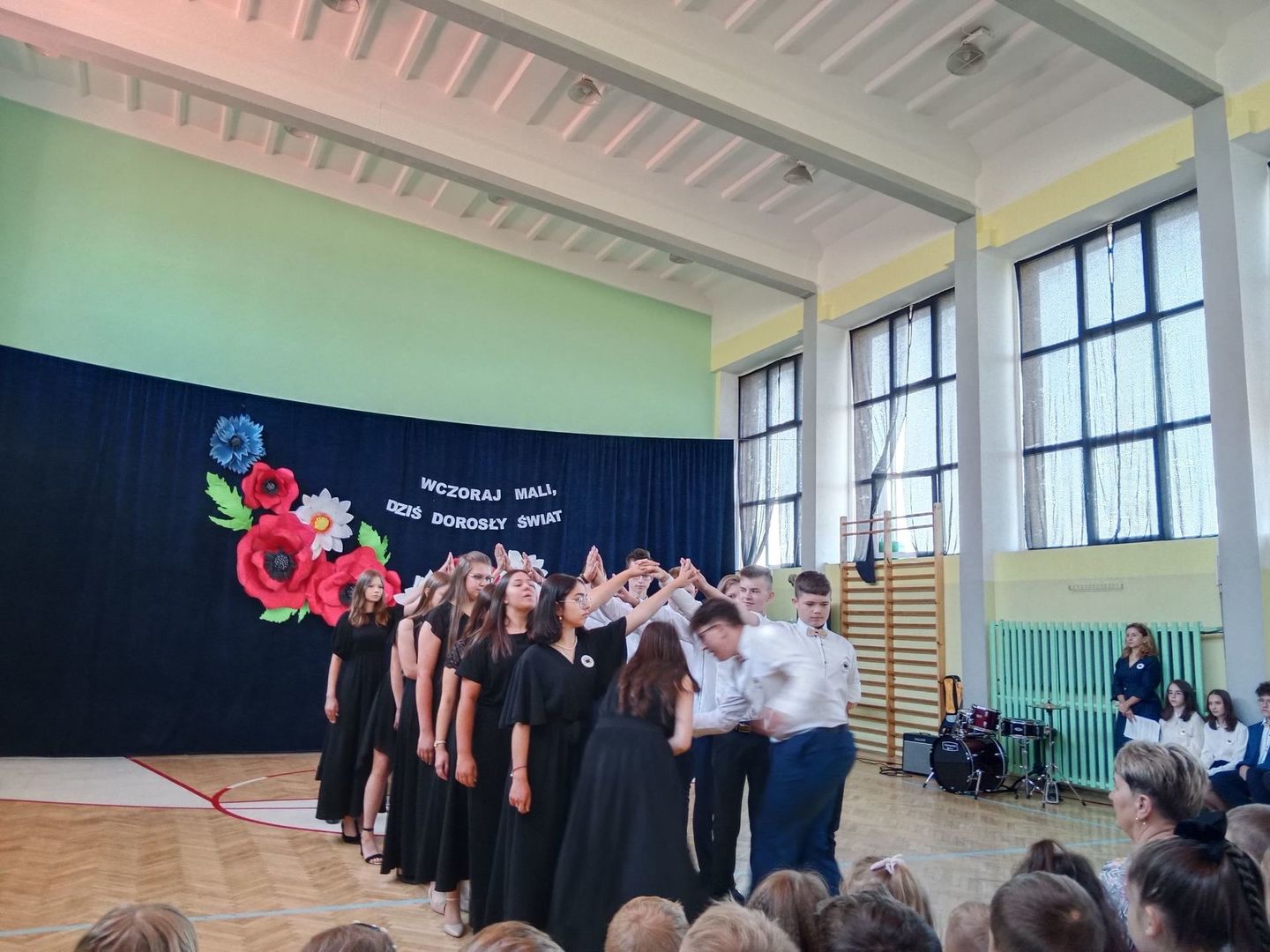 Czas nieubłaganie płynie, podróż ósmoklasistów pod kierunkiem wychowawczyni pani Benedykty Jopek w naszej szkole dobiegła końca, ale zanim się rozstaliśmy, jeszcze raz mogliśmy podziwiać ich rozliczne talenty muzyczno - wokalne. Piękny polonez, montaż słowno muzyczny ,,Wczoraj mali, dziś dorosły świat'', na długo pozostaną w naszej pamięci. Nie zabrakło słów podziękowań dla pani dyrektor Olgi Muszyńskiej, księdza proboszcza Zbigniewa Bienia, nauczycieli, pracowników szkoły, a także rodziców. Były życzenia i nagrody dla wyróżniających się uczniów, listy gratulacyjne dla rodziców.