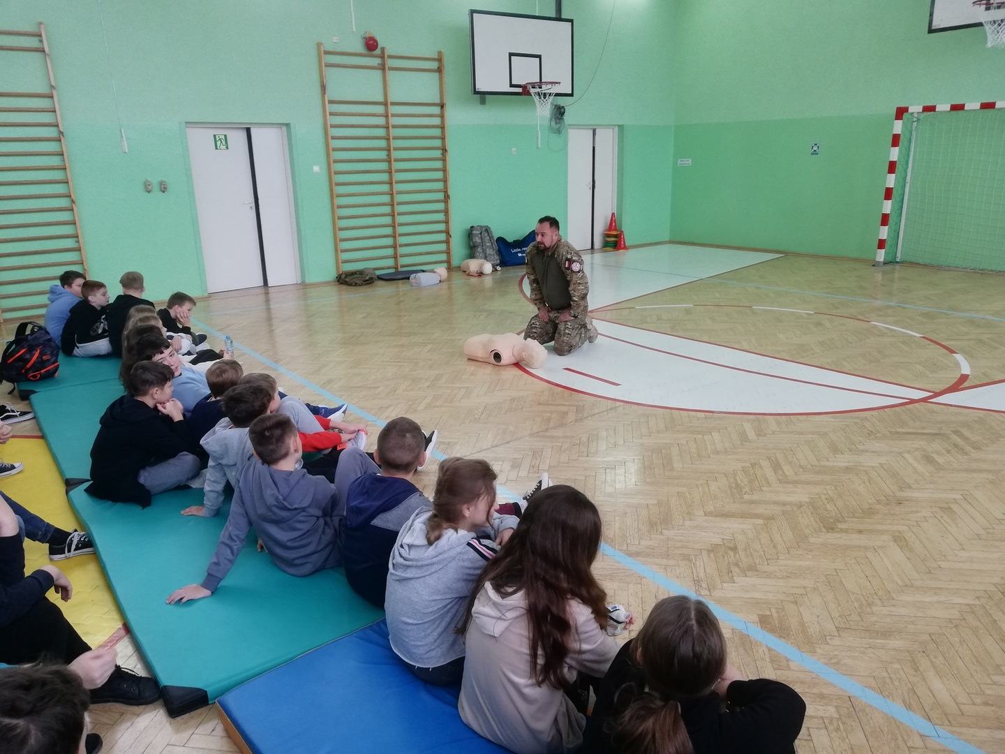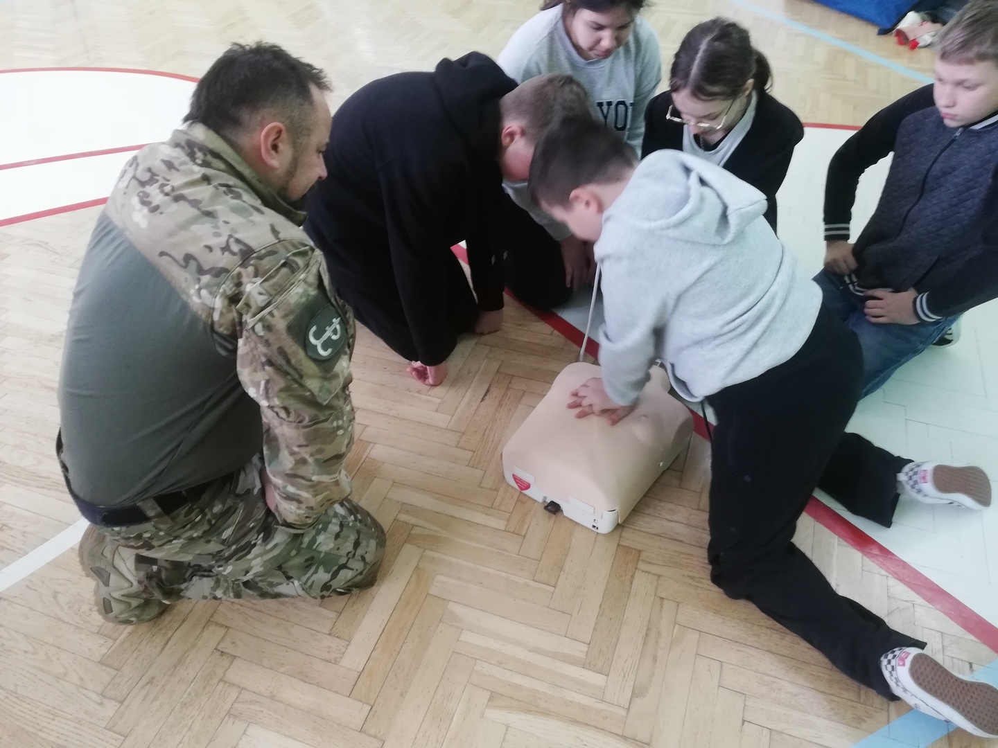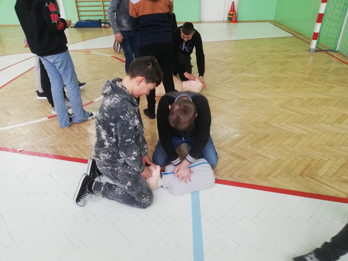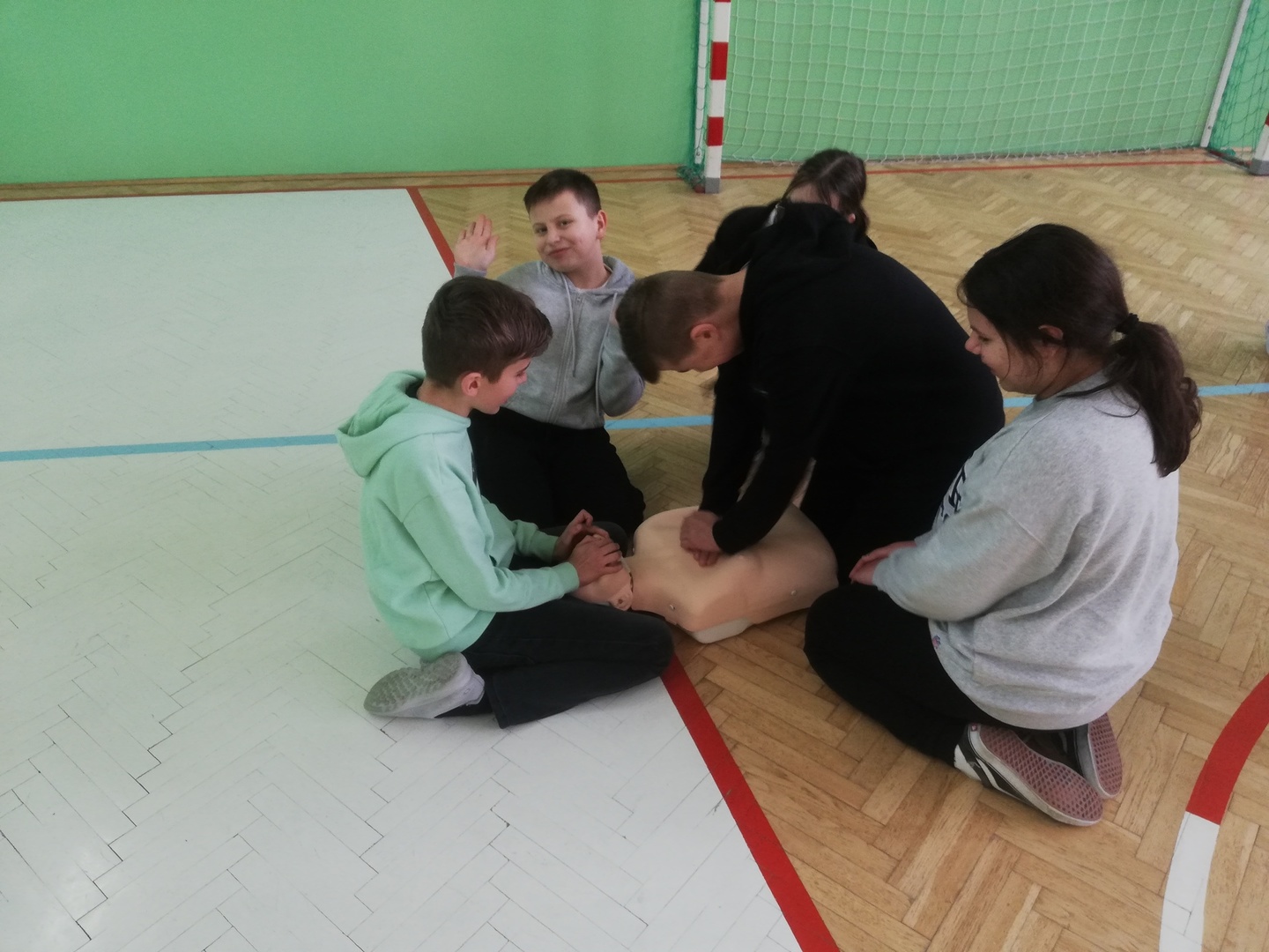 W dniu 30 listopada w ramach zajęć z wychowania fizycznego oraz EDB wszyscy uczniowie klas IV-VIII odbyli szkolenie ratownicze z zakresu udzielania pierwszej pomocy przedmedycznej, czyli do momentu przyjazdu ratowników medycznych.