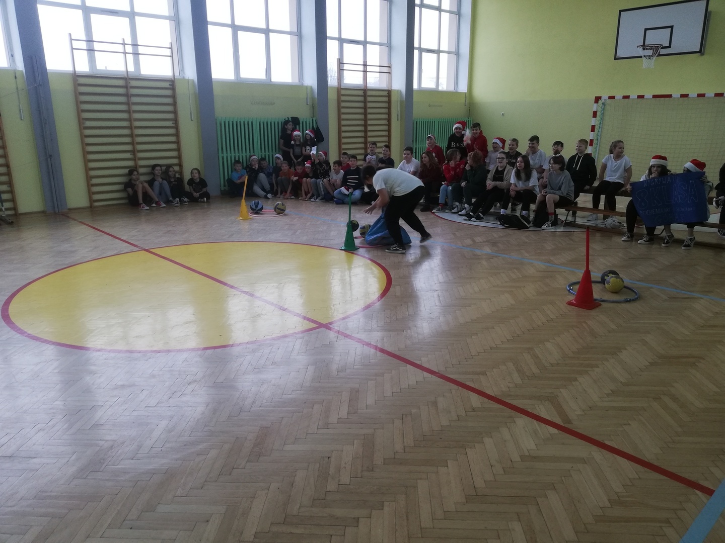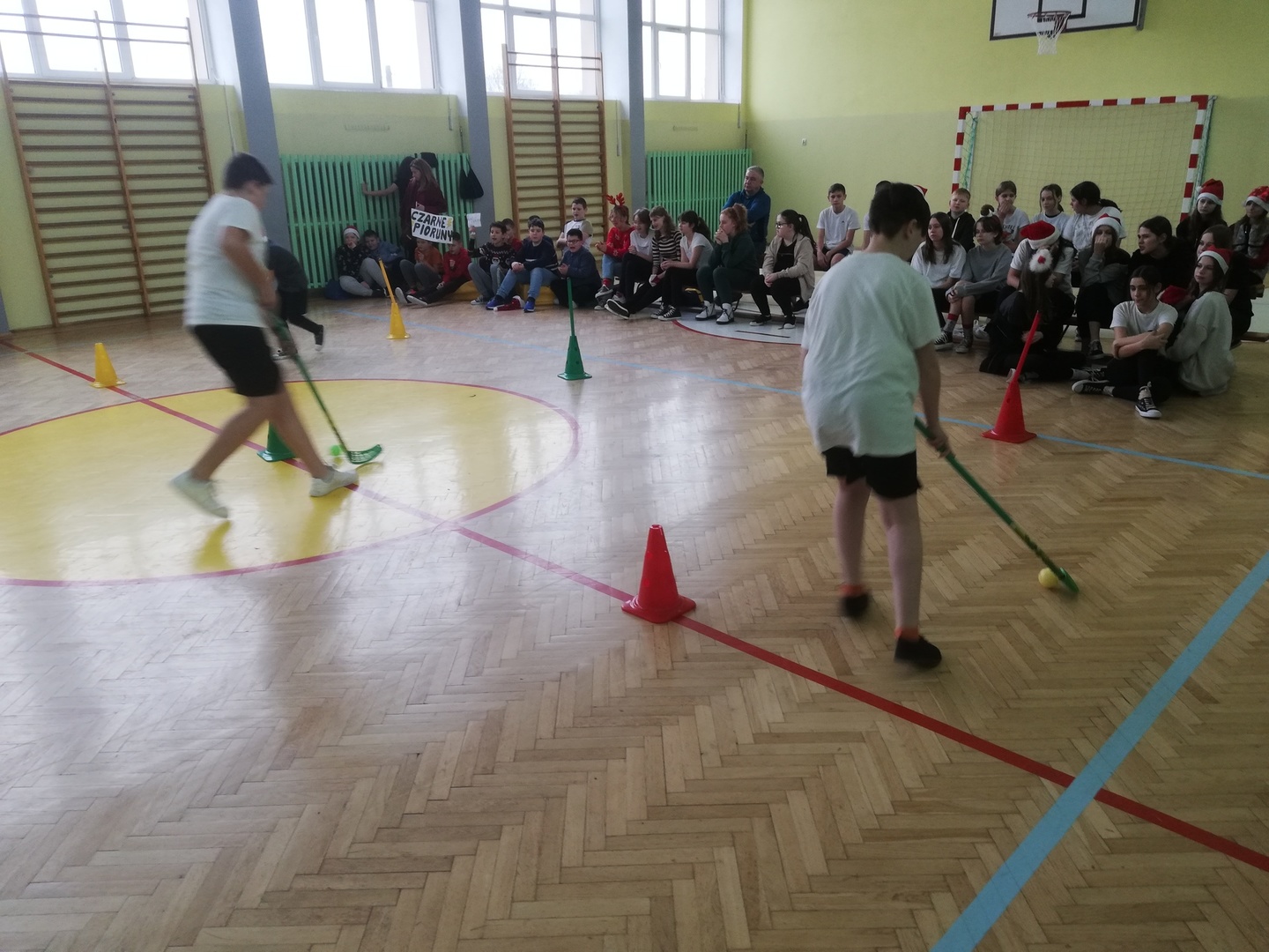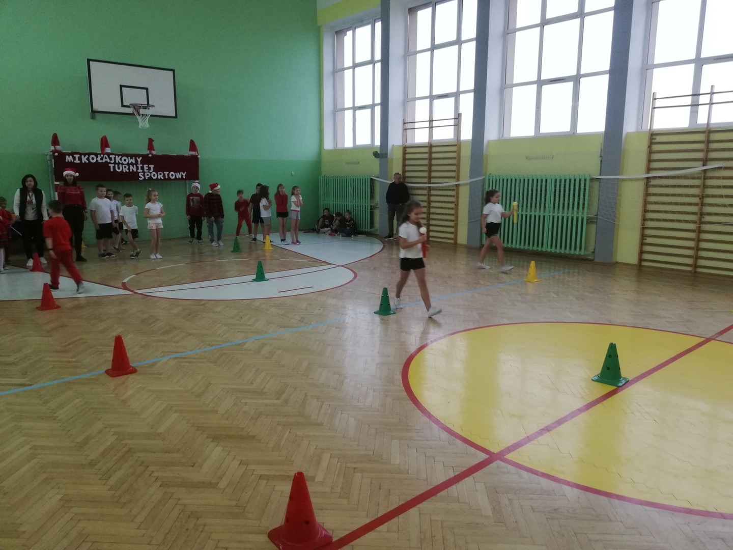 Konkurencje były rozgrywane oddzielnie na poziomie klas młodszych I - III oraz starszych IV - VIII .Uczniowie rywalizowali między sobą w różnych konkurencjach: bieg z bombką, sanie Mikołaja, tor przeszkód, ubieranie choinki, nakładanie czapek Mikołaja na pachołki, itp.