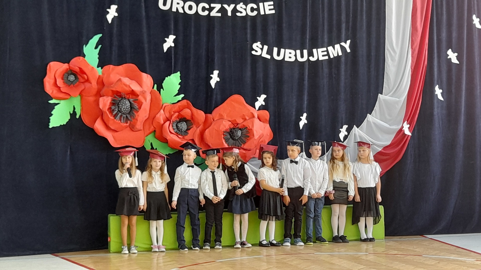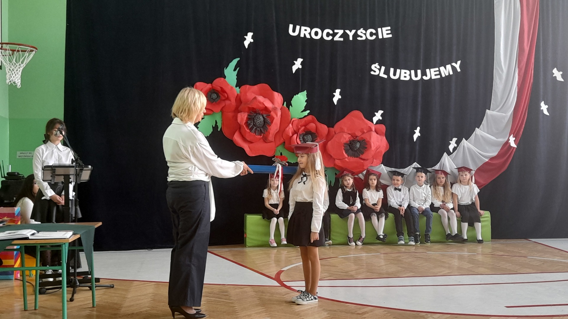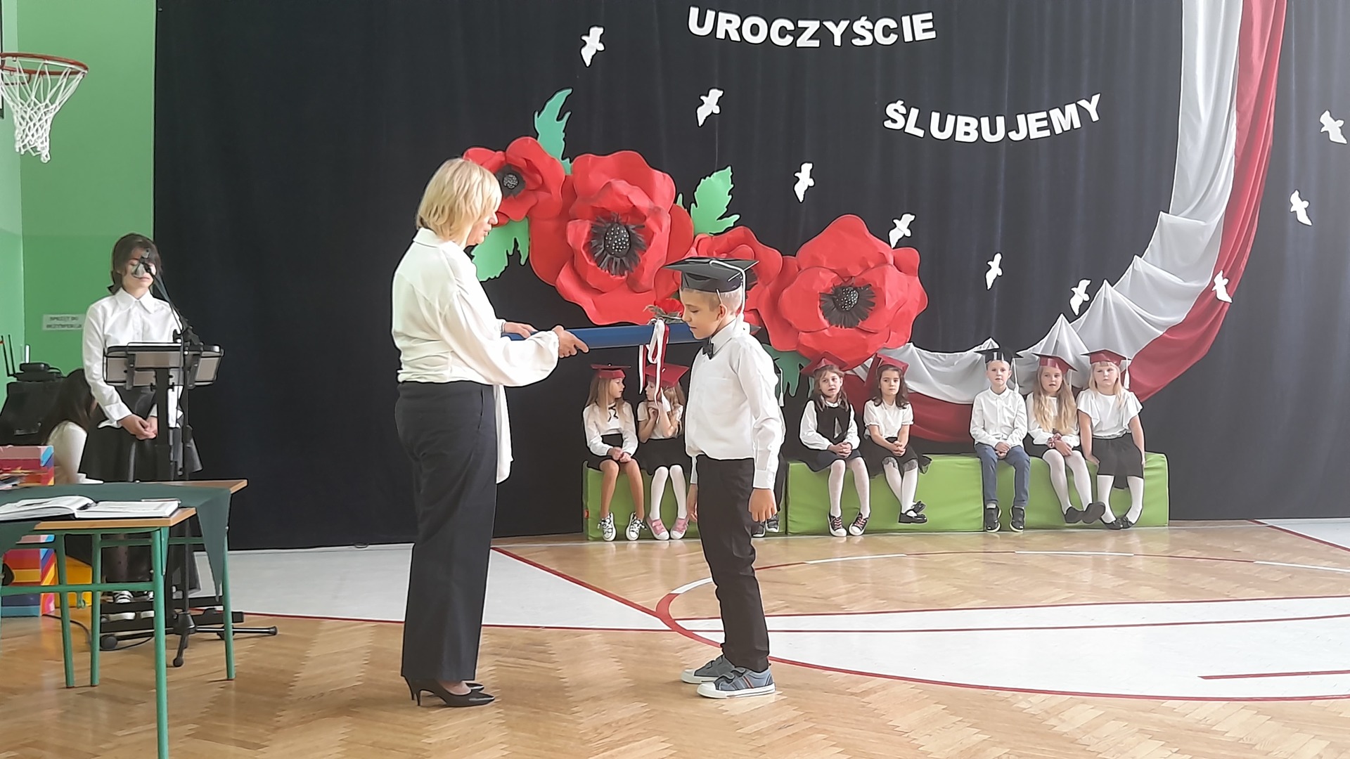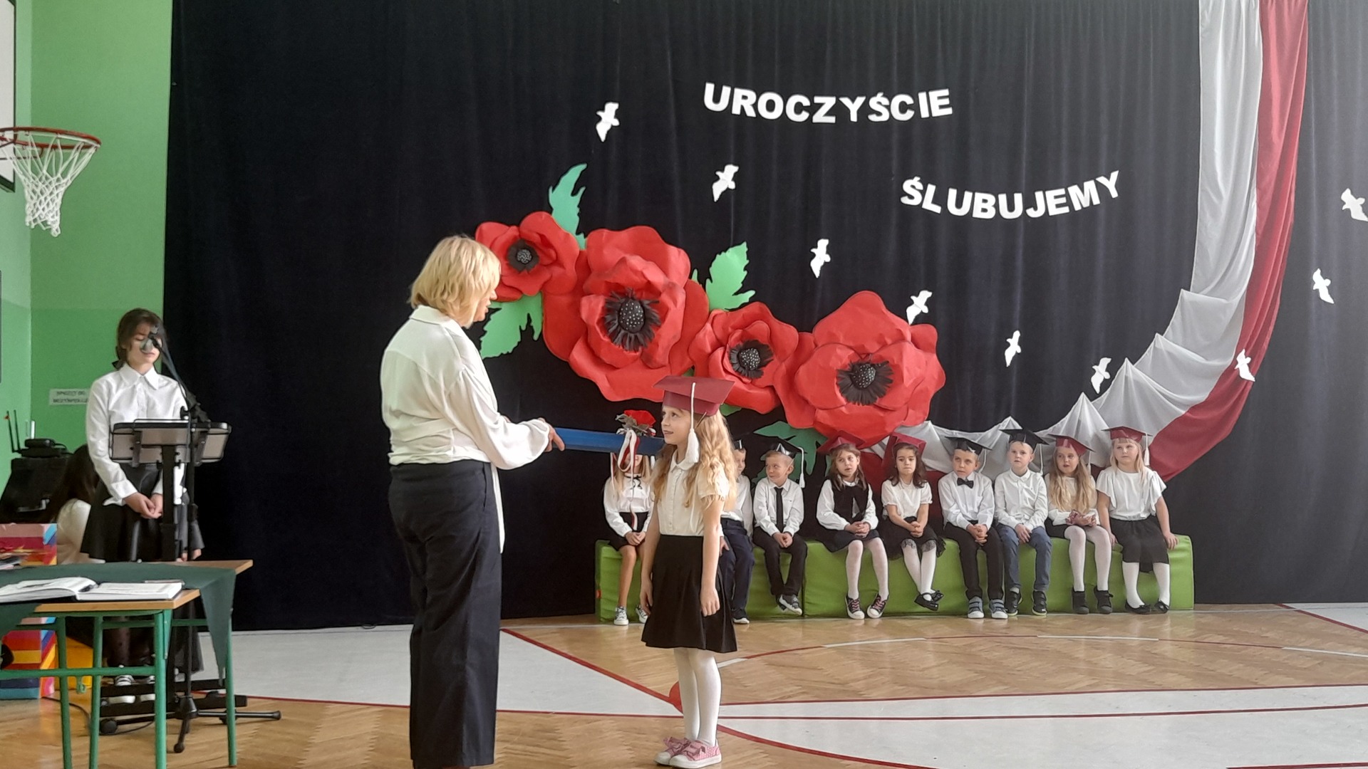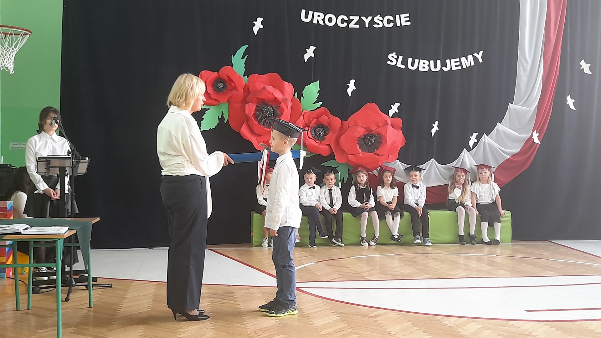 Zanim pierwszoklasiści zostali przyjęci do grona społeczności szkolnej musieli przedstawić to, czego już się w szkole nauczyli. Gotowi, odświętnie ubrani i bardzo przejęci przystąpili do zaprezentowania swoich umiejętności. Zadaniem uczniów było m. in. zaśpiewanie piosenek, recytacja wierszy oraz udzielenie odpowiedzi na szereg bardzo ważnych pytań. Po zakończonej prezentacji wszyscy zgodnie potwierdzili, że dzieci wspaniale zdały „egzamin pierwszoklasisty”.