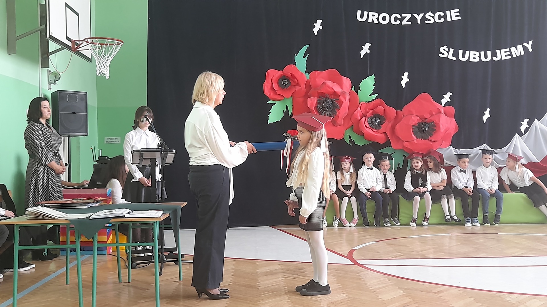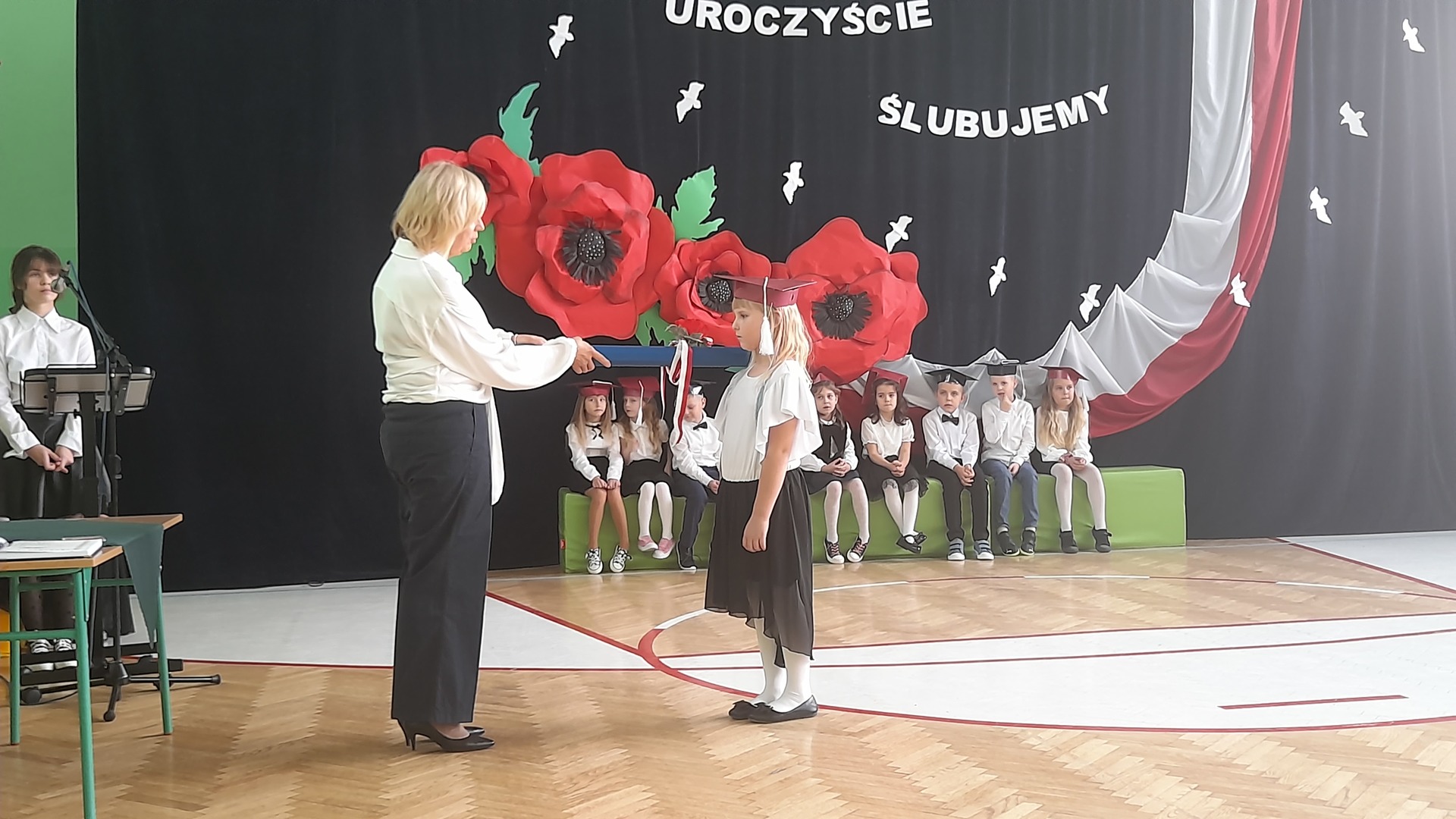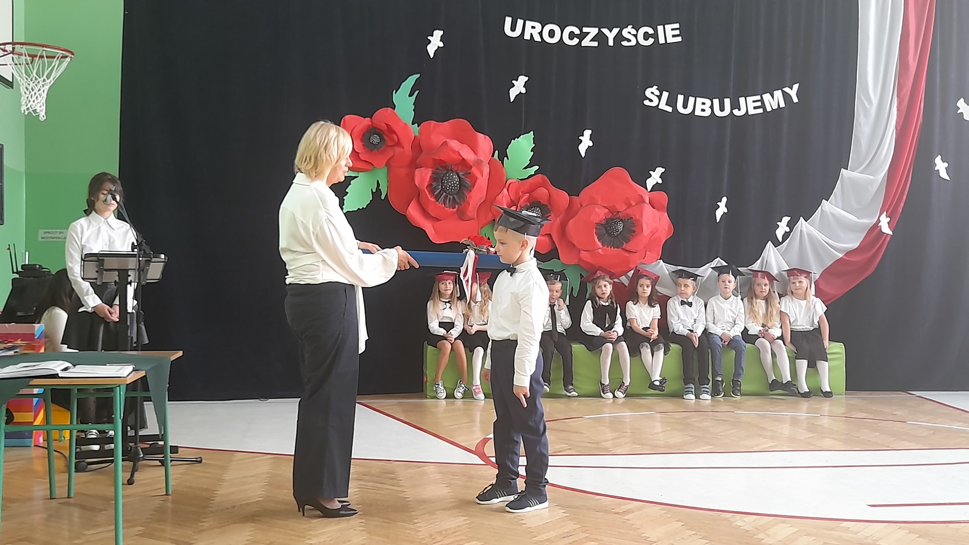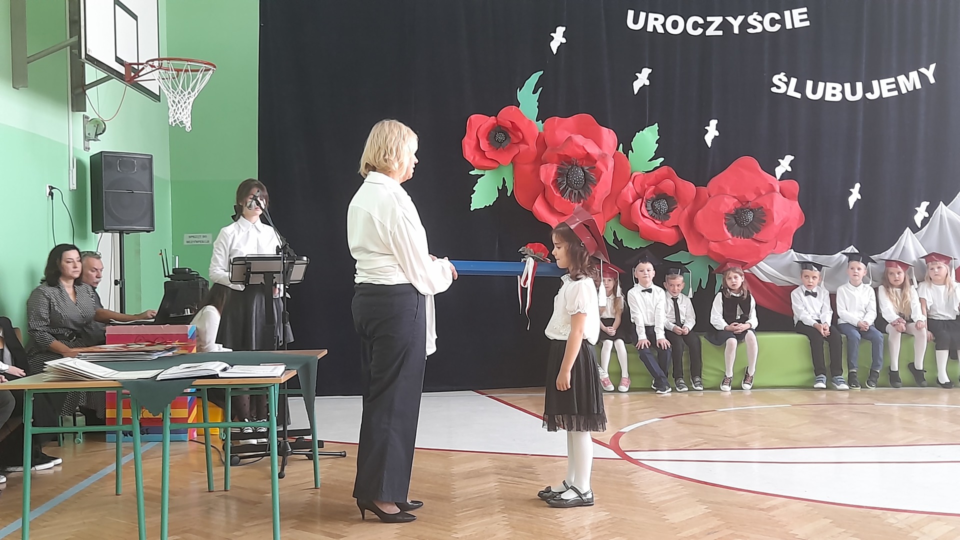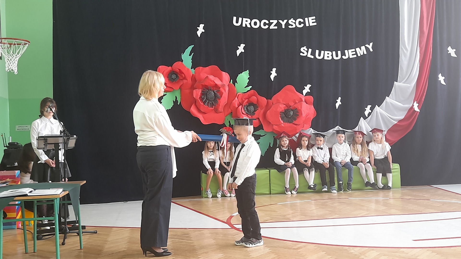 Zanim pierwszoklasiści zostali przyjęci do grona społeczności szkolnej musieli przedstawić to, czego już się w szkole nauczyli. Gotowi, odświętnie ubrani i bardzo przejęci przystąpili do zaprezentowania swoich umiejętności. Zadaniem uczniów było m. in. zaśpiewanie piosenek, recytacja wierszy oraz udzielenie odpowiedzi na szereg bardzo ważnych pytań. Po zakończonej prezentacji wszyscy zgodnie potwierdzili, że dzieci wspaniale zdały „egzamin pierwszoklasisty”.