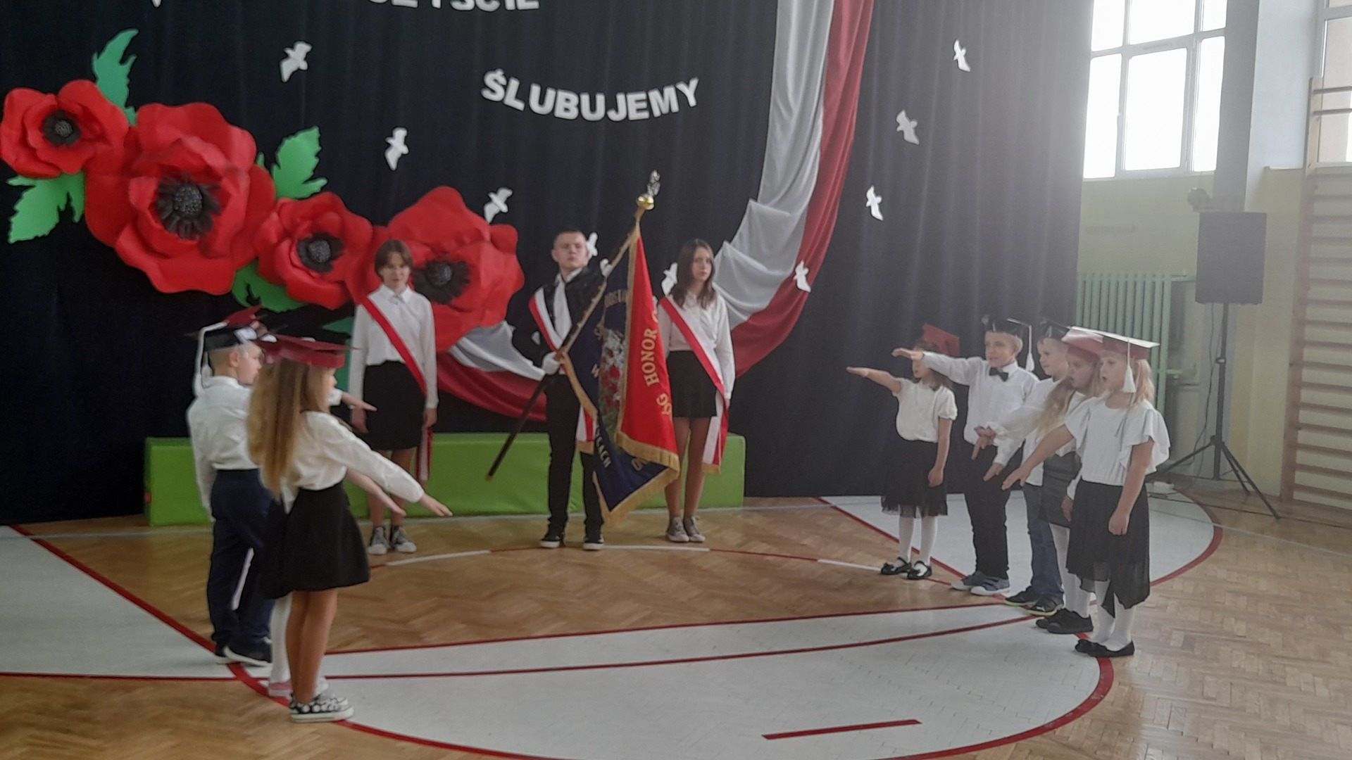 Doniosłym momentem uroczystości było ślubowanie pierwszoklasistów na Sztandar szkoły, które wzbudziło wiele emocji. Aktu pasowania dokonała Pani Dyrektor Olga Muszyńska kolorowym ołówkiem. Tym samym pierwszaki zostały włączone do społeczności uczniowskiej Szkoły Podstawowej im. Bohaterów Monte Cassino w Rembieszycach. Dowodem na to były otrzymane dyplomy pasowania na ucznia wręczone dzieciom przez dyrekcję i wychowawcę klasy, wykonane odciski palców uczniów podpisane przez rodziców w kronice szkolnej, a także posadzone pamiątkowe drzewko na dziedzińcu szkoły.