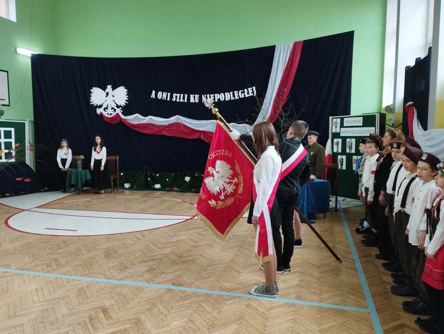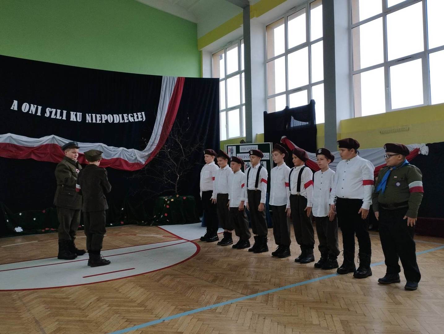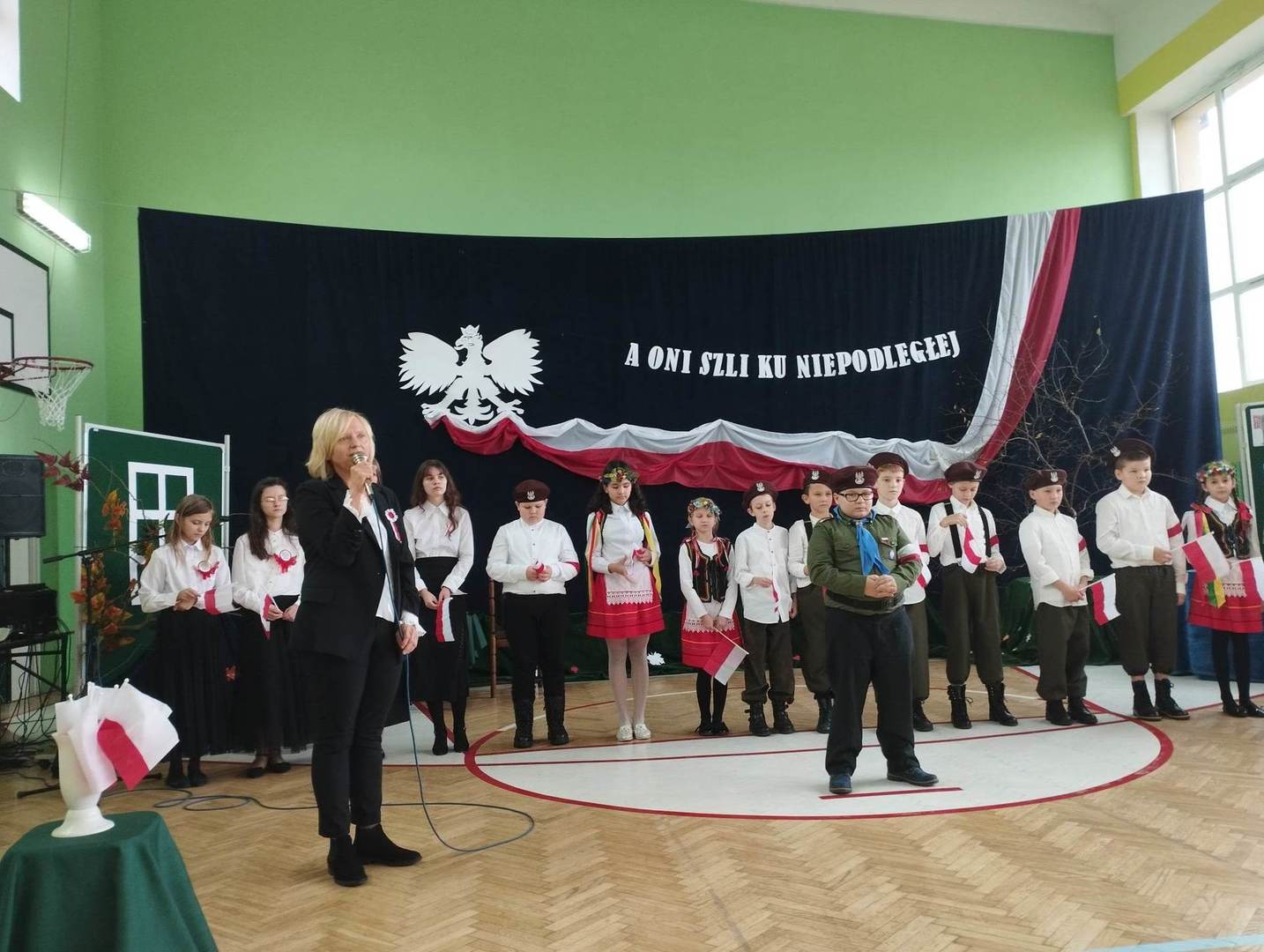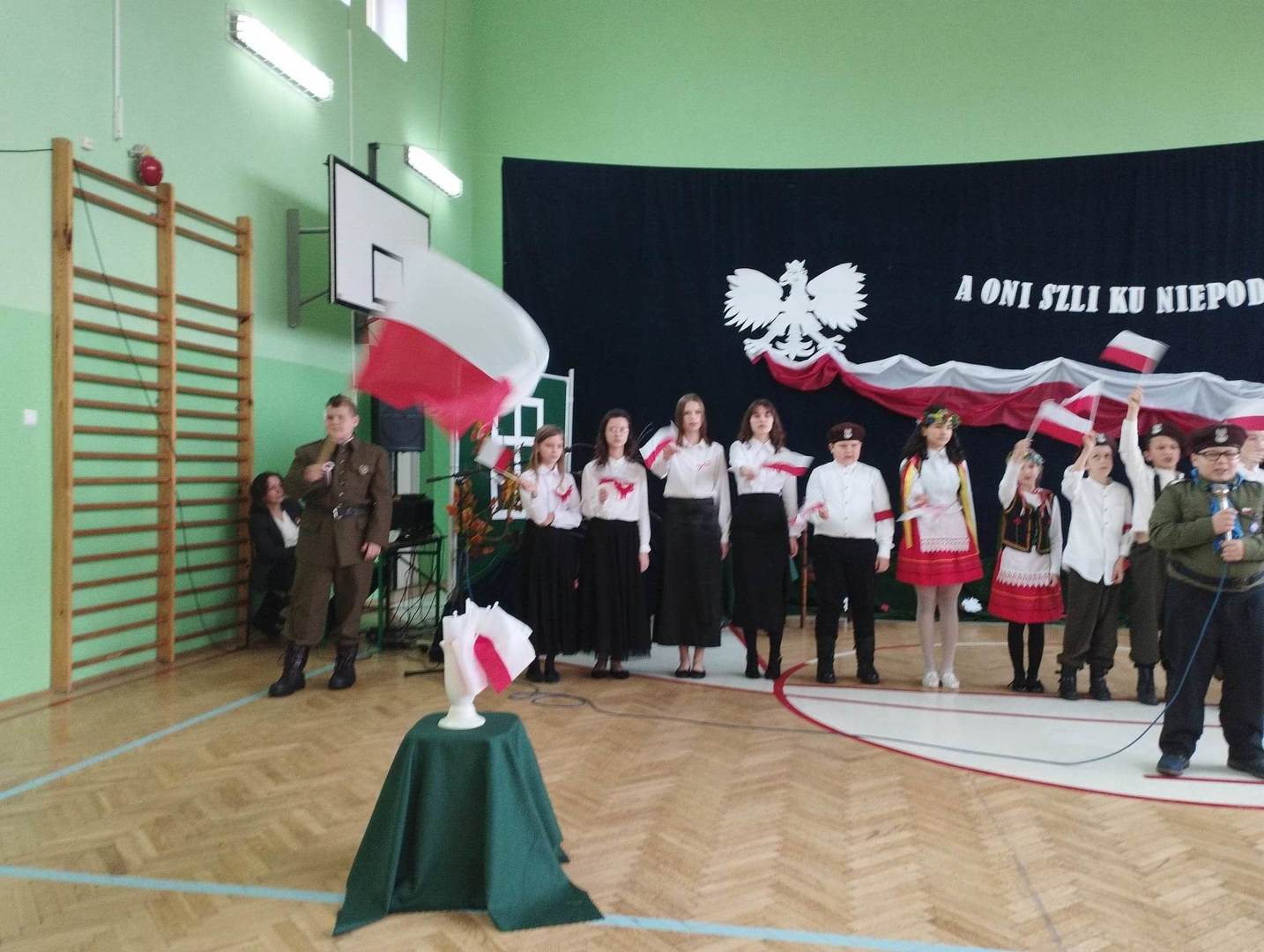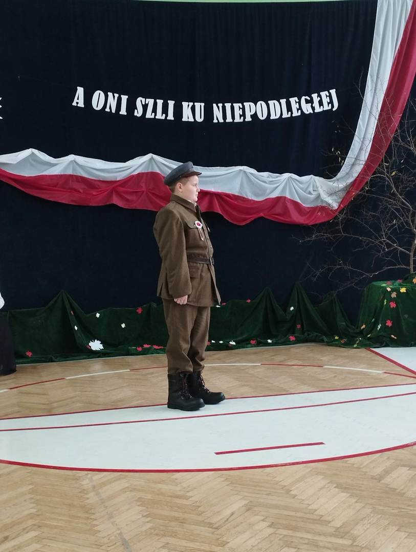 ,,A oni szli ku Niepodległej” pod takim hasłem 14 listopada uroczystą akademią uczciliśmy kolejną rocznicę odzyskania Niepodległości przez Polskę. Droga do niej była długa i trudna, naznaczona wysiłkiem wielu pokoleń Polaków. Polska mogłaby nigdy nie odzyskać niezależności, gdyby nie niezłomność wielu naszych przodków, którzy przelali krew za utraconą Ojczyznę. Pomimo usilnych prób nie zdołano zabić ducha polskości. Ani Niemcom, ani Rosjanom nie udało się zrusyfikować i zgermanizować naszych rodaków. Polacy odzyskując niepodległość po ponad 100 latach „niebytu”– po raz kolejny udowodnili, że są jednym z najbardziej dumnych narodów świata.