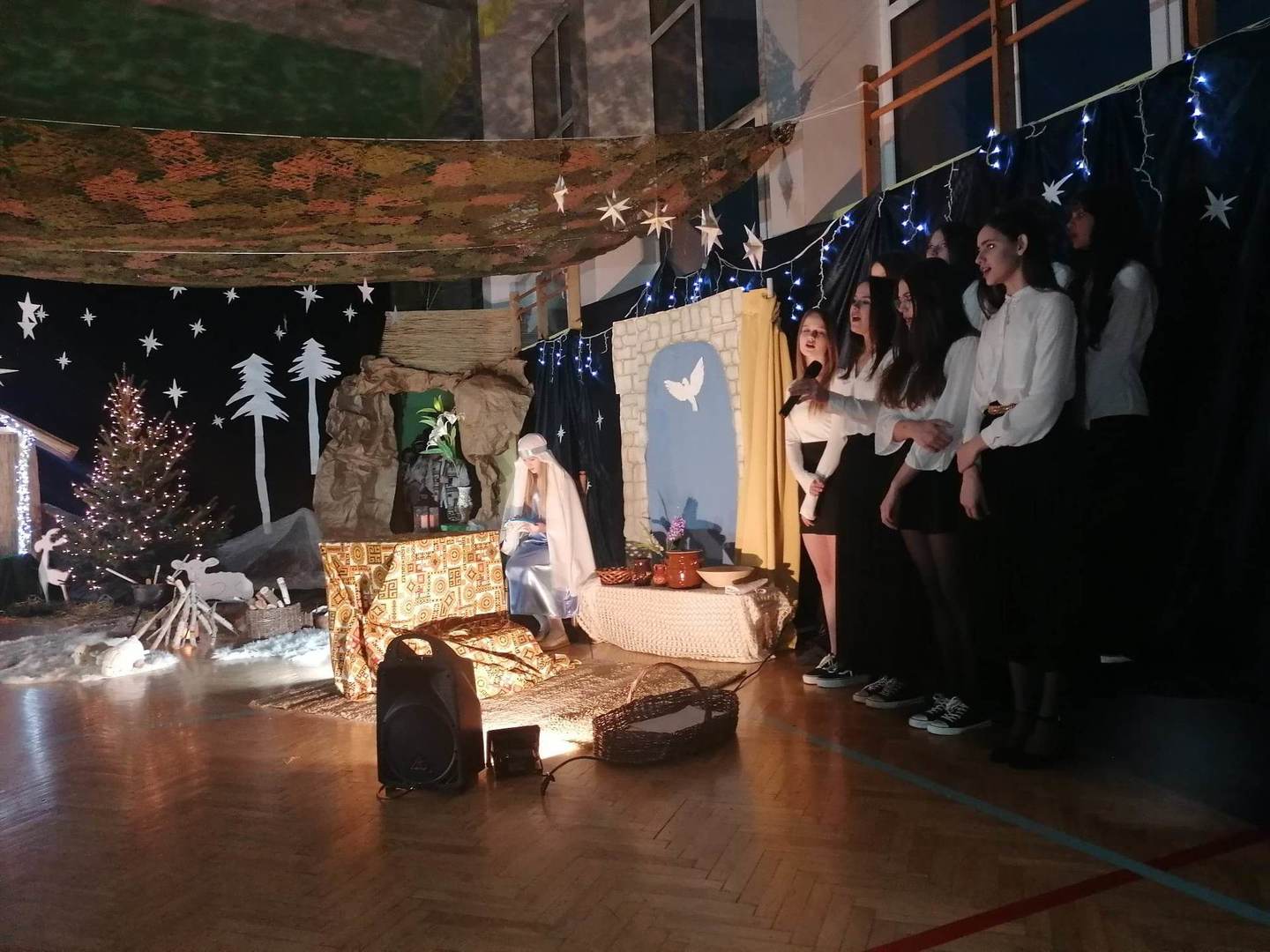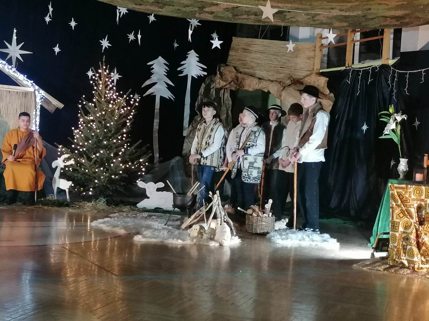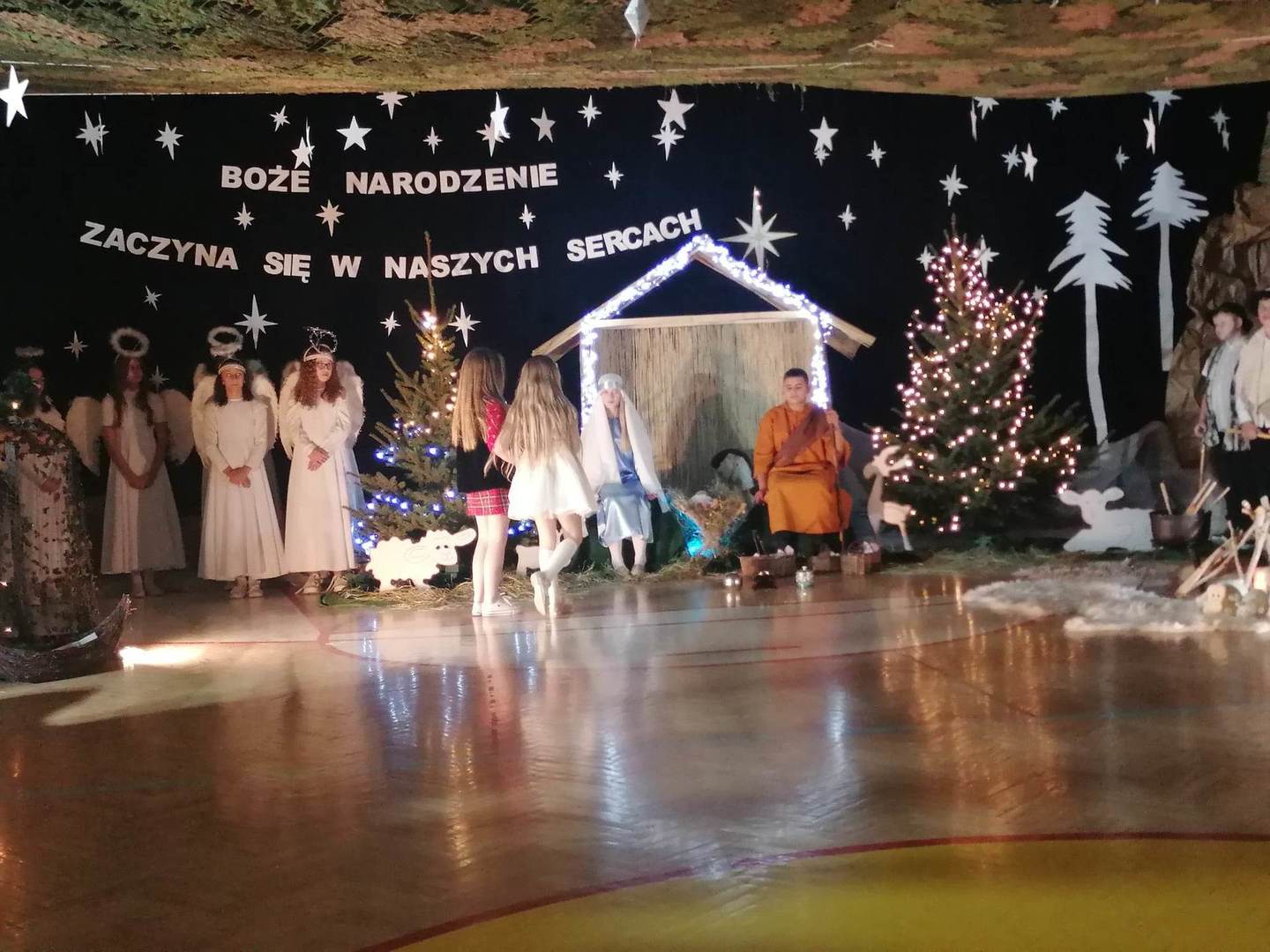 Dnia 20.12.2022 w naszej szkole odbyły się Jasełka Bożonarodzeniowe, które wprowadziły oglądających w świąteczny nastrój. Uczniowie kl.VI, III oraz VIII dołożyli wszelkich starań, aby odtworzyć wydarzenia, które miały miejsce w niewielkim miasteczku Betlejem ponad 2 tysiące lat temu.