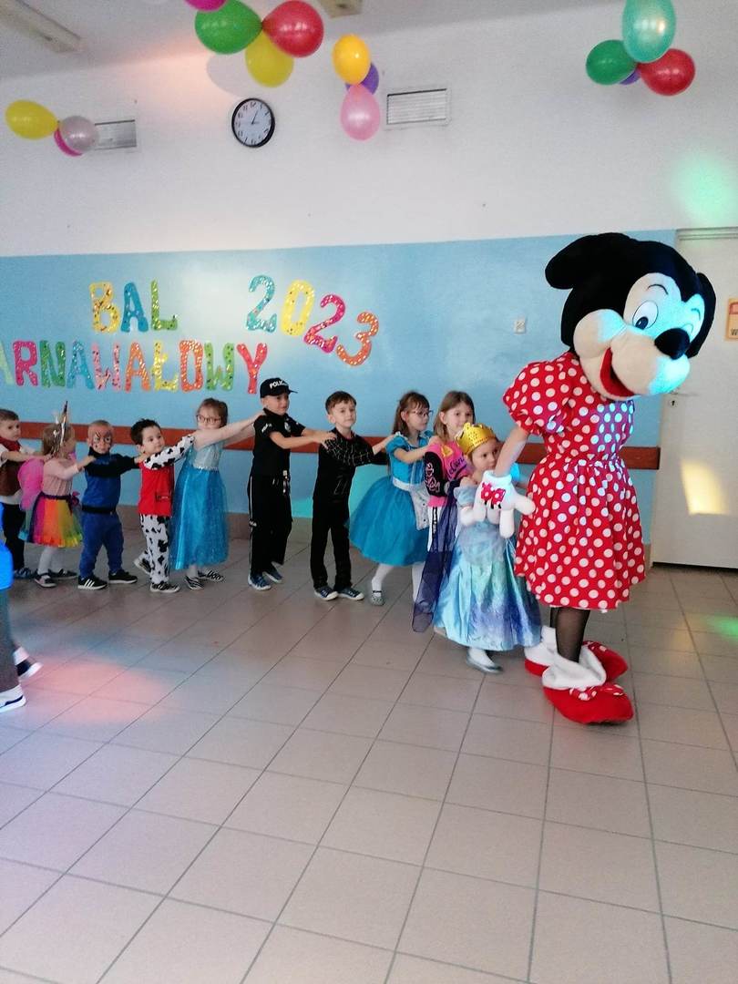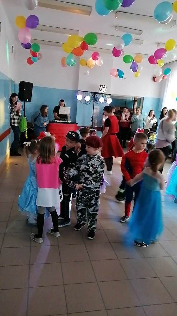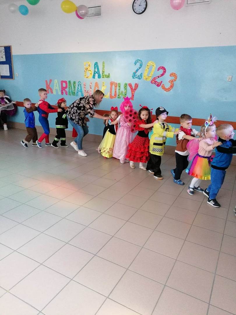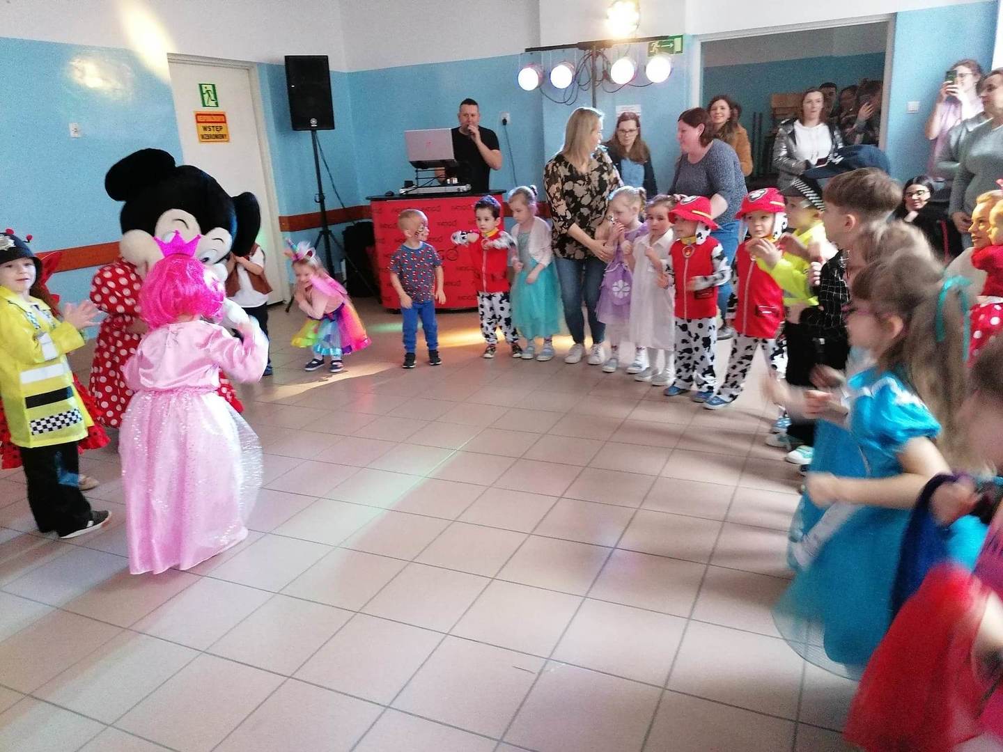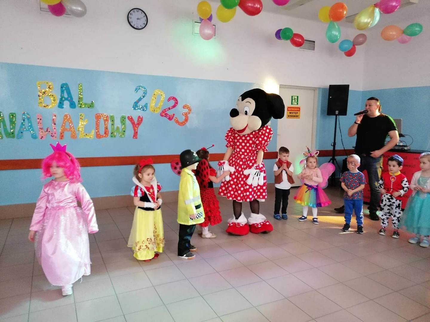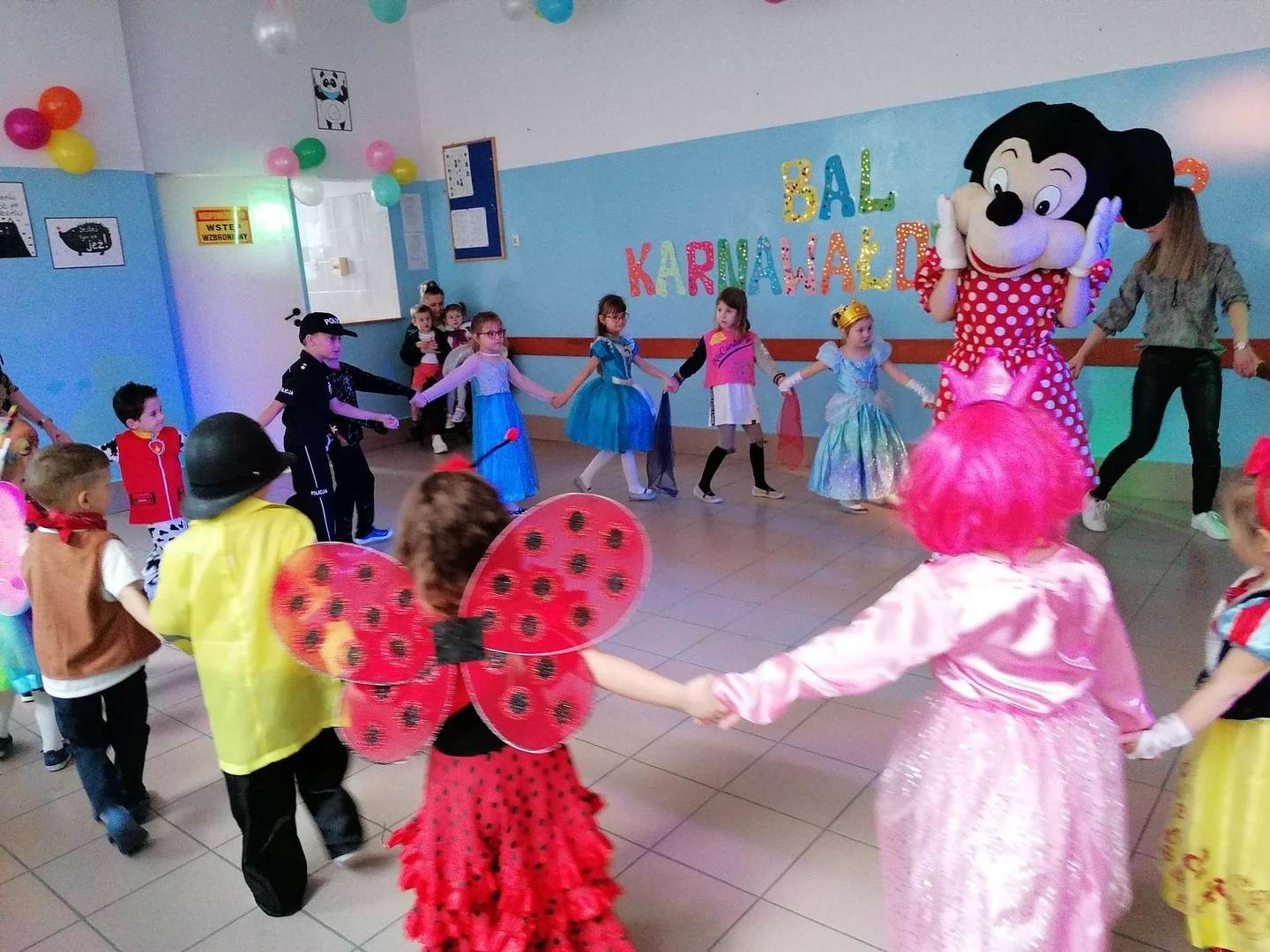 Tegoroczna zabawa karnawałowa w naszym przedszkoluodbyła się 15 lutego a zabawę prowadzili animatorzy z Agencji Artystycznej PATIGO z Kielc. Pojawienie się Myszki Mini wprowadziło dzieci w radosny nastrój, zachęcając do wspaniałej zabawy. Radości przedszkolaków nie było końca, świetnie bawiły się przy rytmach dziecięcych przebojów, chętnie uczestniczyły w konkursach, pląsach, grach sprawnościowych i zabawach muzyczno- ruchowych. Kolorowe pociągi, szalone pląsy przy muzyce wprawiły wszystkich w karnawałowy nastrój. Nikt nie mógł się nudzić i narzekać, a dzieci bawiły się wyśmienicie. Przedszkolaki przebrane były za bohaterów znanych bajek, można było spotkać: wróżki, biedronki, księżniczki, motylki, pszczółki, kotki, policjantów, Spider-Mana, Batmana... nie sposób zliczyć i wymienić tych wszystkich postaci