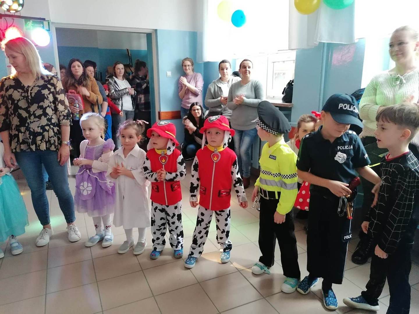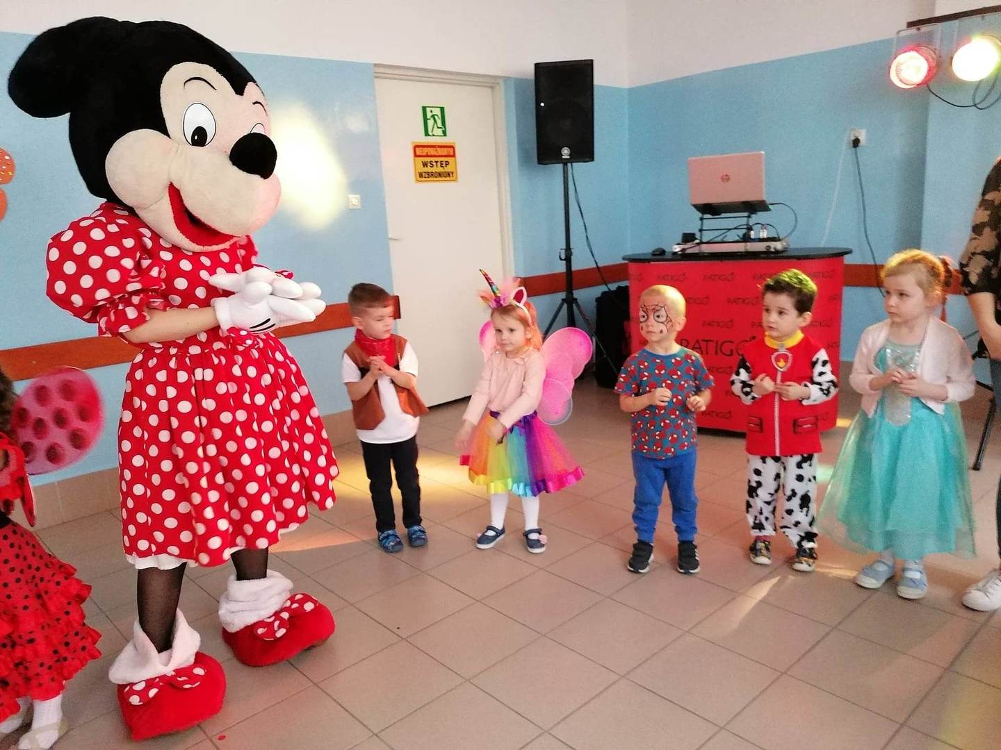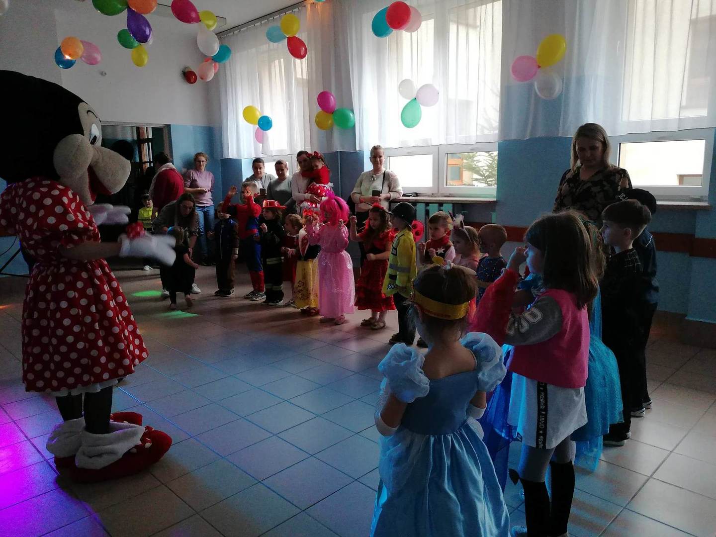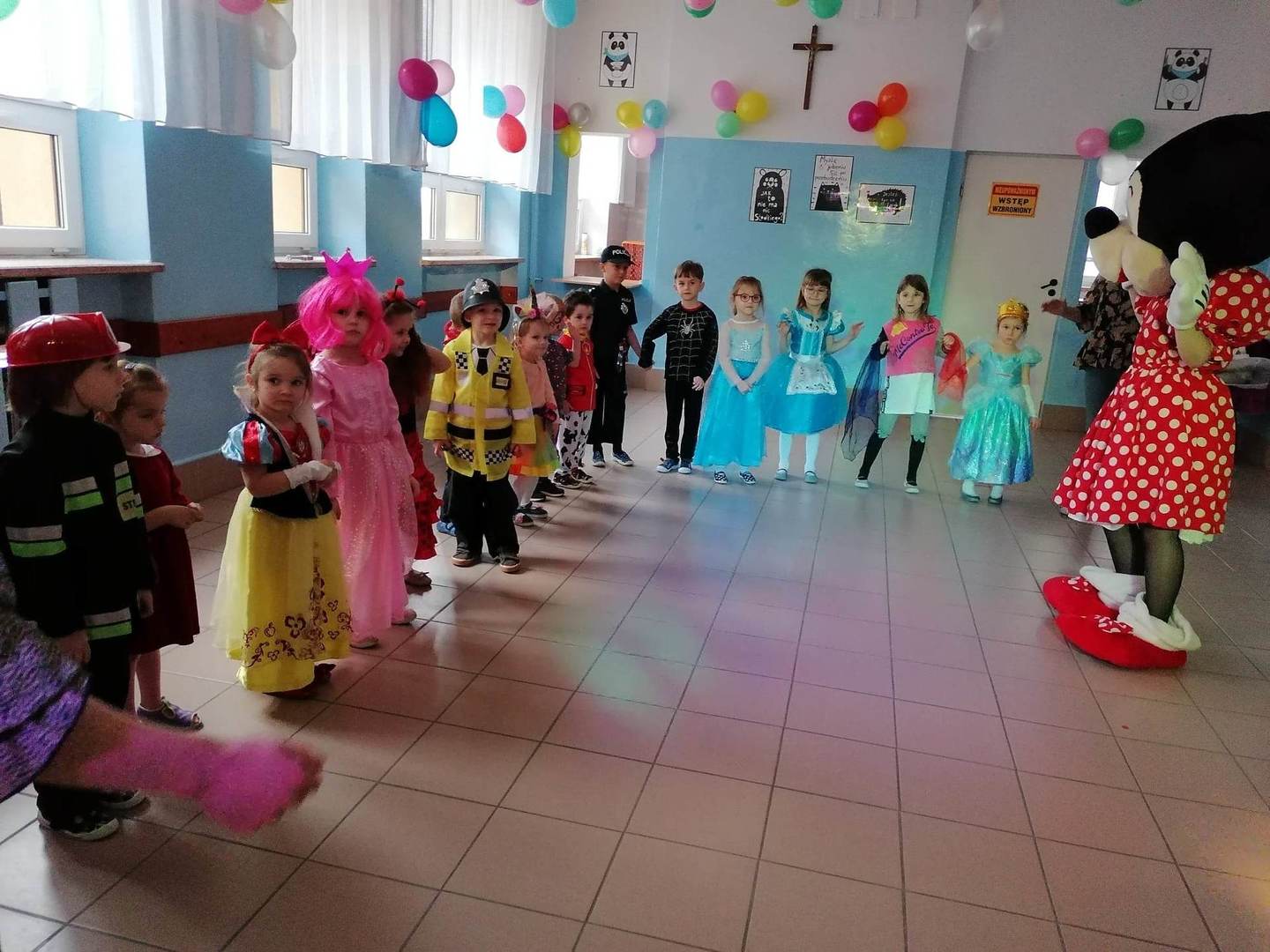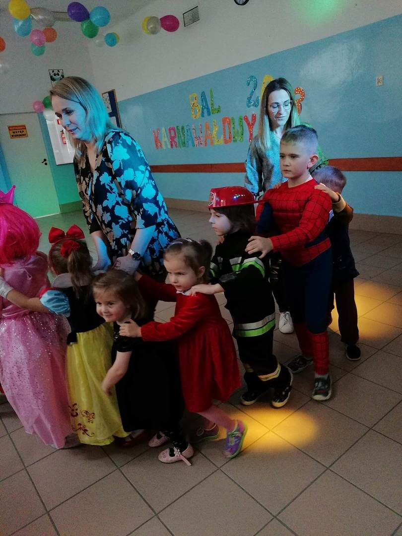 Tegoroczna zabawa karnawałowa w naszym przedszkoluodbyła się 15 lutego a zabawę prowadzili animatorzy z Agencji Artystycznej PATIGO z Kielc. Pojawienie się Myszki Mini wprowadziło dzieci w radosny nastrój, zachęcając do wspaniałej zabawy. Radości przedszkolaków nie było końca, świetnie bawiły się przy rytmach dziecięcych przebojów, chętnie uczestniczyły w konkursach, pląsach, grach sprawnościowych i zabawach muzyczno- ruchowych. Kolorowe pociągi, szalone pląsy przy muzyce wprawiły wszystkich w karnawałowy nastrój. Nikt nie mógł się nudzić i narzekać, a dzieci bawiły się wyśmienicie. Przedszkolaki przebrane były za bohaterów znanych bajek, można było spotkać: wróżki, biedronki, księżniczki, motylki, pszczółki, kotki, policjantów, Spider-Mana, Batmana... nie sposób zliczyć i wymienić tych wszystkich postaci