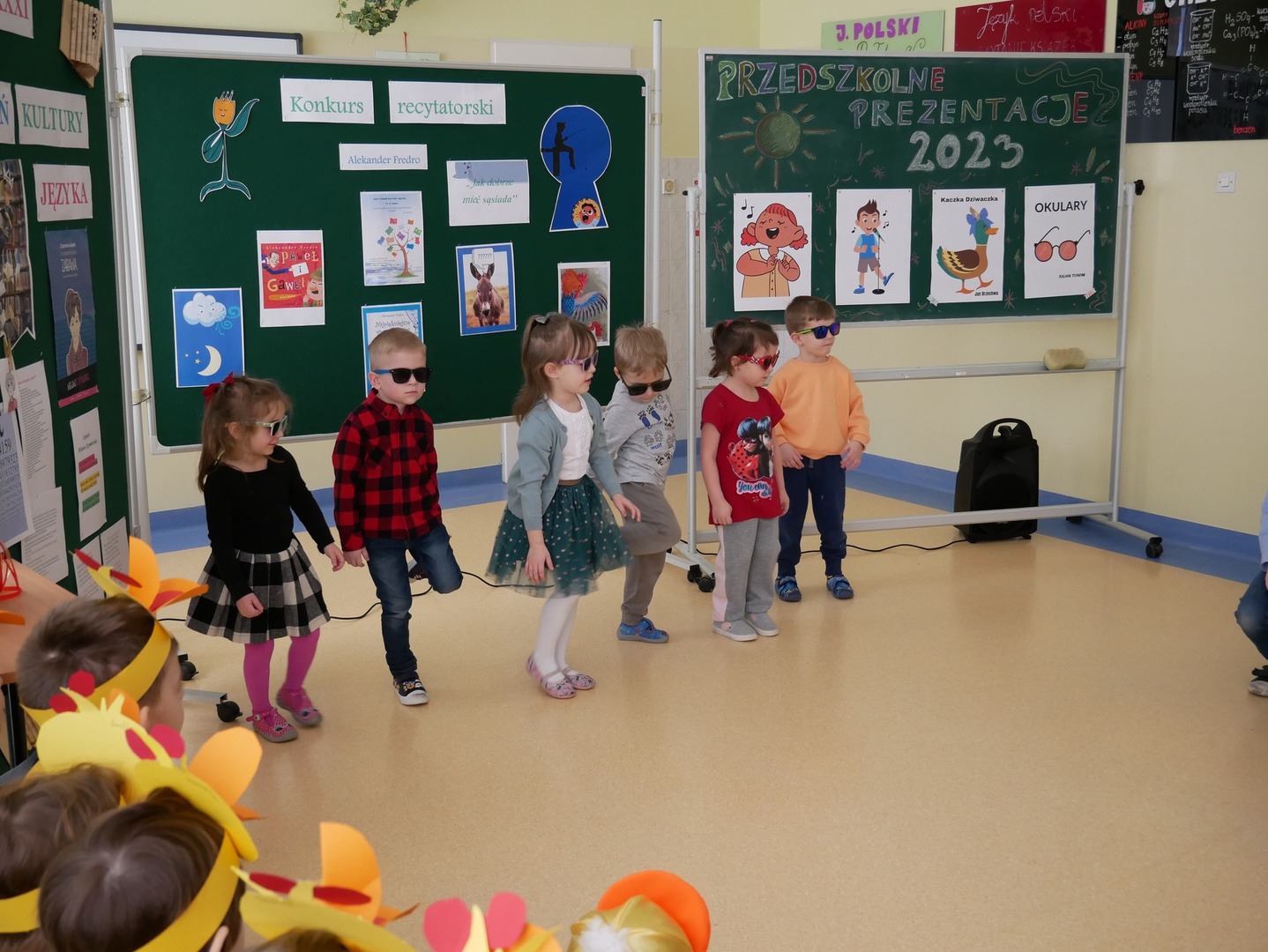Grupa młodsza przygotowała w nowej odsłonie wiersz ,,Okulary” Juliana Tuwima, starsza zaś zachwyciła publiczność ,,Kaczką Dziwaczką” Jana Brzechwy.