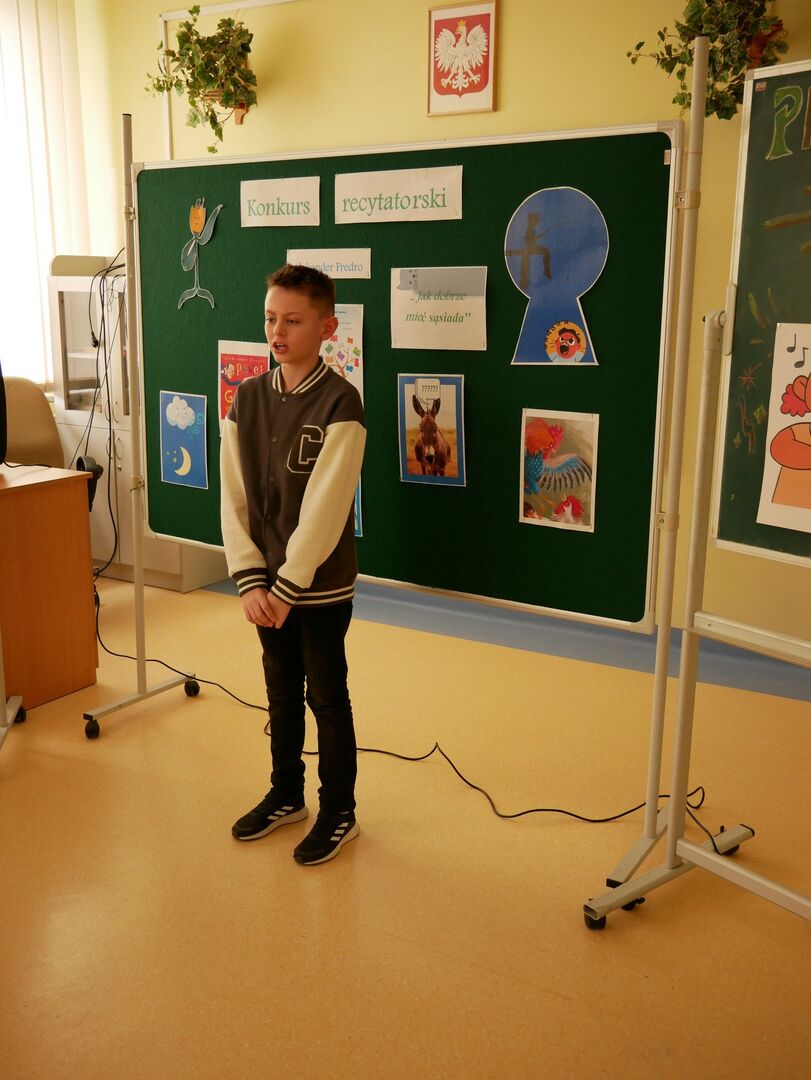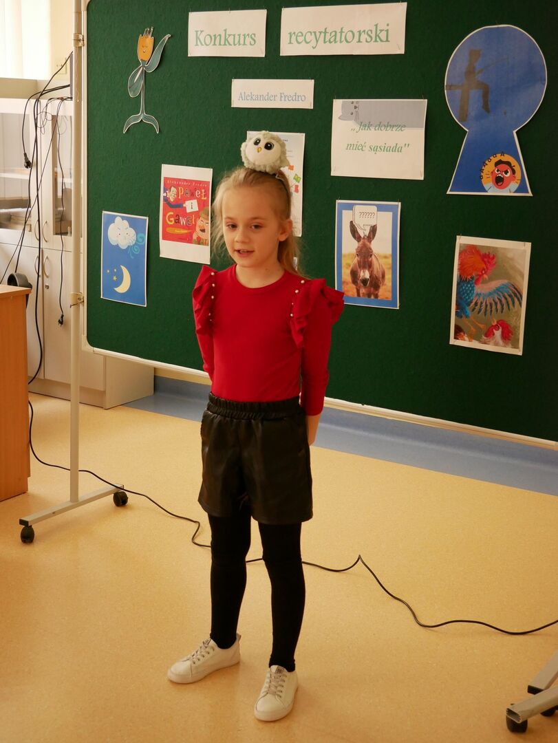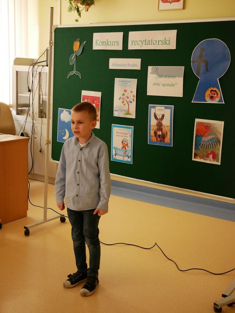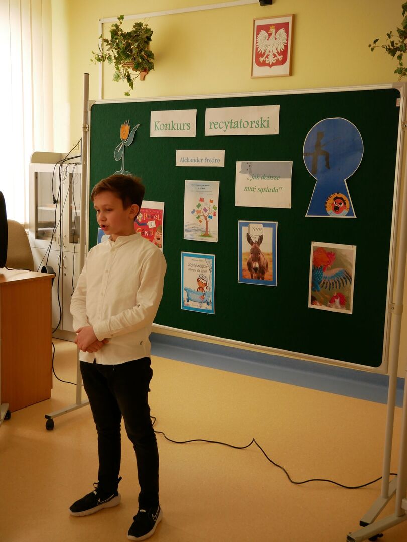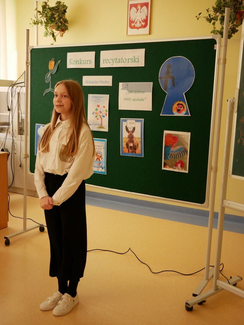 Szkolny konkurs recytatorski Wiersze Aleksandra Fredry - Jak dobrze mieć sąsiada! w ramach projektu XXXI Tydzień Kultury Języka w Naszej szkole odbył się 17 marca 2023 roku.