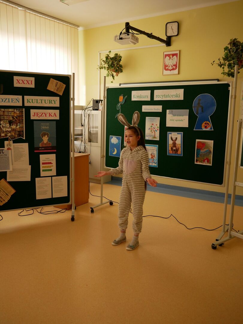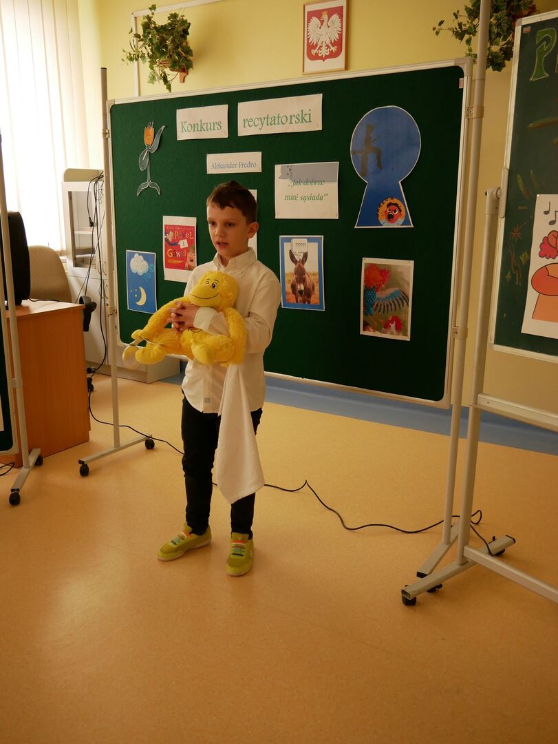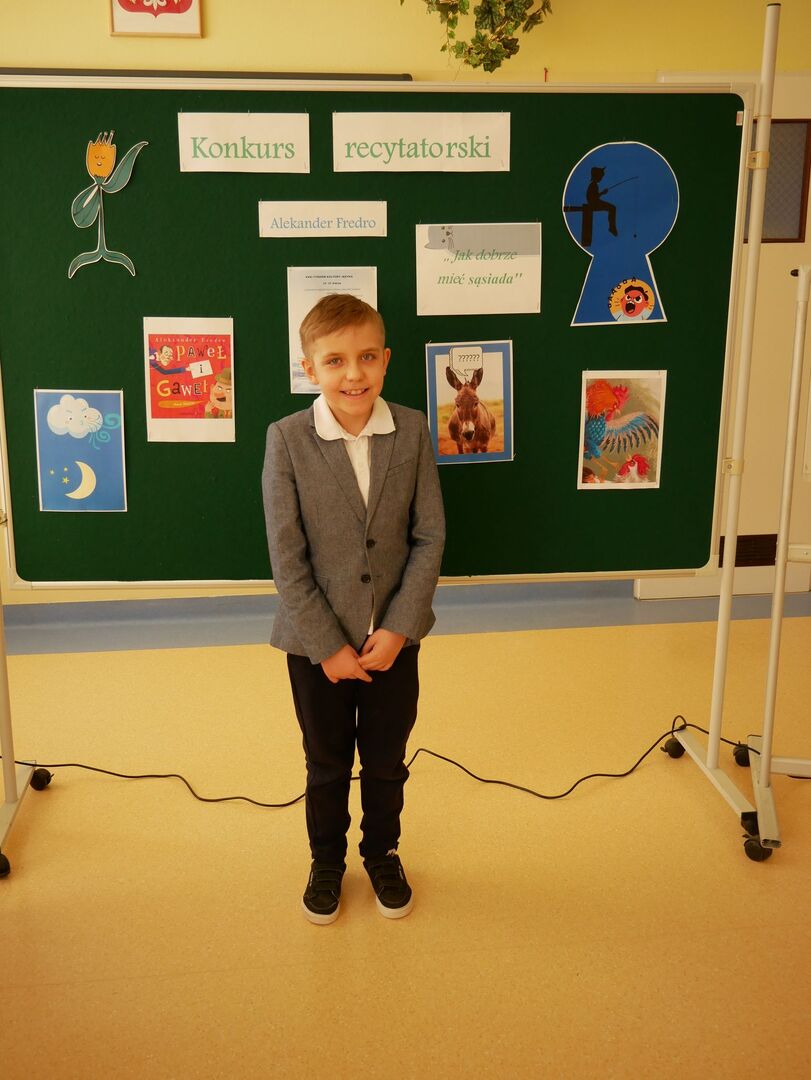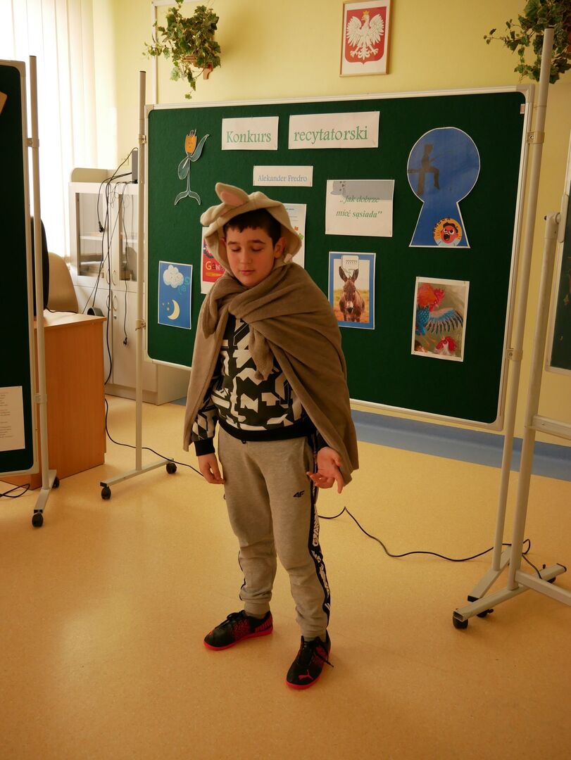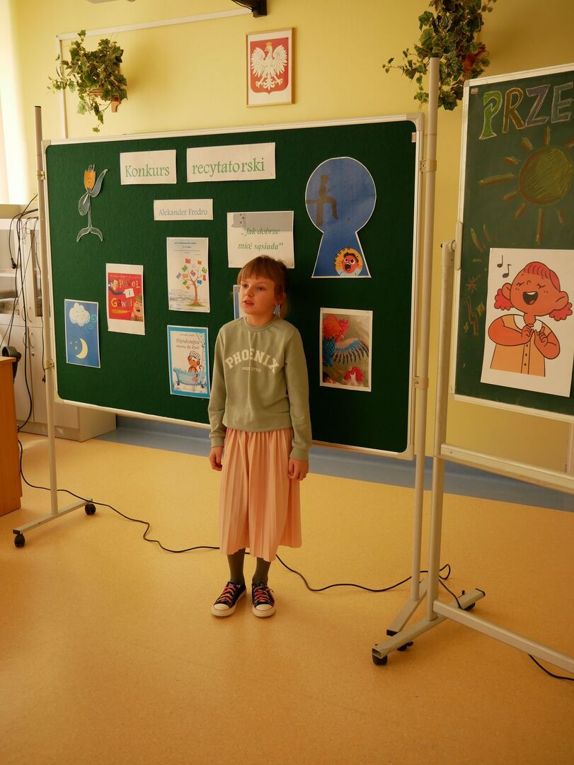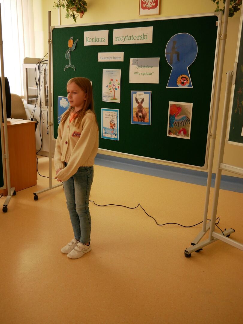 Szkolny konkurs recytatorski Wiersze Aleksandra Fredry - Jak dobrze mieć sąsiada! w ramach projektu XXXI Tydzień Kultury Języka w Naszej szkole odbył się 17 marca 2023 roku.