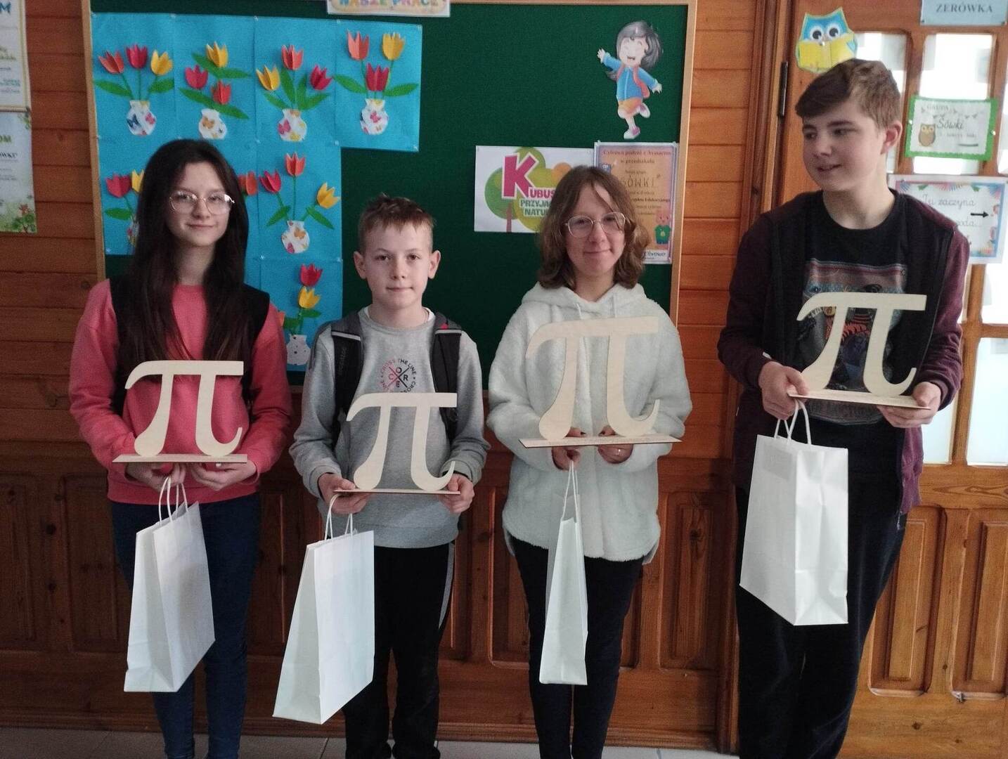 Była również okazja wykazać się znajomością rozwinięcia dziesiętnego liczby ∏. Mistrzynią konkursu została Maja Muryjas z klasy VIII , która wykazała się znajomością prawie 100 cyfr po przecinku z rozwinięcia dziesiętnego tej szacownej liczny. Wicemistrzami zostali Kamil Stępień z klasy V, Filip Świercz z klasy VI oraz Zuzia Sołtysik z klasy V. Wszystkim serdecznie gratulujemy.