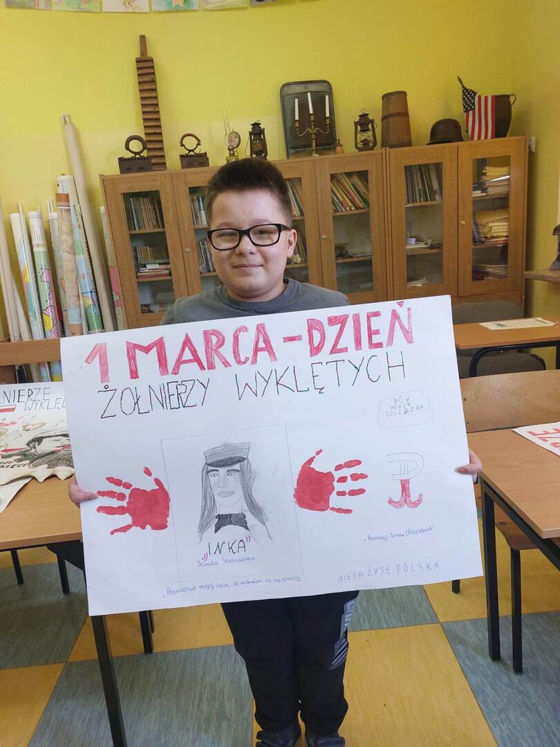 W ramach obchodów Narodowego Dnia Pamięci „Żołnierzy Wyklętych”, który jest obchodzony 1 marca, w szkole przygotowano okolicznościową wystawę oraz gazetkę ścienną. Na lekcjach historii przeprowadzono zajęcia o Żołnierzach Wyklętych z wykorzystaniem materiałów edukacyjnych Instytutu Pamięci Narodowej, a w klasach VI – VIII uczniowie obejrzeli filmy : „ Żołnierze wyklęci”, ,,Rotmistrz Witold Pilecki''. Chętni uczniowie przygotowali prace na wojewódzki konkurs historyczny zorganizowany przez Delegaturę IPN Kielce pt. ,,O Polskę biało- czerwoną... Żołnierze Wyklęci w fotografii, filmie i na plakacie".