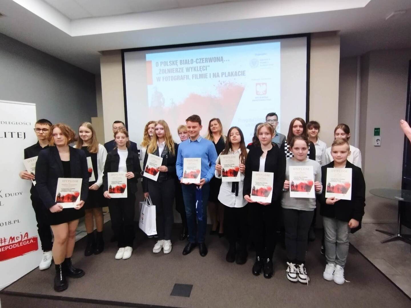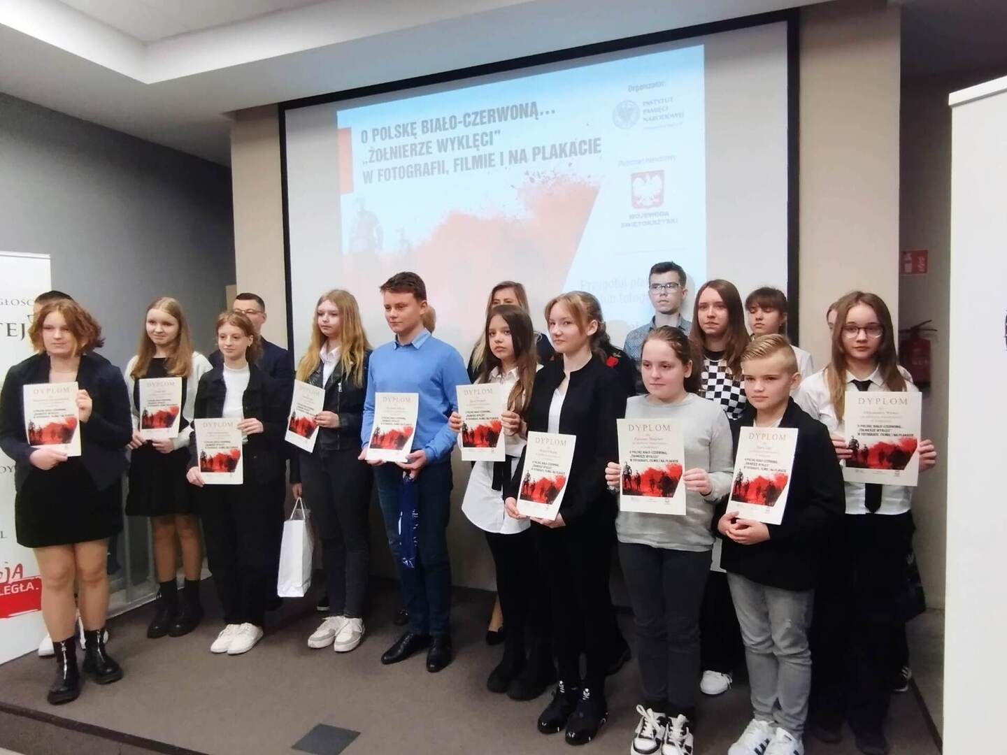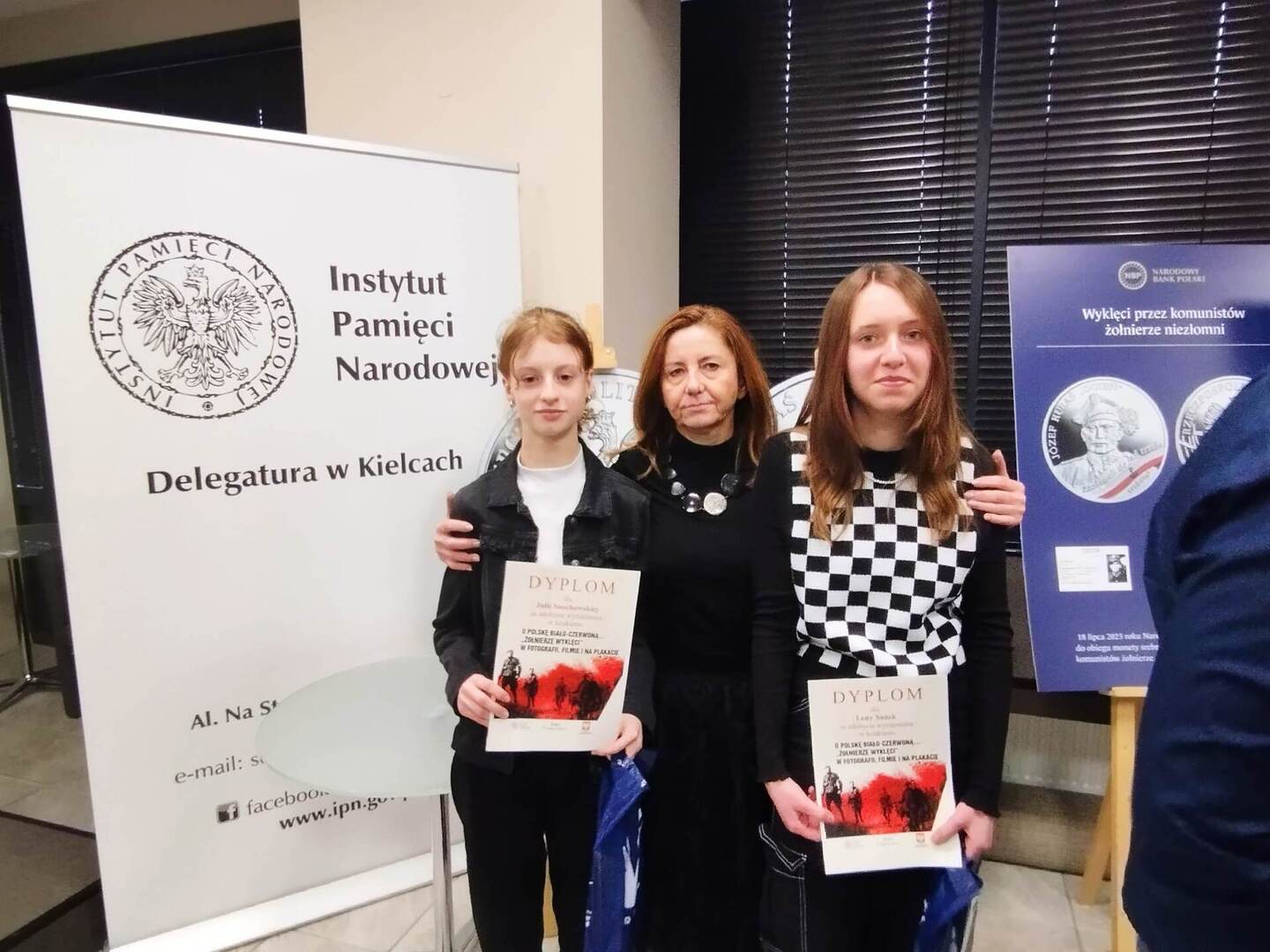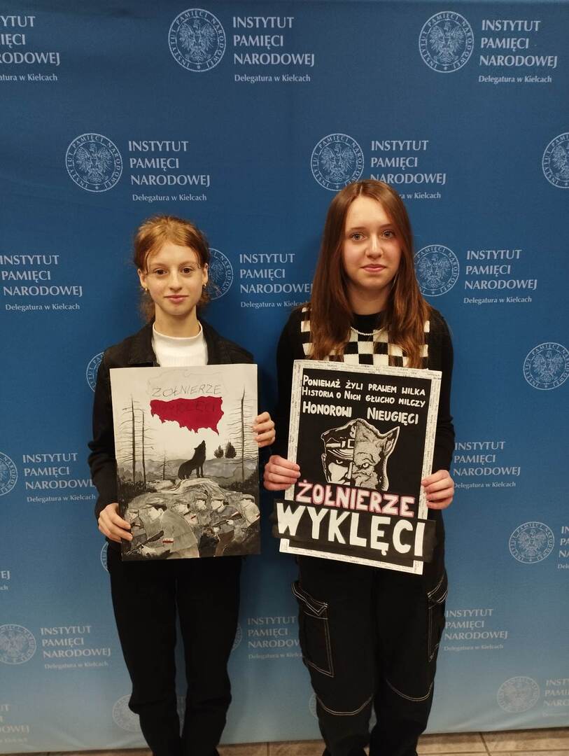 Julia Snochowska i Lena Sanek zdobyły wyróżnienie w Wojewódzkim Konkursie Historycznym ,,O POLSKĘ BIAŁO- CZERWONĄ. ŻOŁNIERZE WYKLĘCI..." zorganizowanym przez Instytut Pamięci Narodowej w Kielcach i Wojewodę Świętokrzyskiego. Konkurs skierowany był do szerokiego grona odbiorców - dzieci, młodzieży, dorosłych. Zadaniem uczestników było ciekawe ujęcie tematu Żołnierzy Wyklętych. Na konkurs wpłynęło ponad 200 prac.