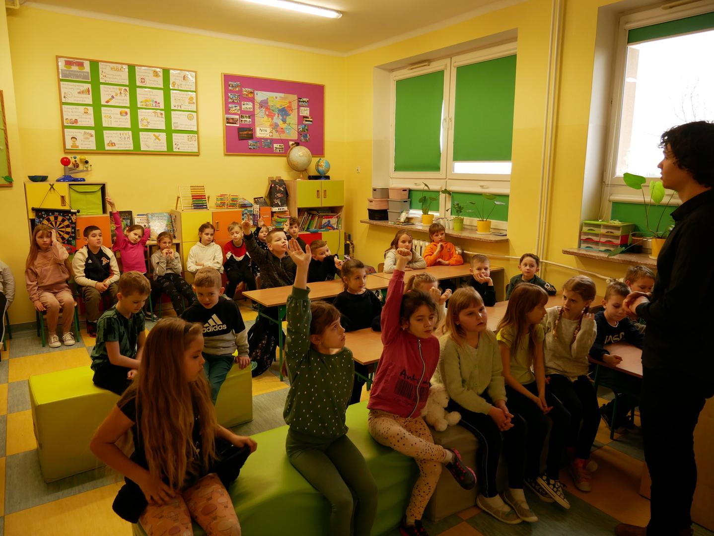 W czwartek 30.03.2023 r. gościliśmy w naszej szkole pana dietetyka Dawida Szarka. Celem spotkania było zwrócenie uwagi na właściwe odżywianie i zdrowy styl życia. Uczniowie poszczególnych klas mieli okazję przypomnieć sobie zasady prawidłowego odżywiania. W trakcie pogadanki pan dietetyk szczególną uwagę zwrócił na znaczenie zjadania śniadania przed przyjściem do szkoły, o czym nie wszyscy uczniowie pamiętają. Podkreślał również, jak istotne dla zdrowia jest spożywanie dobrze zbilansowanych pięciu posiłków dziennie. Pan dietetyk przekonywał, że bardzo ważną rolę w naszej diecie odgrywają warzywa i owoce, które powinny być składnikiem każdego posiłku. Omawiając piramidę zdrowego odżywiania zwrócił uwagę na to, co i w jakich ilościach powinniśmy jeść, aby nasz organizm pozostał w dobrej kondycji. Uczniowie dowiedzieli się jak duże znaczenie ma picie wody oraz jakie szkody w naszym organizmie wyrządza nadmierne spożycie cukru.