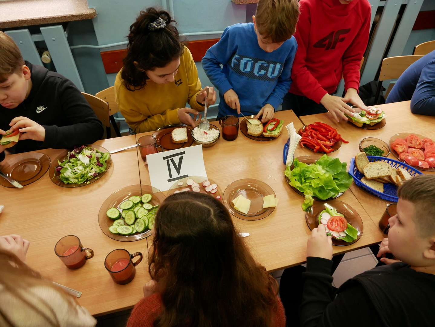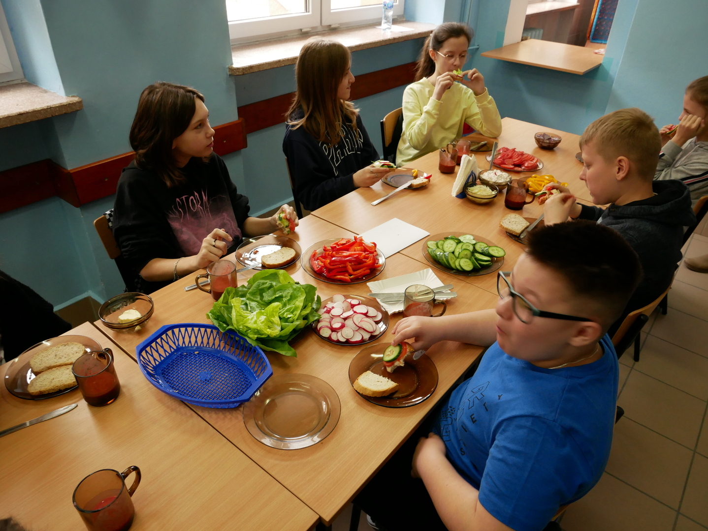 Po prezentacji poszczególne klasy udały się na stołówkę szkolną, gdzie przygotowywały zdrowe i odpowiednio zbilansowane posiłki.