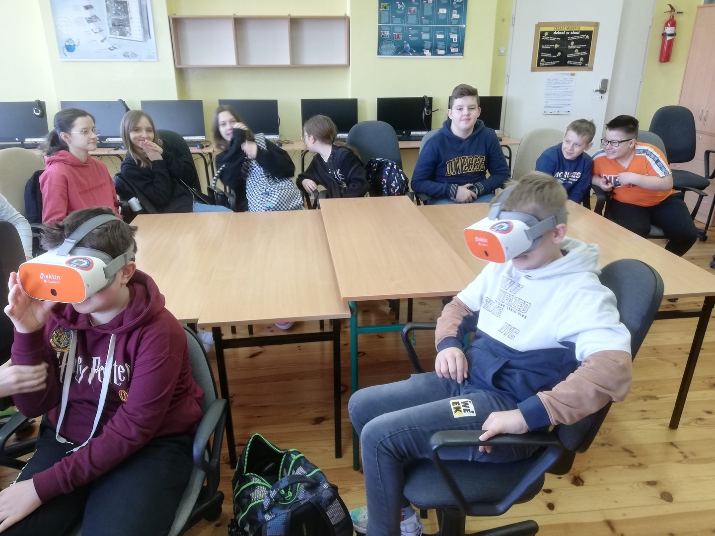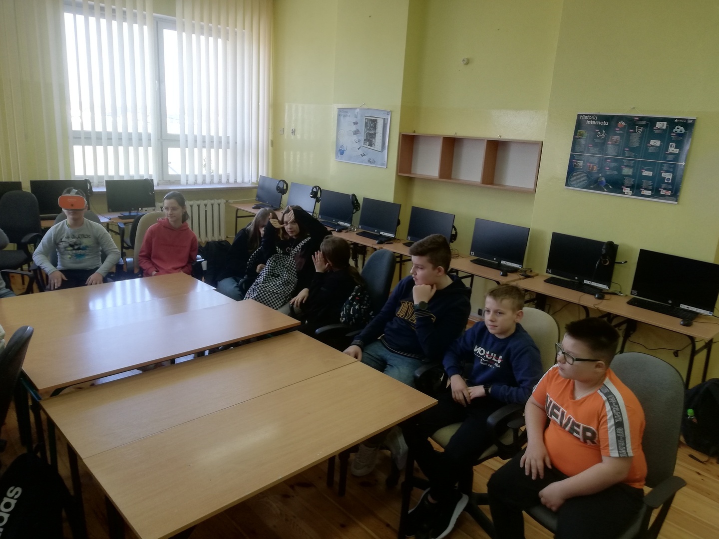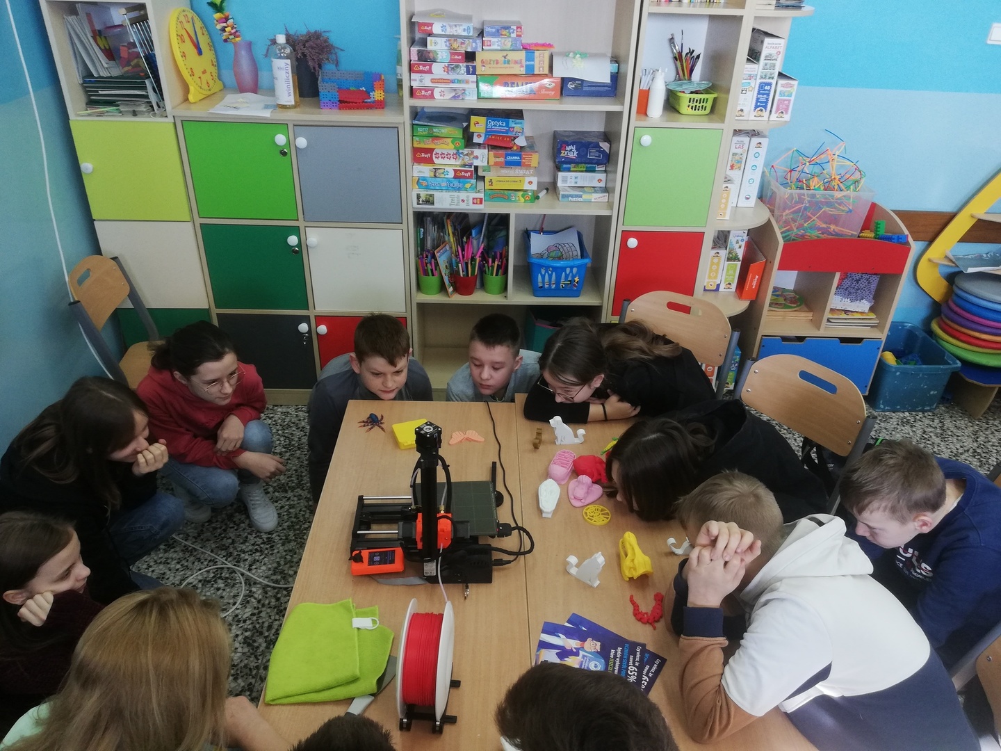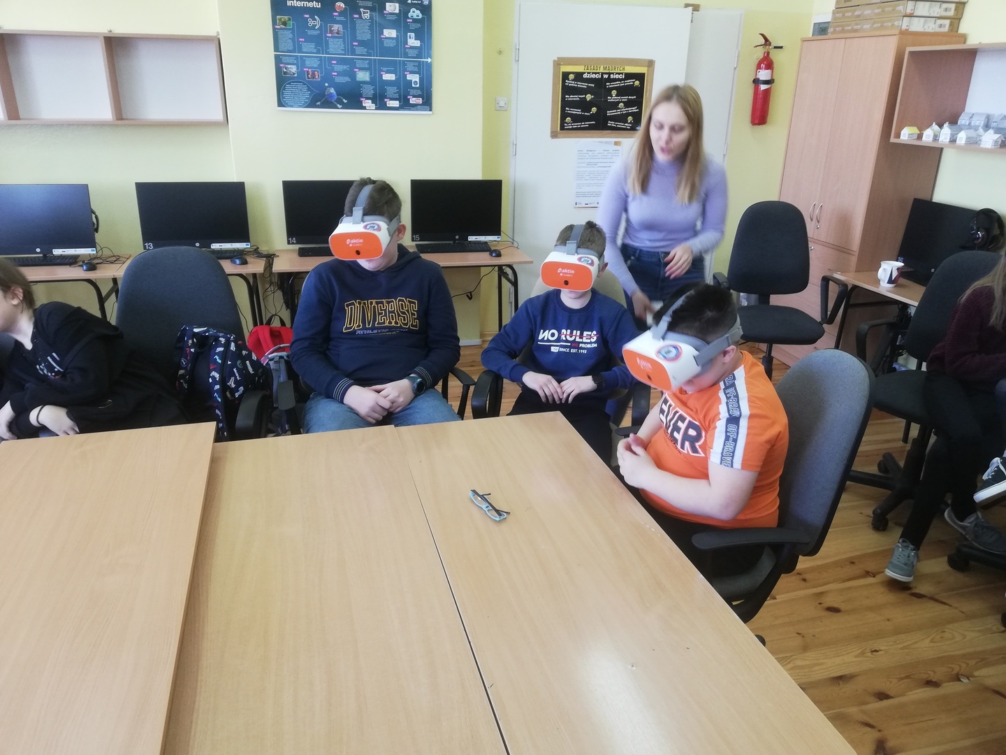Przybyli edukatorzy przeprowadzili w formie warsztatowej zajęcia z wykorzystaniem nowych technologii czyli sprzętu, który szkoła otrzymała w ramach tego projektu. Podczas zajęć uczniowie zgłębiali tematykę druku 3D. Zapoznali się z budową drukarki, własnościami wydruków oraz wspólnie przygotowali projekt do wydruku. W czasie kolejnych warsztatów zapoznali się z pojęciem sztucznej inteligencji. Mieli też możliwość wzięcia udziału w zabawie rozpoznawania obrazów na przykładzie programu do rozpoznawania gestów. Poznali zasady użytkowania okularów VR.
