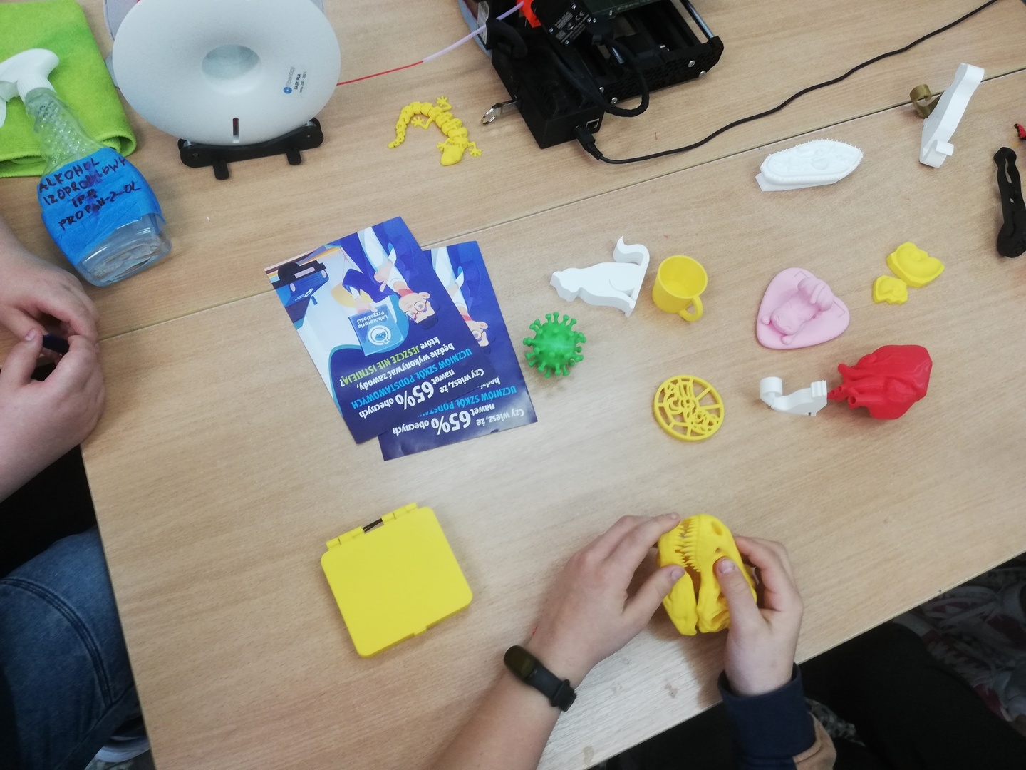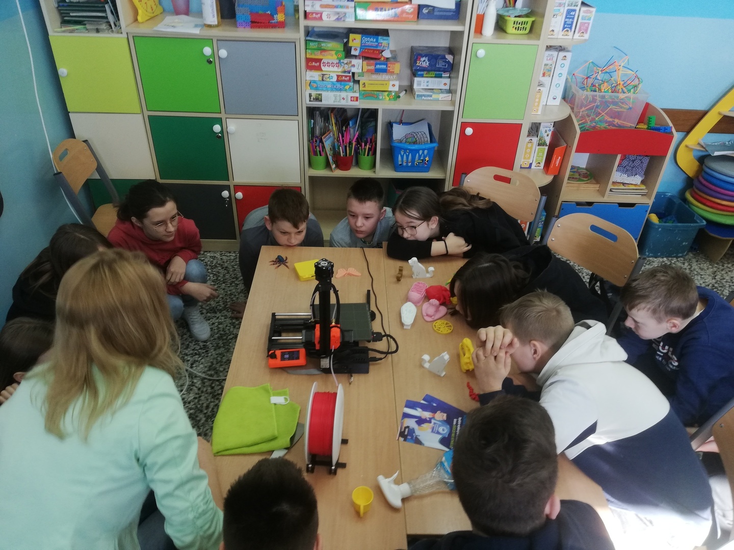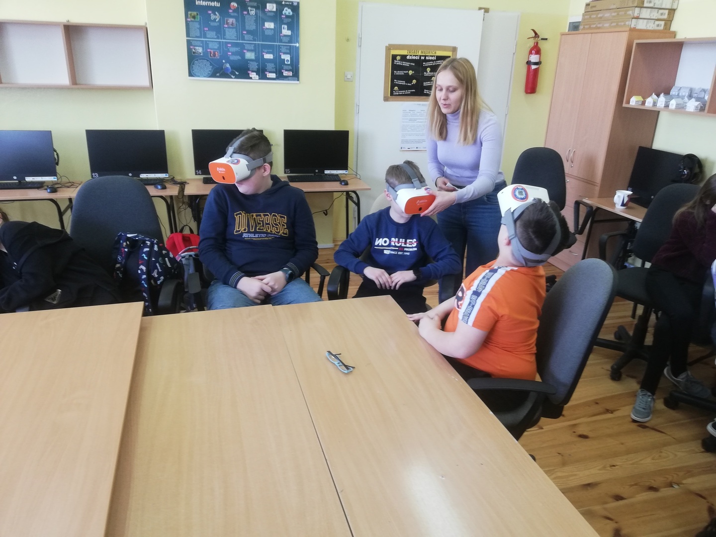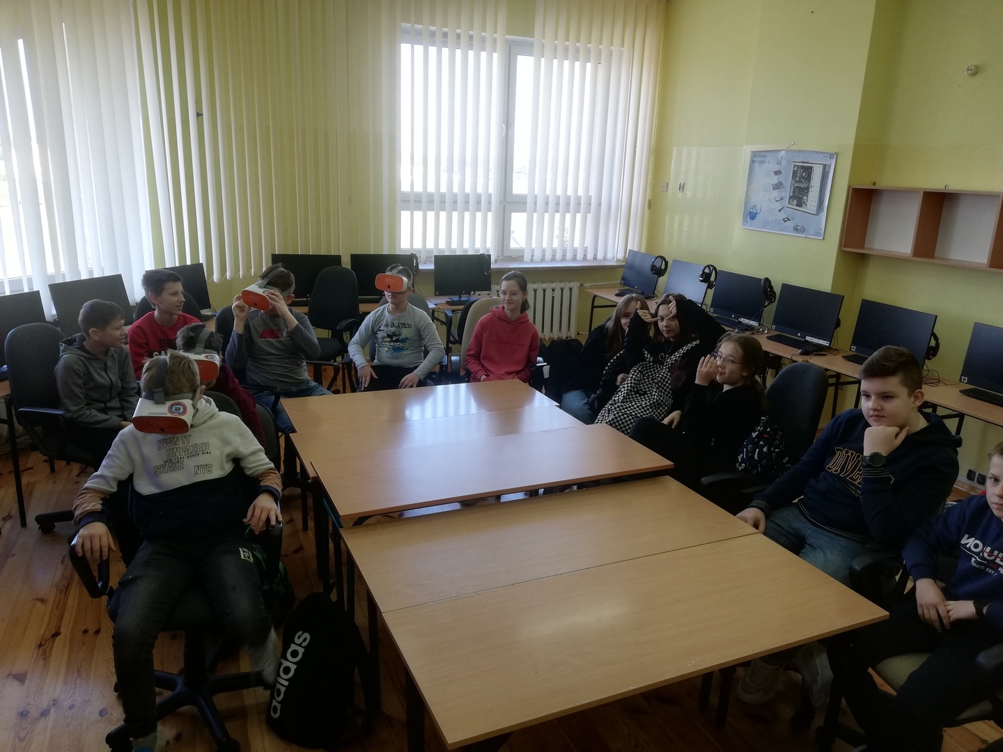 Przybyli edukatorzy przeprowadzili w formie warsztatowej zajęcia z wykorzystaniem nowych technologii czyli sprzętu, który szkoła otrzymała w ramach tego projektu. Podczas zajęć uczniowie zgłębiali tematykę druku 3D. Zapoznali się z budową drukarki, własnościami wydruków oraz wspólnie przygotowali projekt do wydruku. W czasie kolejnych warsztatów zapoznali się z pojęciem sztucznej inteligencji. Mieli też możliwość wzięcia udziału w zabawie rozpoznawania obrazów na przykładzie programu do rozpoznawania gestów. Poznali zasady użytkowania okularów VR.