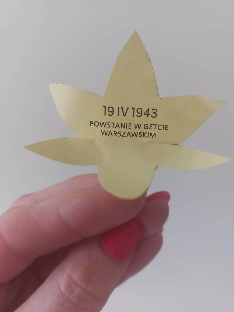 Tego dnia towarzyszyły nam wykonane z papieru żonkile, będące symbolem łączącej nas pamięci o powstaniu, jego bohaterkach oraz bohaterach. Żonkile są związane są z postacią Marka Edelmana, ostatniego przywódcy Żydowskiej Organizacji Bojowej, który w każdą rocznicę Powstania w Getcie Warszawskim dostawał te kwiaty od anonimowej osoby.