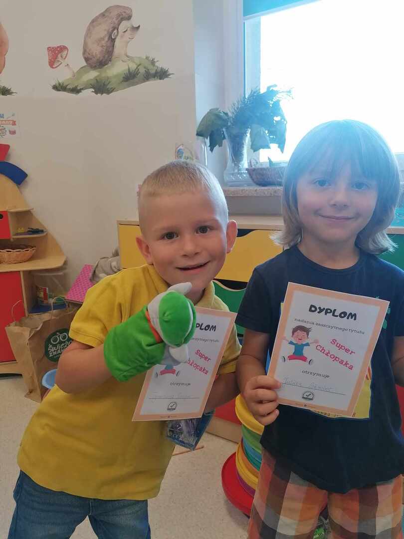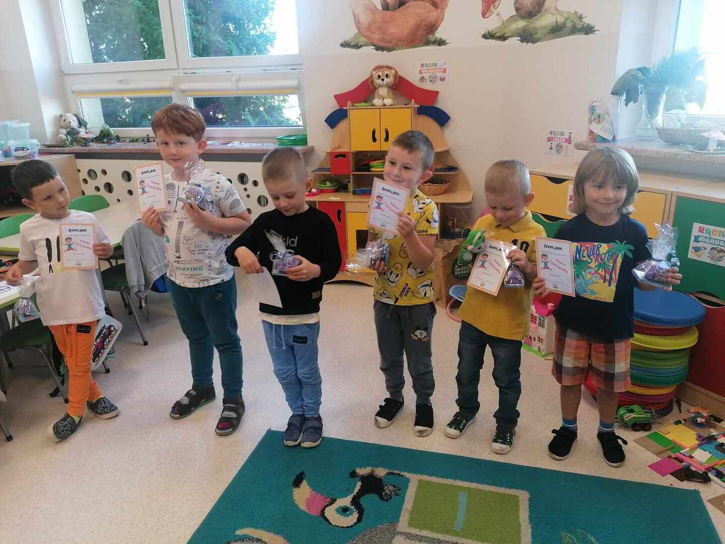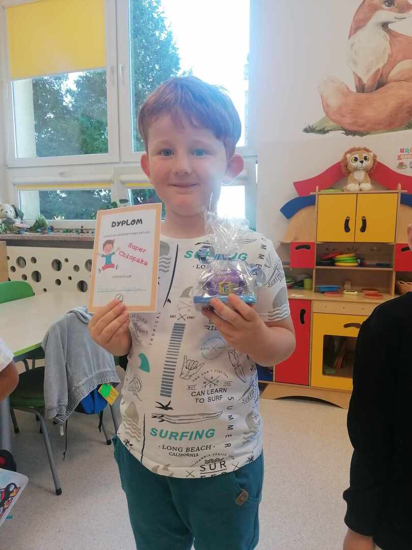 30 września obchodziliśmy w naszym przedszkolu szczególne święto czyli Dzień Chłopaka. W tym wyjątkowym dniu wszystkie dziewczynki złożyły chłopcom życzenia i zaśpiewały uroczyste „Sto lat”. Wszystkie maluszki tego dnia zostały obdarowane bańkami mydlanymi natomiast chłopcy ze starszej grupy otrzymali Dyplomy Super Chłopaka oraz wszyscy słodki upominek. Był to dzień, pełen wrażeń, atrakcji, radości i dobrej zabawy.