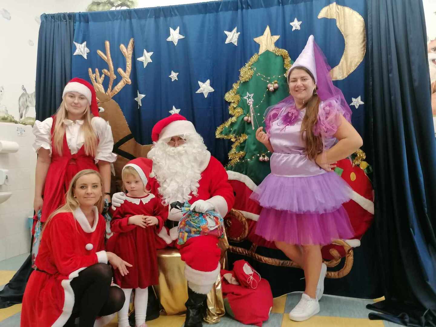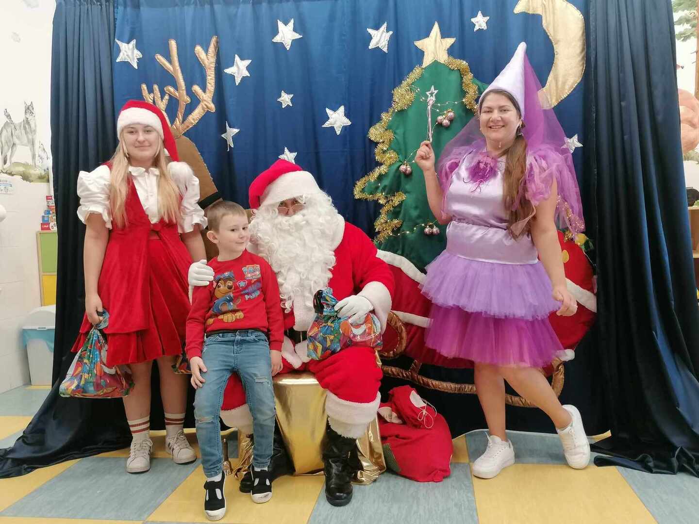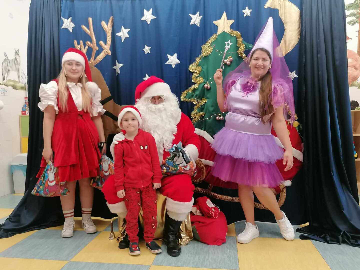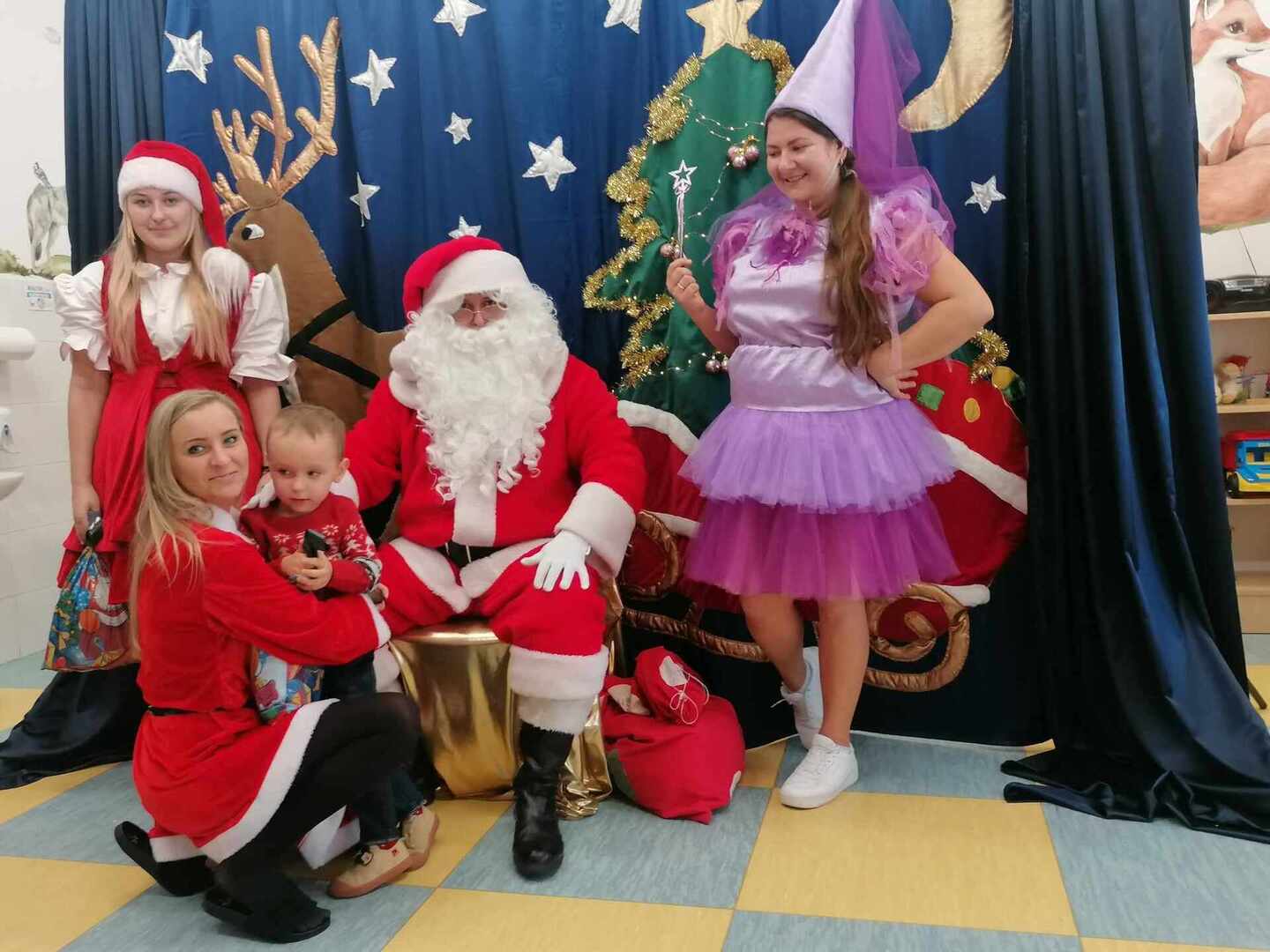 07.12 odwiedzili nas aktorzy z Agencji Artystycznej PATIGO z Kielc i zaprezentowali nam pełną humoru bajkę „Świąteczne problemy”. Długo oczekiwany Mikołaj słodko zasnął, głośno chrapie i ani myśli się obudzić, żeby rozdać dzieciom prezenty. Na szczęście Wróżka i Mikołajka starają się zażegnać kłopot i z pomocą dzieci próbują różnych sztuczek, aby przebudzić śpiocha. Jaki sposób okaże się skuteczny: głośne wołanie, śpiewanie, krzyk, a może coś zupełnie innego… Hura! Przedszkolakom udało się obudzić Mikołaja, który wręczył im upragnione prezenty.
