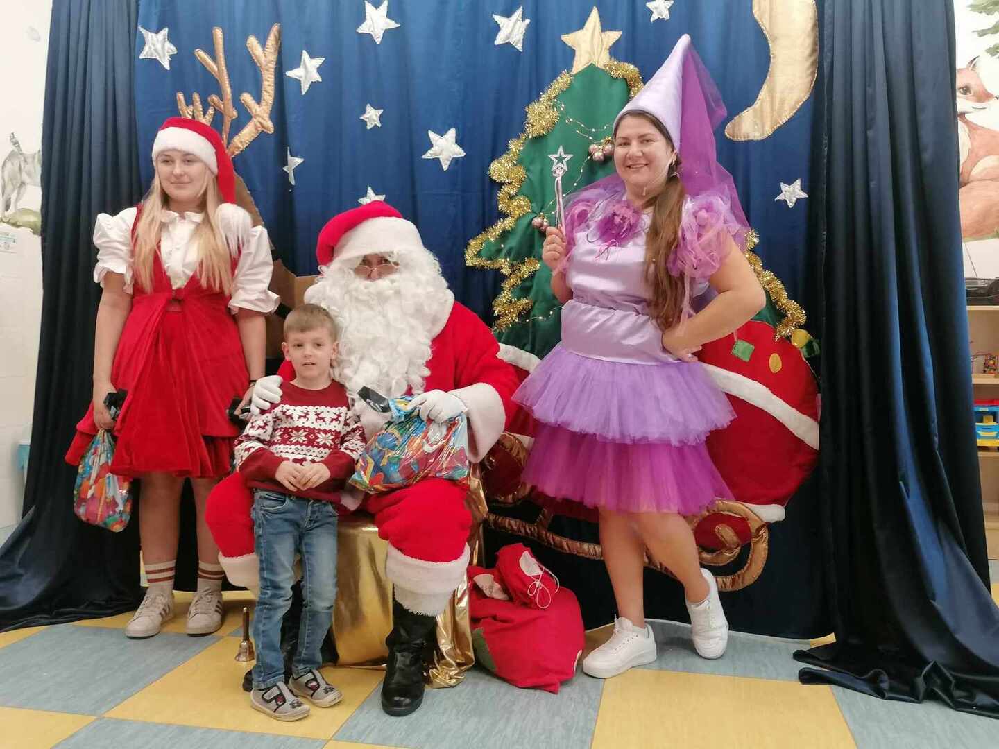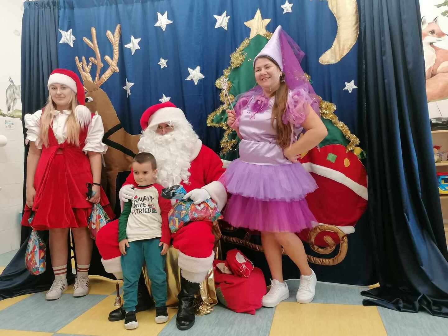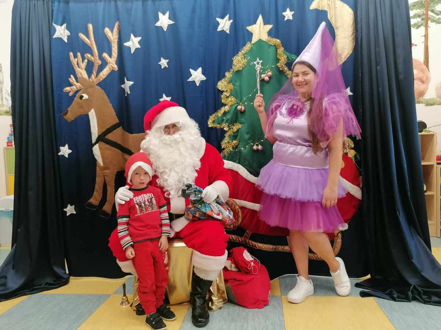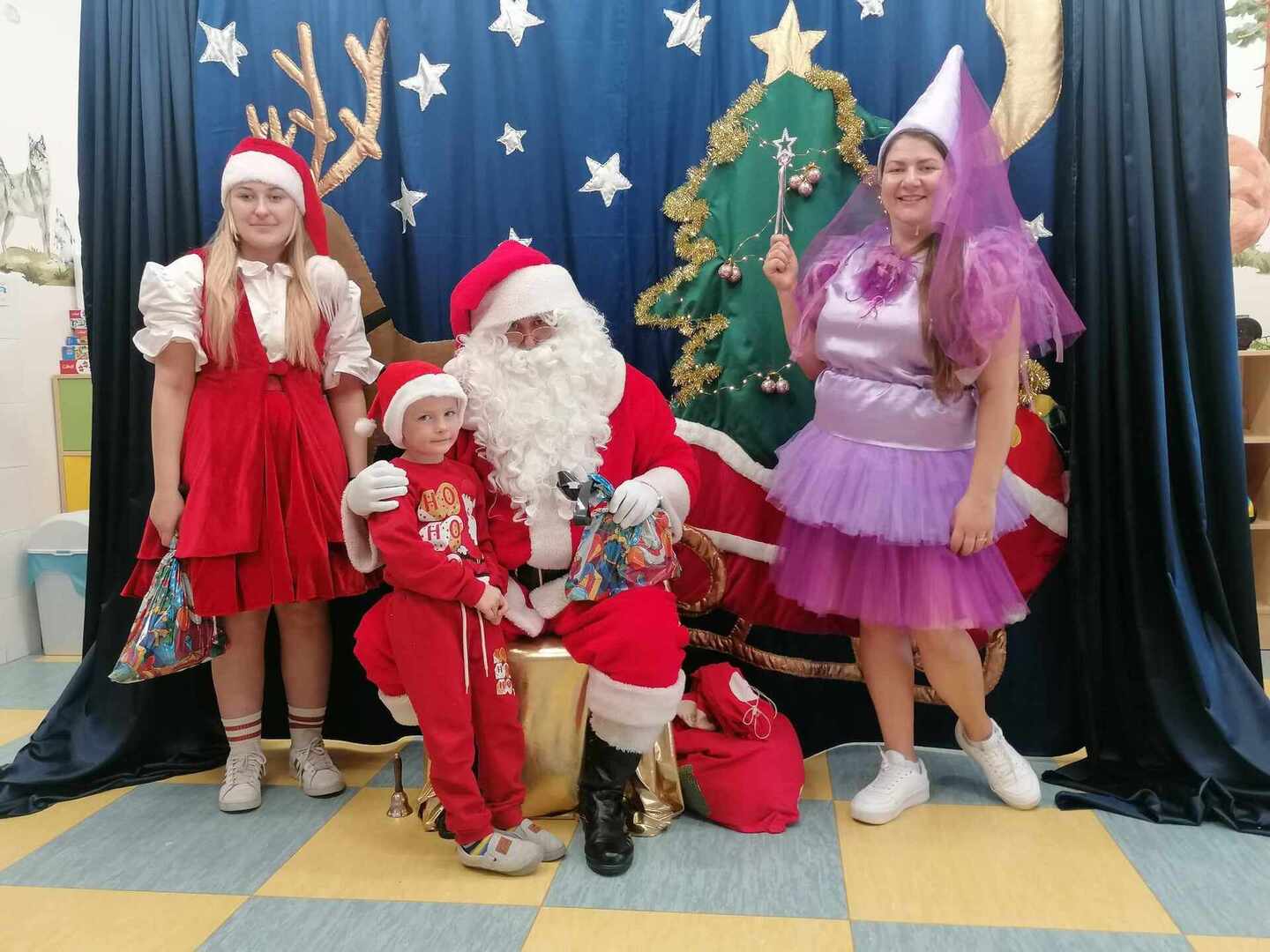 07.12 odwiedzili nas aktorzy z Agencji Artystycznej PATIGO z Kielc i zaprezentowali nam pełną humoru bajkę „Świąteczne problemy”. Długo oczekiwany Mikołaj słodko zasnął, głośno chrapie i ani myśli się obudzić, żeby rozdać dzieciom prezenty. Na szczęście Wróżka i Mikołajka starają się zażegnać kłopot i z pomocą dzieci próbują różnych sztuczek, aby przebudzić śpiocha. Jaki sposób okaże się skuteczny: głośne wołanie, śpiewanie, krzyk, a może coś zupełnie innego… Hura! Przedszkolakom udało się obudzić Mikołaja, który wręczył im upragnione prezenty.