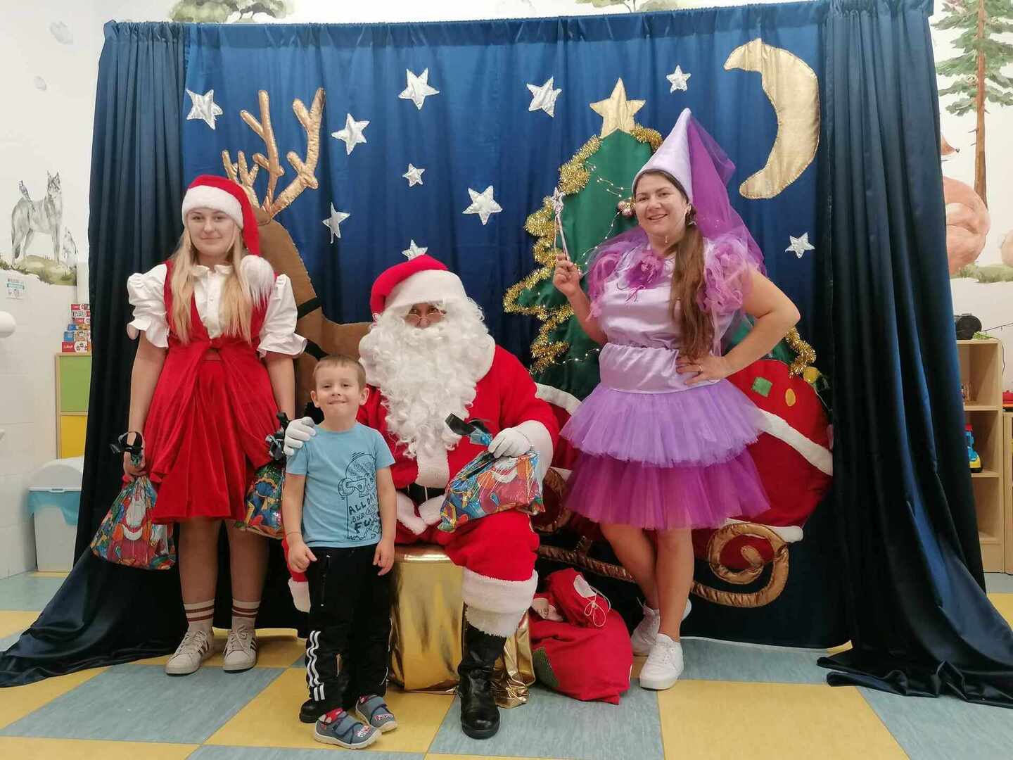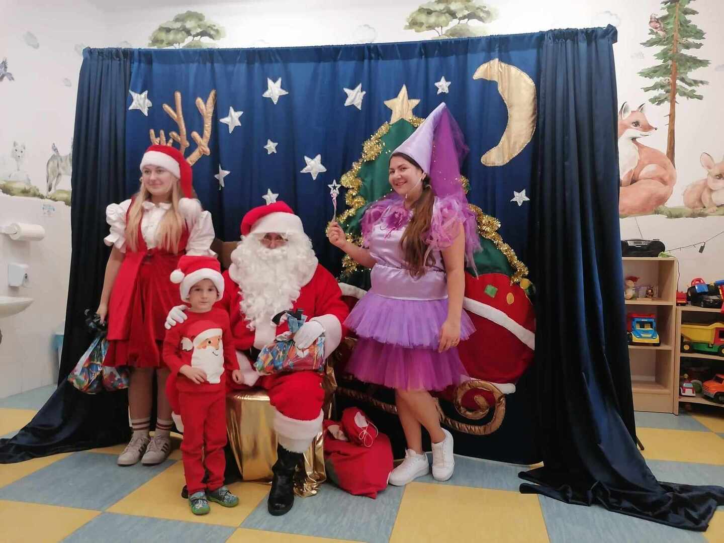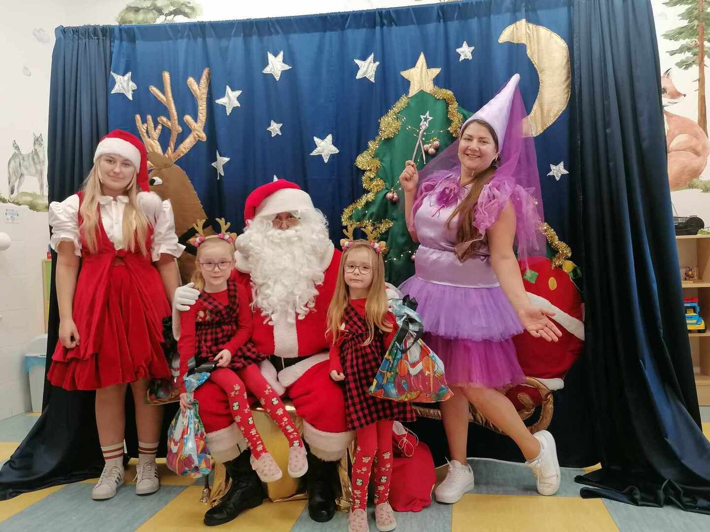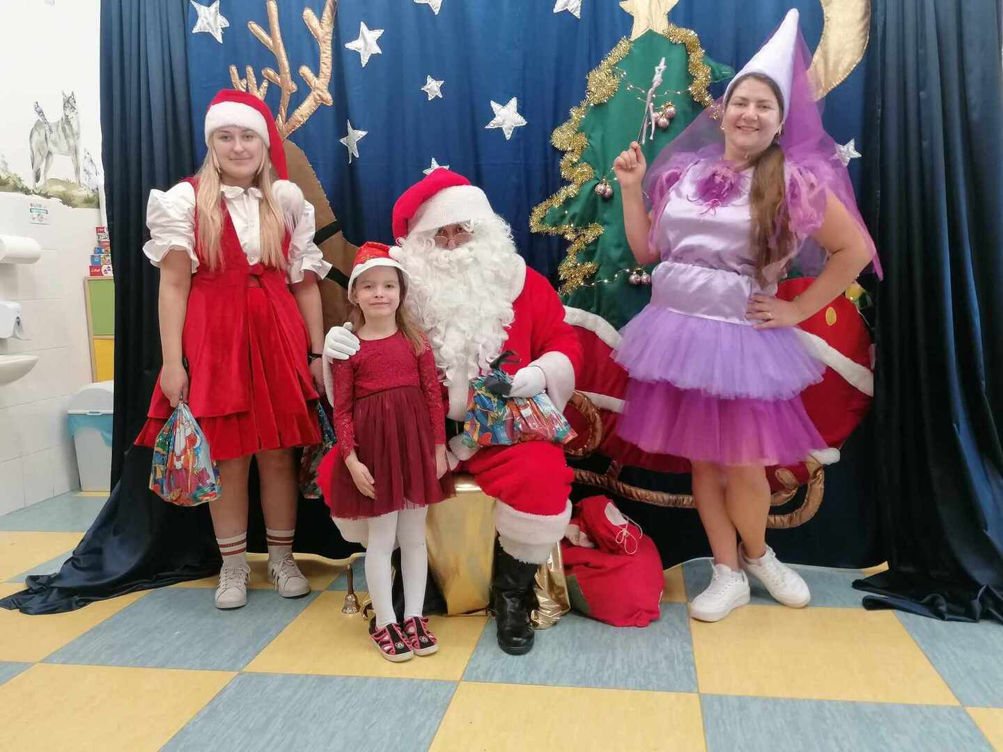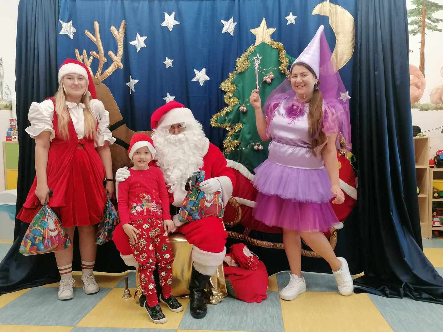 07.12 odwiedzili nas aktorzy z Agencji Artystycznej PATIGO z Kielc i zaprezentowali nam pełną humoru bajkę „Świąteczne problemy”. Długo oczekiwany Mikołaj słodko zasnął, głośno chrapie i ani myśli się obudzić, żeby rozdać dzieciom prezenty. Na szczęście Wróżka i Mikołajka starają się zażegnać kłopot i z pomocą dzieci próbują różnych sztuczek, aby przebudzić śpiocha. Jaki sposób okaże się skuteczny: głośne wołanie, śpiewanie, krzyk, a może coś zupełnie innego… Hura! Przedszkolakom udało się obudzić Mikołaja, który wręczył im upragnione prezenty.