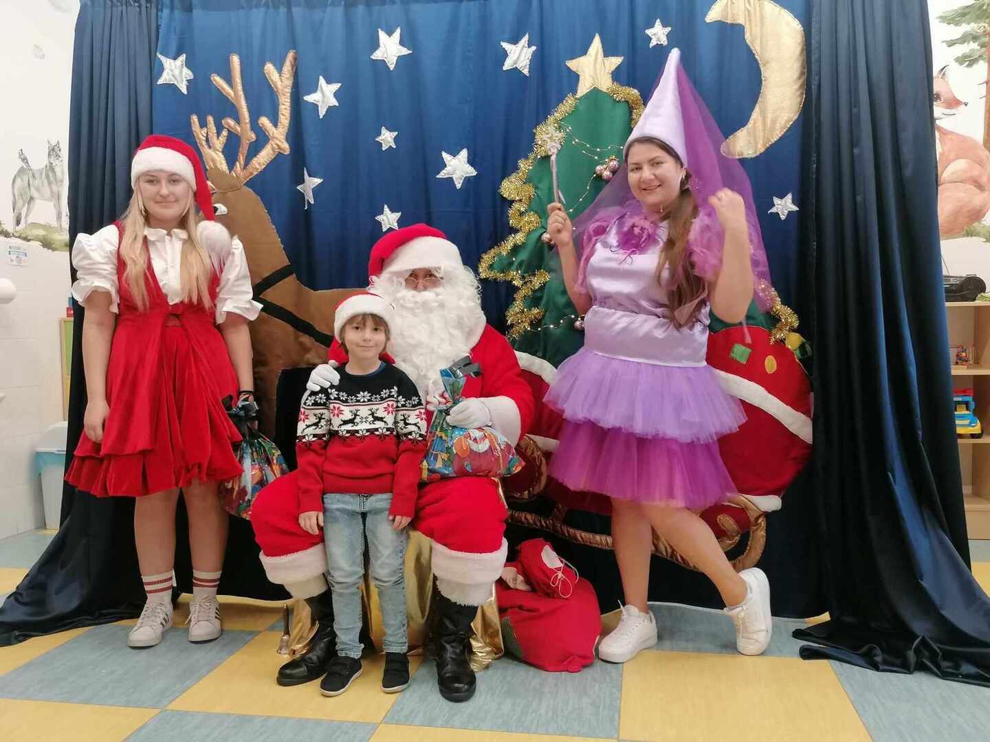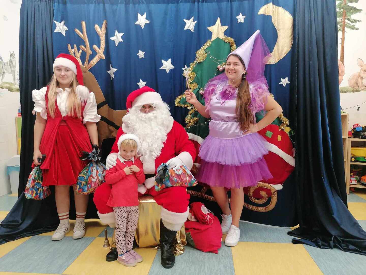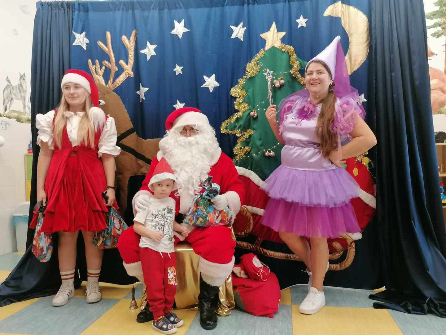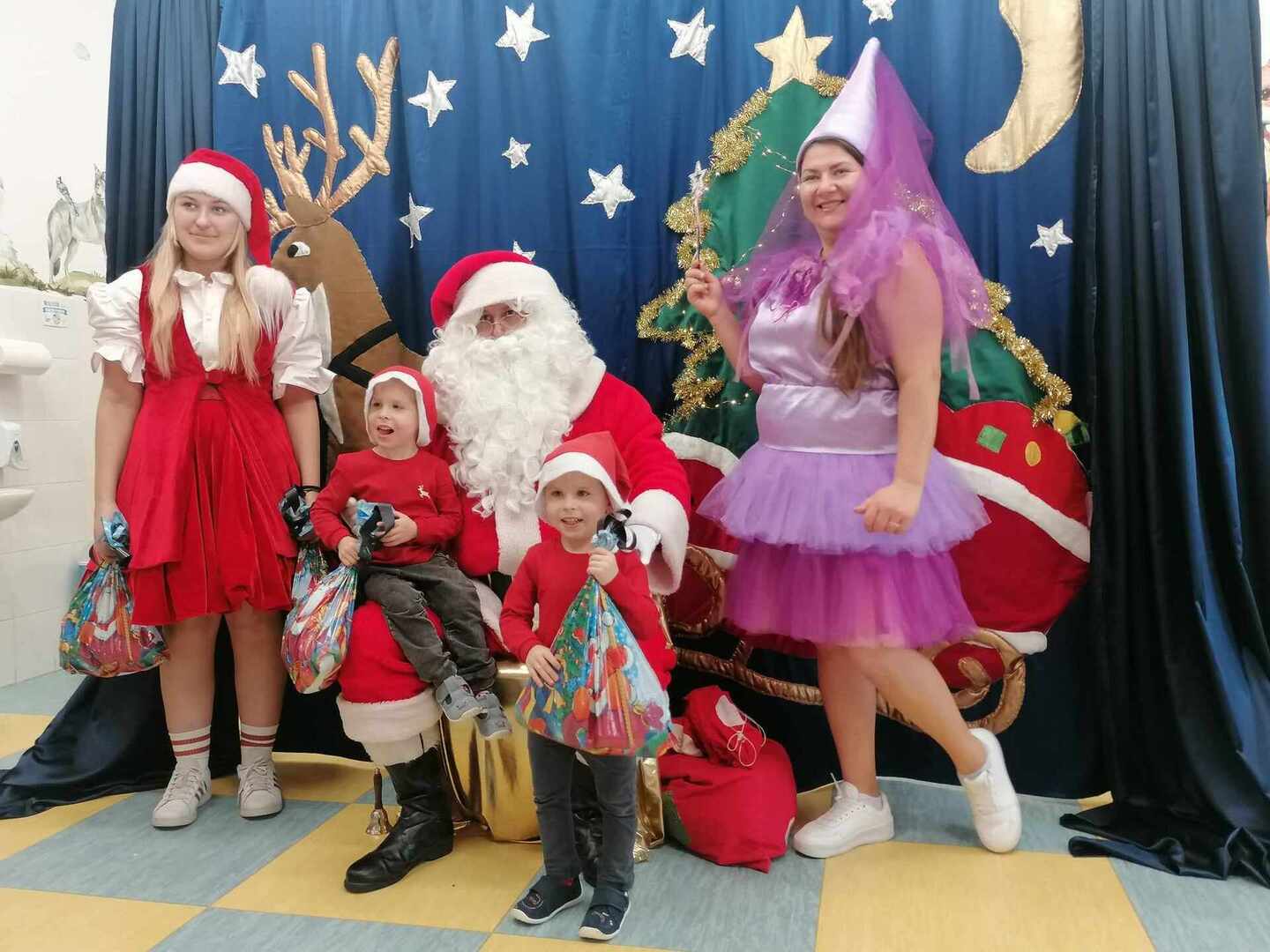 07.12 odwiedzili nas aktorzy z Agencji Artystycznej PATIGO z Kielc i zaprezentowali nam pełną humoru bajkę „Świąteczne problemy”. Długo oczekiwany Mikołaj słodko zasnął, głośno chrapie i ani myśli się obudzić, żeby rozdać dzieciom prezenty. Na szczęście Wróżka i Mikołajka starają się zażegnać kłopot i z pomocą dzieci próbują różnych sztuczek, aby przebudzić śpiocha. Jaki sposób okaże się skuteczny: głośne wołanie, śpiewanie, krzyk, a może coś zupełnie innego… Hura! Przedszkolakom udało się obudzić Mikołaja, który wręczył im upragnione prezenty.