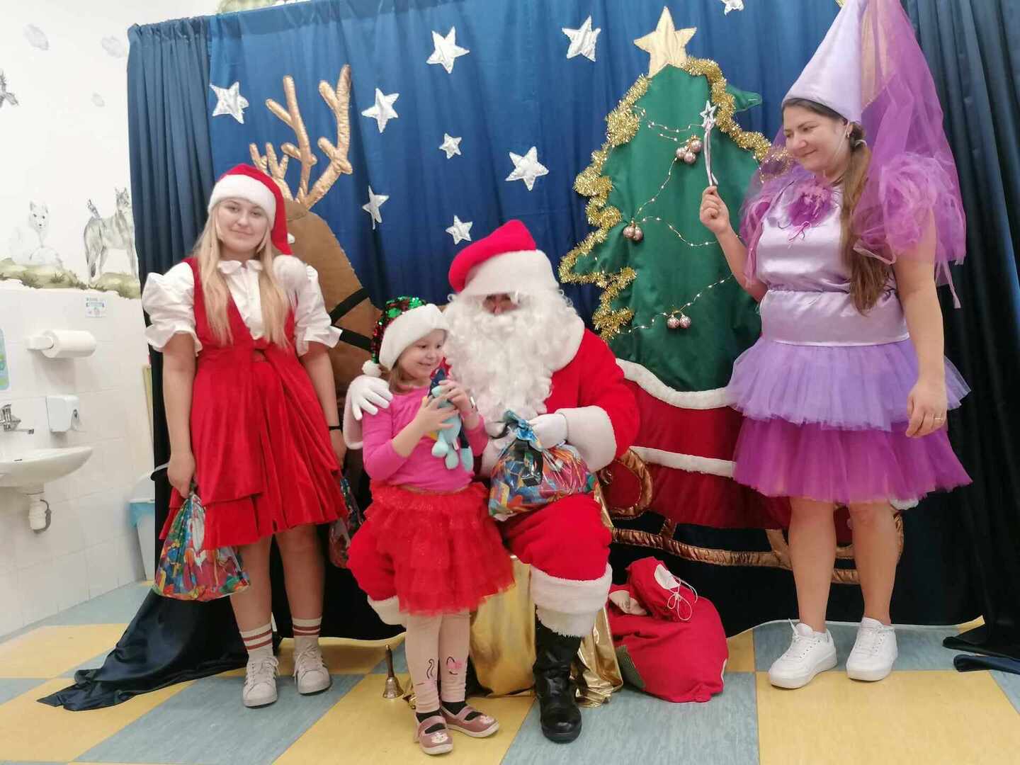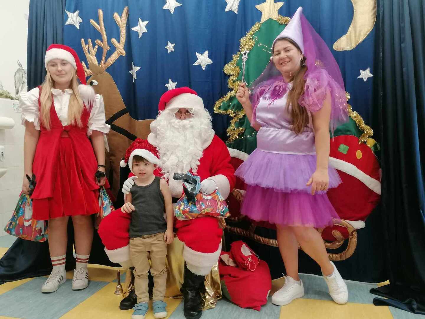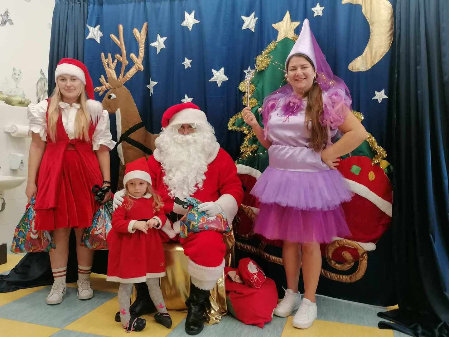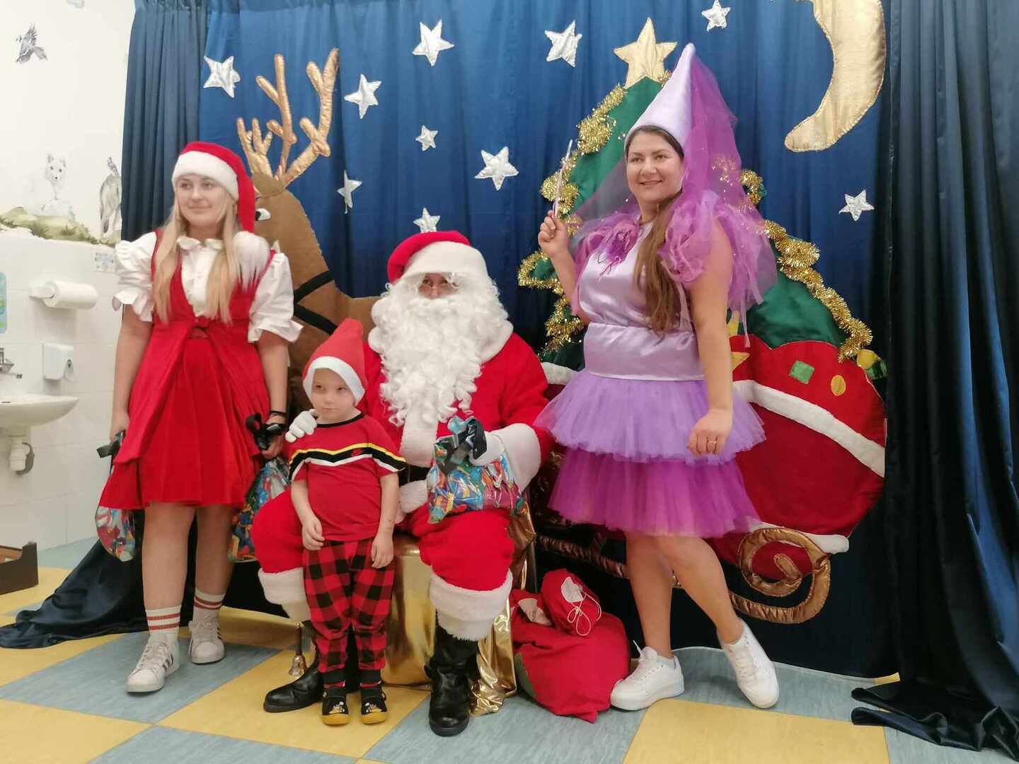 07.12 odwiedzili nas aktorzy z Agencji Artystycznej PATIGO z Kielc i zaprezentowali nam pełną humoru bajkę „Świąteczne problemy”. Długo oczekiwany Mikołaj słodko zasnął, głośno chrapie i ani myśli się obudzić, żeby rozdać dzieciom prezenty. Na szczęście Wróżka i Mikołajka starają się zażegnać kłopot i z pomocą dzieci próbują różnych sztuczek, aby przebudzić śpiocha. Jaki sposób okaże się skuteczny: głośne wołanie, śpiewanie, krzyk, a może coś zupełnie innego… Hura! Przedszkolakom udało się obudzić Mikołaja, który wręczył im upragnione prezenty.
