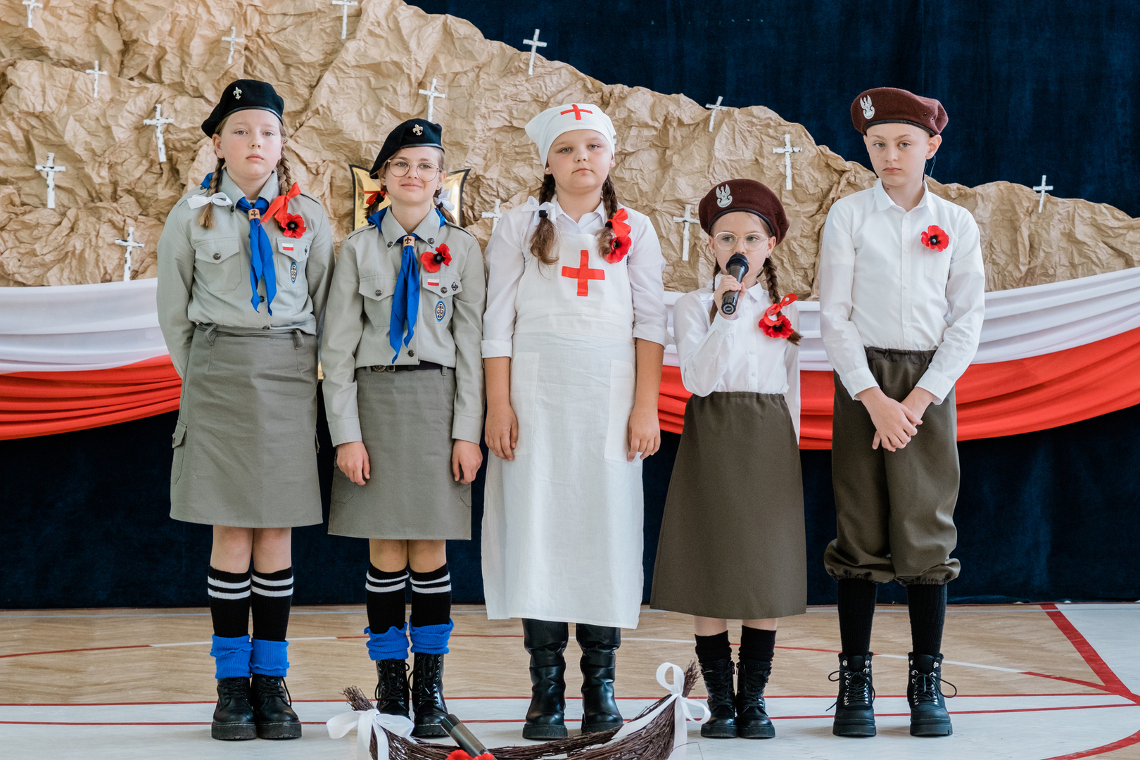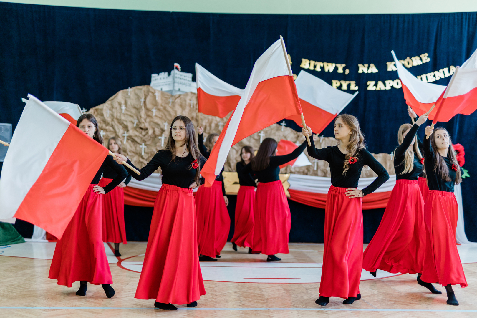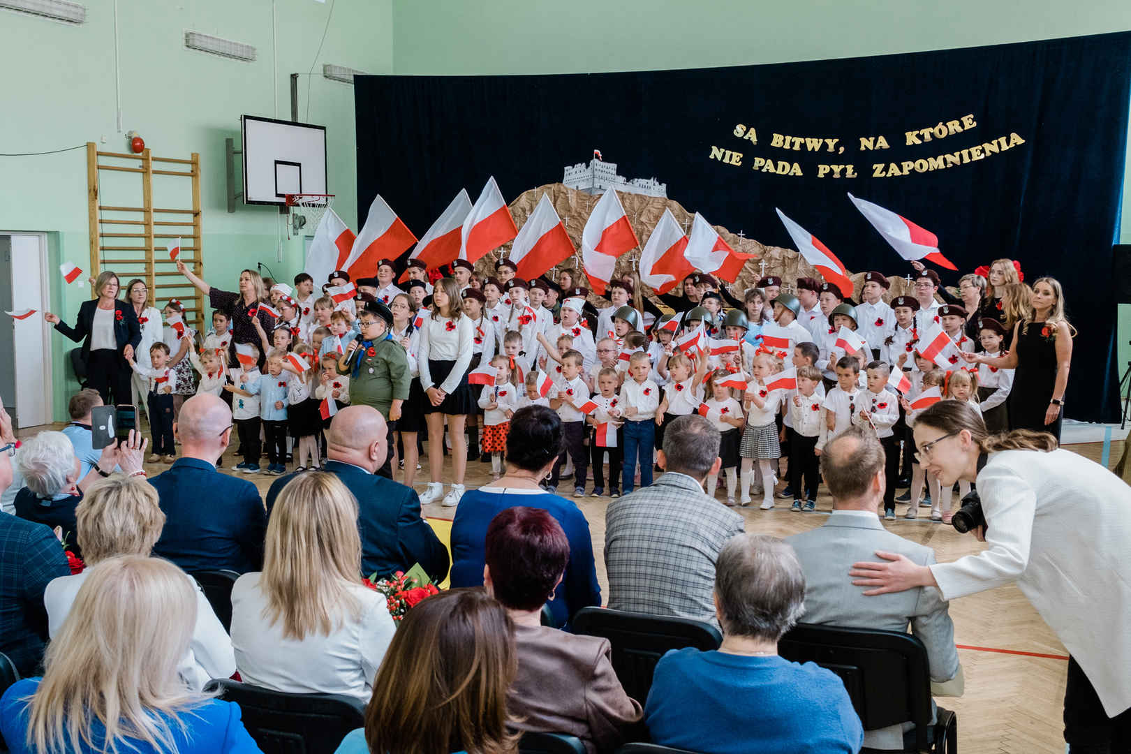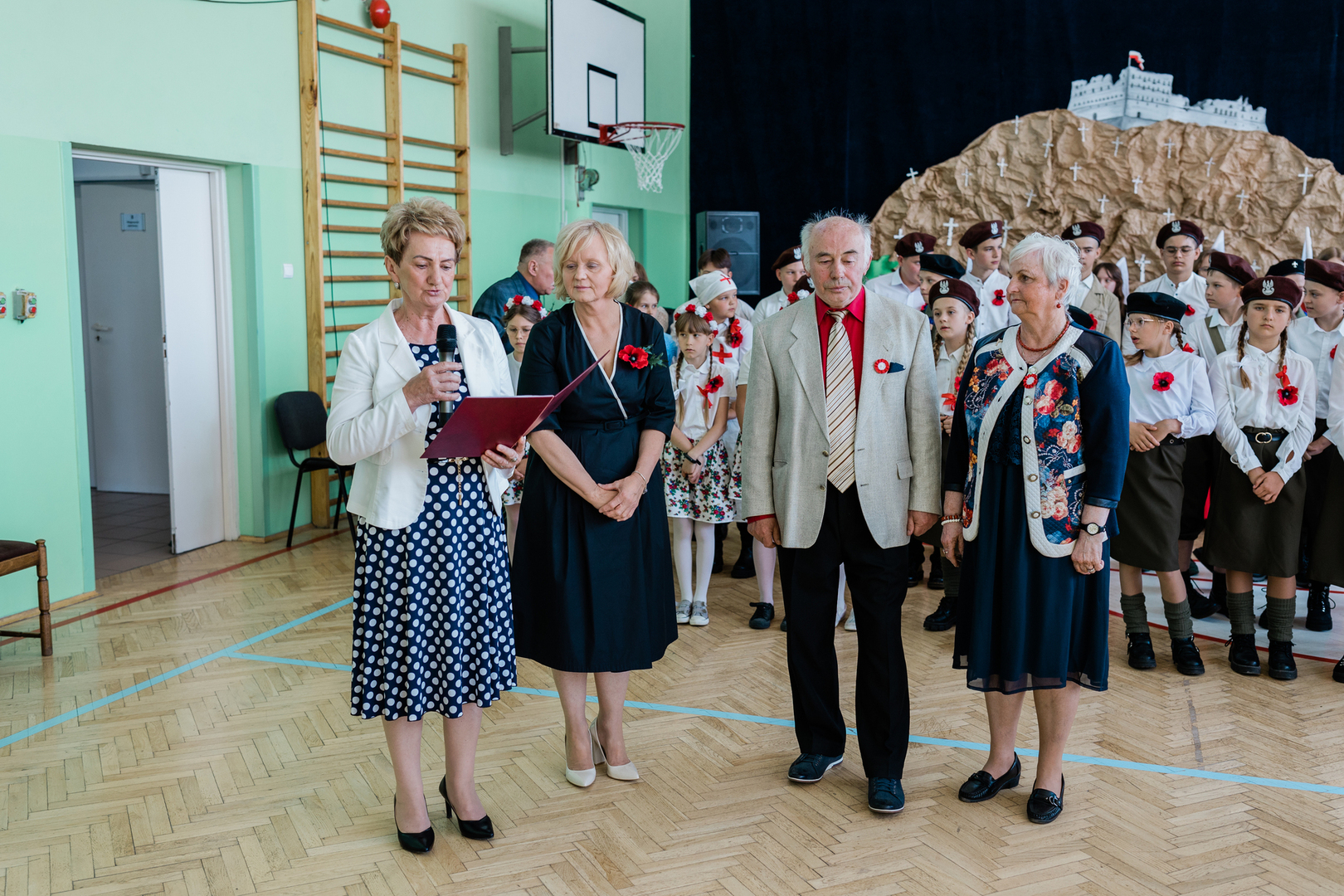 Niezapomnianych wzruszeń dostarczył zaproszonym gościom i uczestnikom występ uczniów w montażu słowno – muzycznym Są bitwy, na które nie pada pył zapomnienia. Należy podkreślić, że w uroczystości wystąpiła większość uczniów, przedszkolaki, a także absolwentka szkoły. Piosenki patriotyczne; m.in. : Uwierz Polsko, Czerwone maki, Piosenka o Wojtku, recytacje wierszy, wspomnienia żołnierzy, apel poległych oddały piękno i tragizm tamtych majowych wydarzeń 1944 roku. Zatknięcie biało – czerwonej flagi na ruinach klasztoru zostało upamiętnione efektownym tańcem z flagami. Przejmującą wymowę na zakończenie miała piosenka Stanisławy Celińskiej Modlitwa o pokój. Wojna na Ukrainie uczy, że nic nie zostało nam dane na zawsze. O wolność i pokój musimy dbać. Publiczność i zaproszeni goście byli pod wrażeniem talentu uczniów, strojów, pięknej dekoracji. Szkolni artyści zebrali zasłużone brawa i gratulacje.