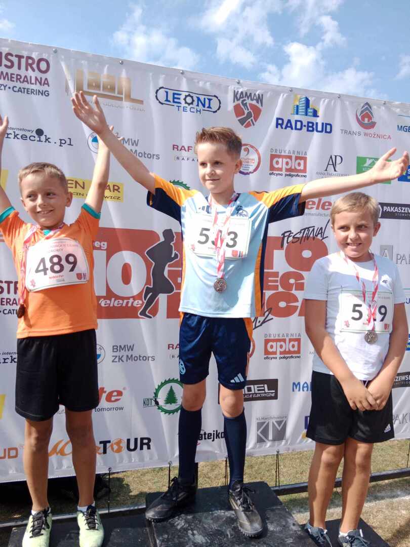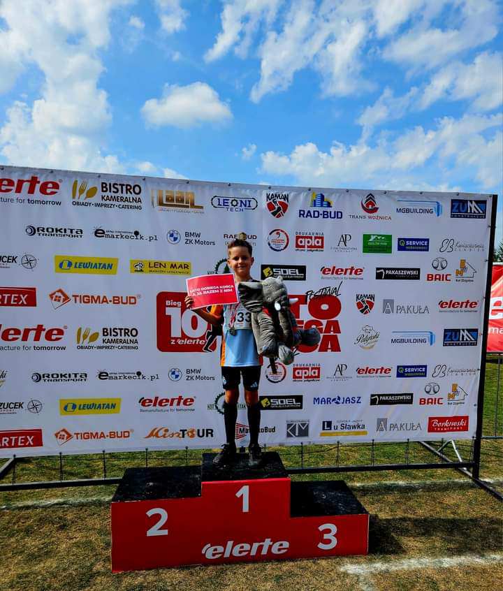 W biegu chłopców na 400 m I miejsce zdobył uczeń klasy III Igor Staniek .