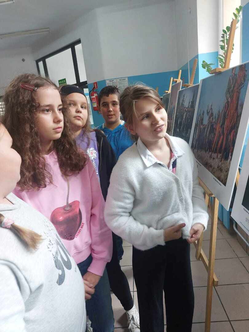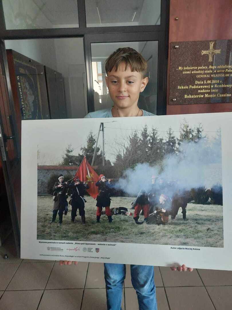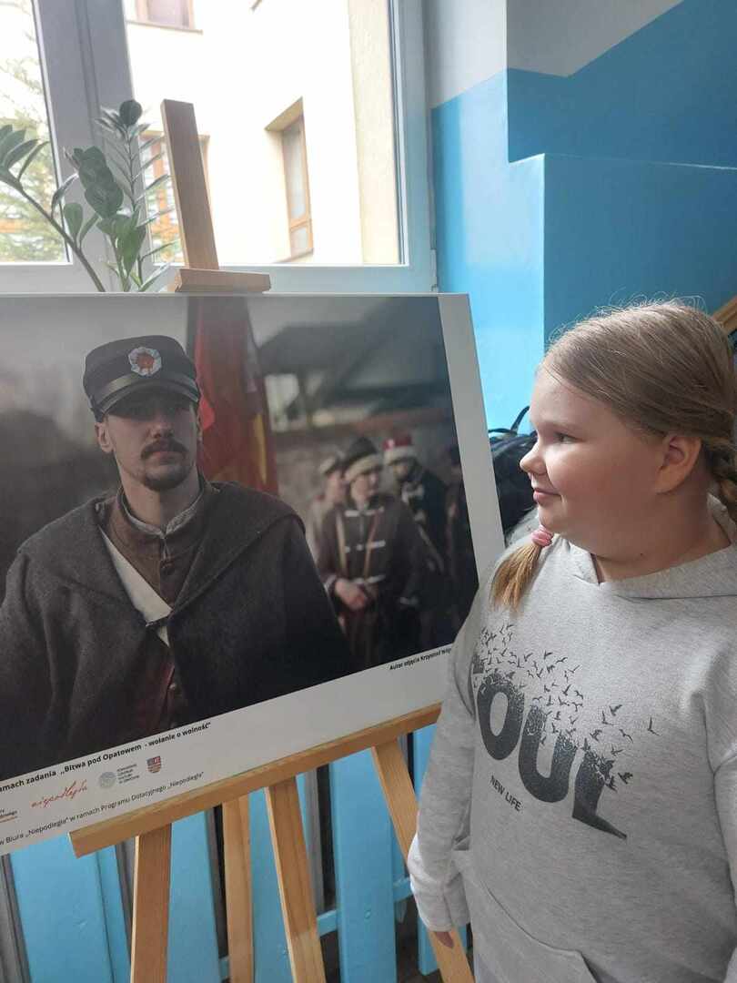 Uczniowie klas 4-8 w dniach od 3 - 9 października 2024r. mieli okazję wziąć udział w nietypowej lekcji historii, a to wszystko dzięki wystawie poplenerowej ,,Bitwa pod Opatowem – wołanie o wolność’’.