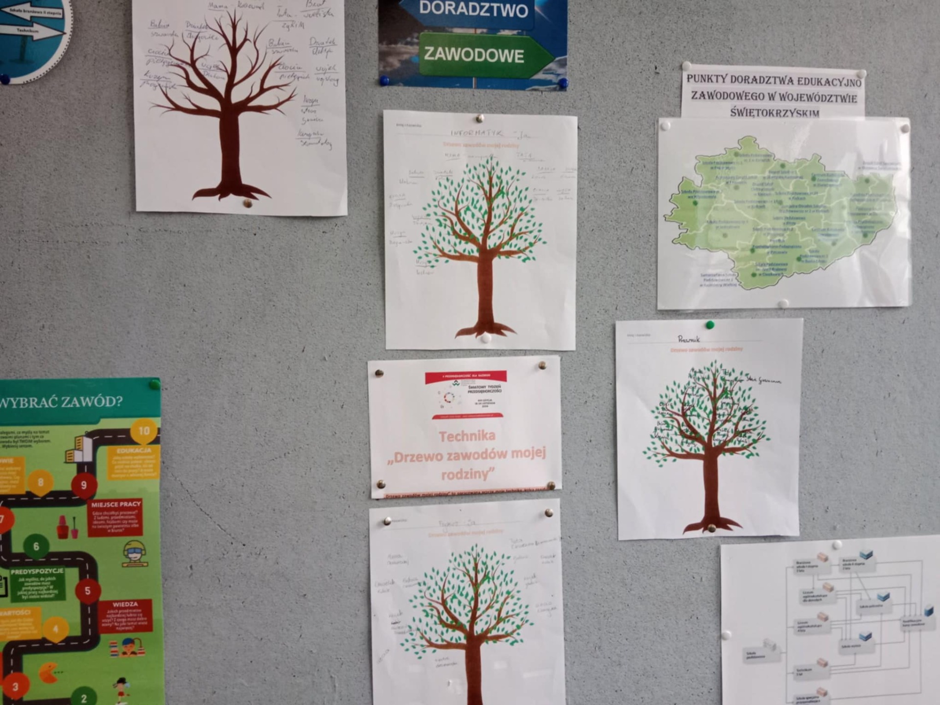 W naszej placówce realizowane były zajęcia w ramach Światowego Tygodnia Przedsiębiorczości XVII edycja #PRZEDŚIĘBIORCZOŚĆ DLA KAŻDEGO. Uczniowie w ramach zajęć doradztwa zawodowego wykonywali Drzewa zawodów swojej rodziny. Zapoznali się z klasyfikacją zawodów , opisami zawodów na Wortalu Publicznych Służb Zatrudnienia oraz z 179 zawodami na Zintegrowanej Platformie Edukacyjnej Ministerstwa Edukacji Narodowej.