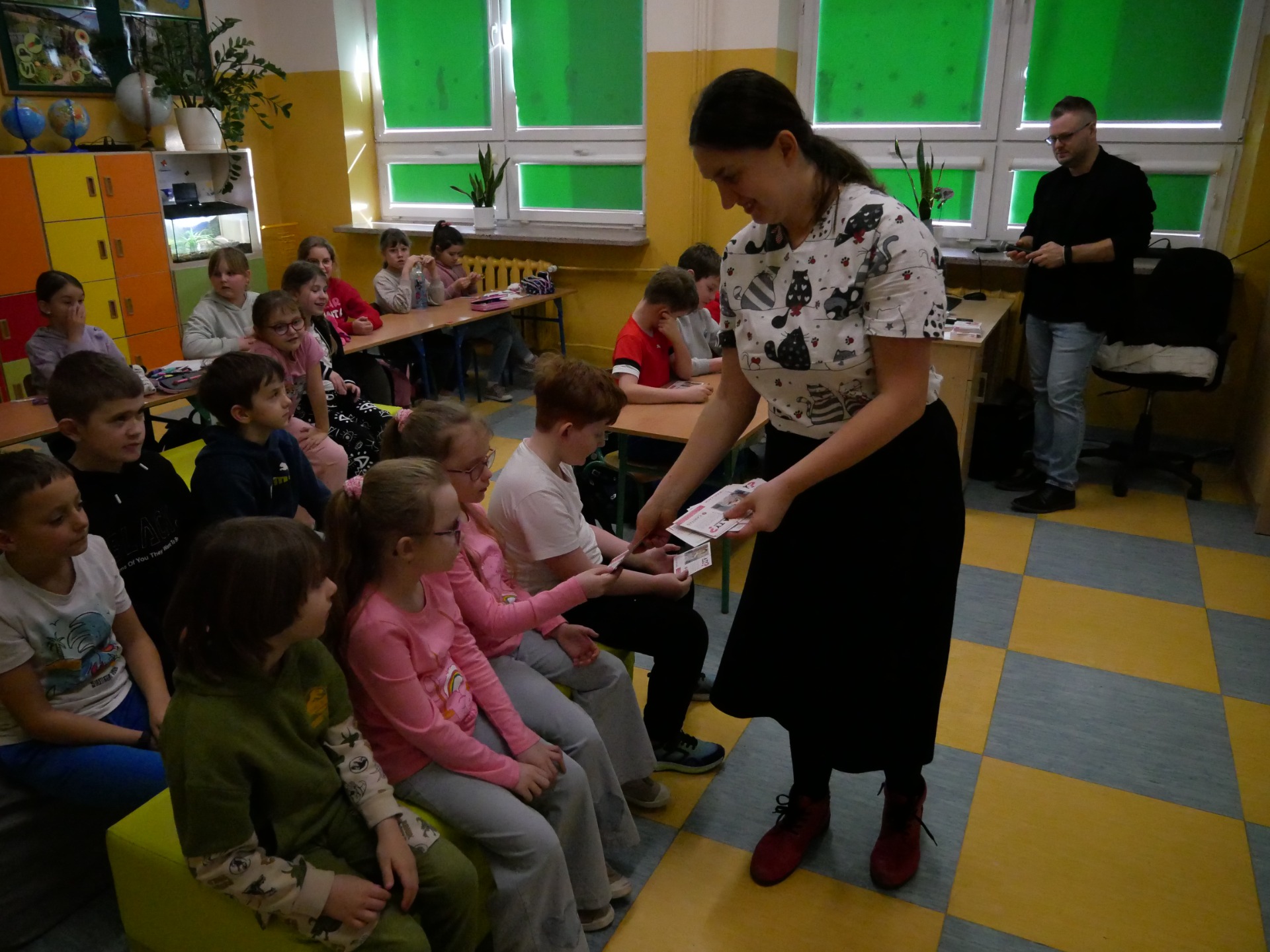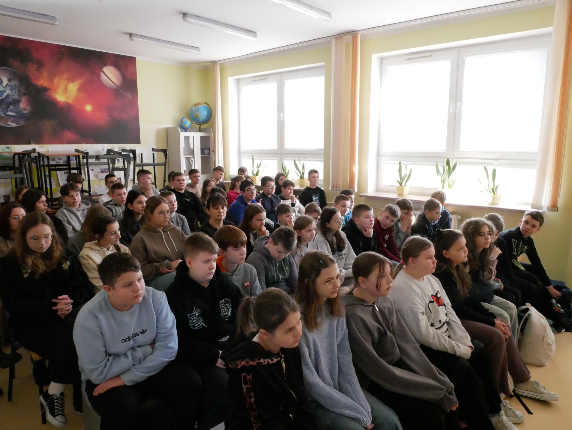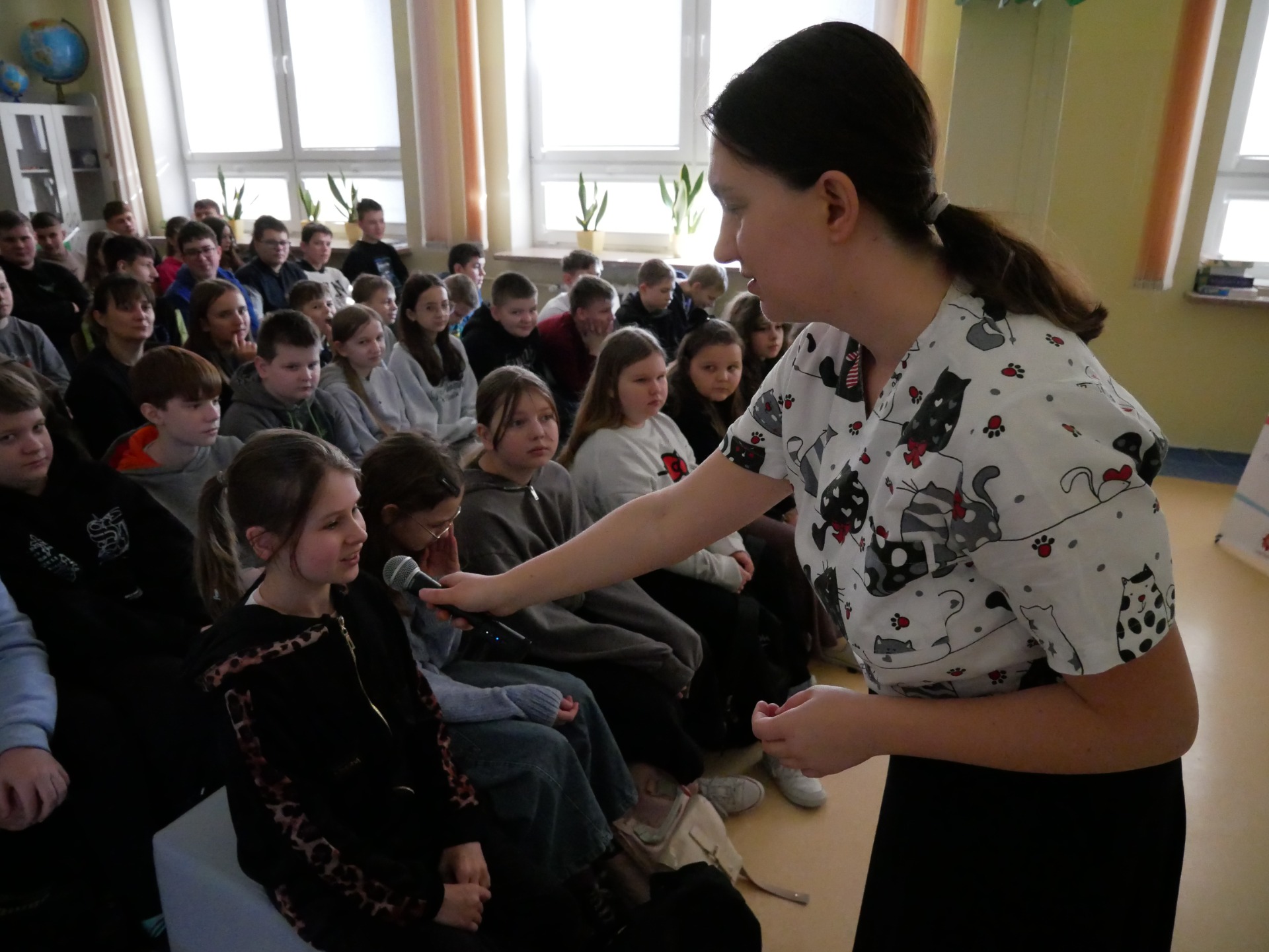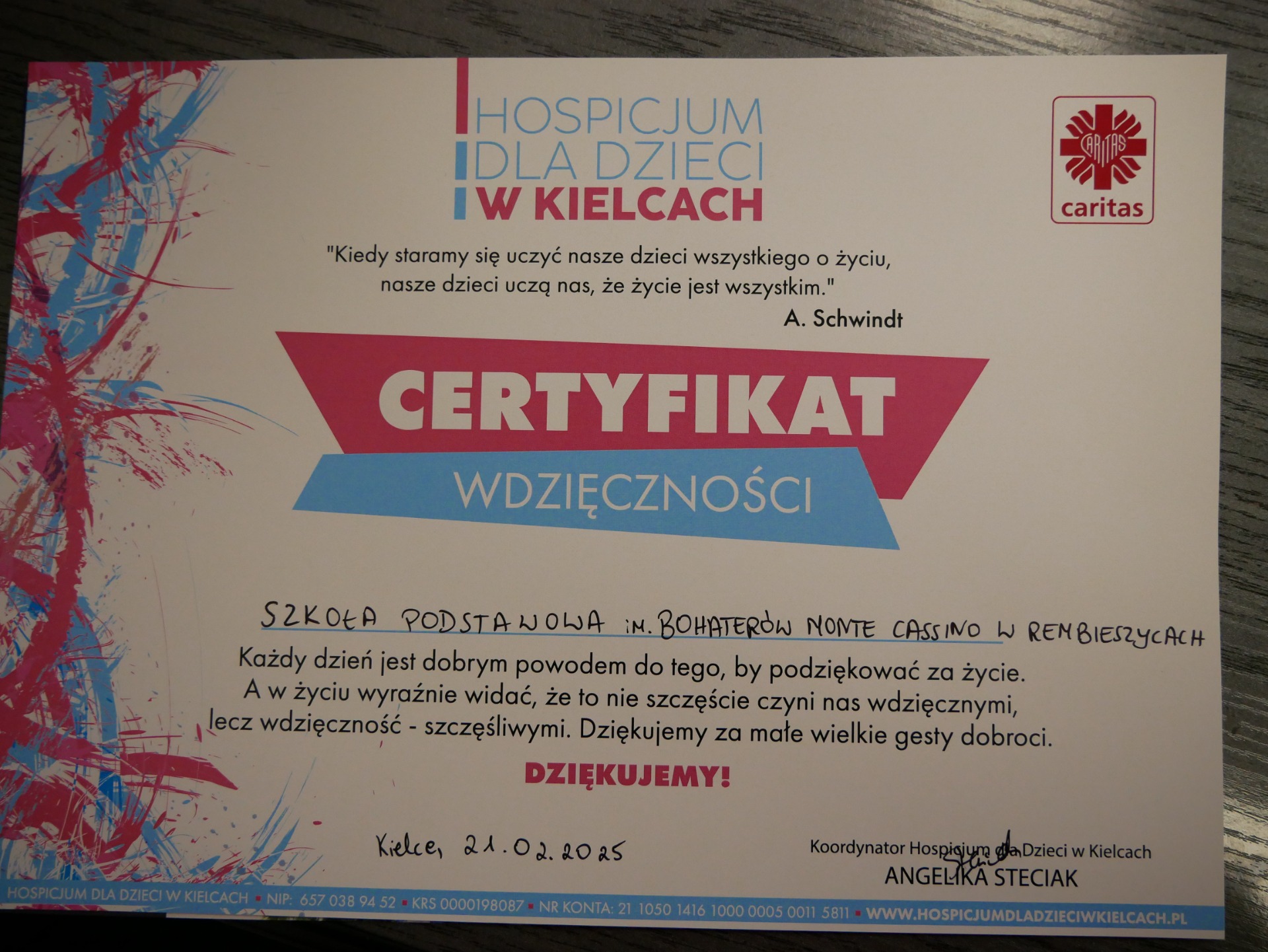 Serdecznie dziękujemy Państwu Angelice i Michałowi Steciakom za wyjątkową wizytę w naszej szkole! Podczas spotkania uczniowie mieli okazję posłuchać inspirujących historii oraz dowiedzieć się, jak ważna jest empatia i wzajemne wsparcie. Pani Angelika poruszyła trudny temat choroby, cierpienia i śmierci oraz opowiedziała o codziennym funkcjonowaniu hospicjum dla dzieci. Nasza szkoła aktywnie wspiera Hospicjum Dziecięce im. Matki Teresy z Kalkuty w Kielcach – już od dawna działamy na rzecz potrzebujących, a w ostatnim czasie Samorząd Uczniowski z własnej inicjatywy zorganizował kiermasz babeczek, którego dochód został przekazany na rzecz hospicjum. Pan Michał zaśpiewał, a Pani Angelika przypomniała nam, że warto cieszyć się każdą chwilą. Nasi goście nie tylko słowem, muzyką, ale przede wszystkim czynem pokazują nam, jak codziennie łączyć wrażliwość z radością życia. Ta lekcja empatii pozostanie w naszej pamięci i z pewnością zmotywuje nas do jeszcze większego zaangażowania społecznego, bo chcemy Razem być i Ładniej żyć.