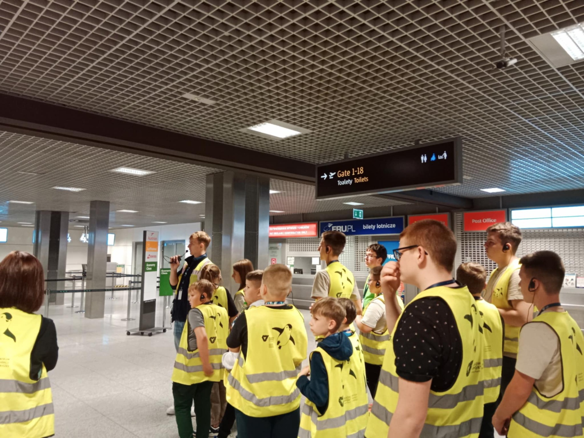Podczas zajęć uczniowie poznali kluczowe elementy infrastruktury terminalowej oraz lotnicze sformułowania w języku angielskim.