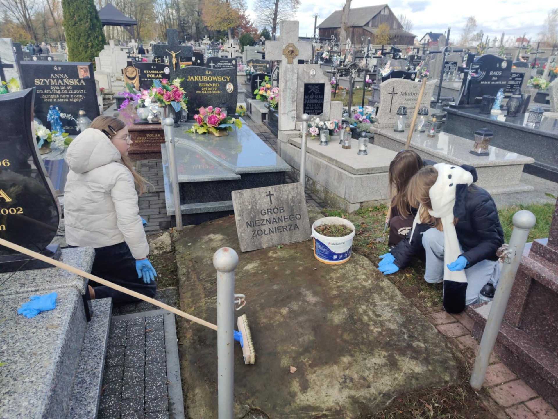 W dniu 29.10.2025 roku harcerki z drużyny harcerskiej „Chaberki” wzięły udział w akcji sprzątania Grobu Nieznanego Żołnierza. Z zaangażowaniem i harcerską postawą porządkowały otoczenie pomnika, usuwając liście i dbając o estetyczny wygląd miejsca pamięci. Na zakończenie harcerki zapaliły znicz, oddając w ten sposób hołd wszystkim poległym, którzy walczyli za wolność i niepodległość Ojczyzny. Był to moment refleksji i zadumy nad wartością służby oraz poświęcenia dla dobra innych. Dzięki tej inicjatywie „Chaberki” pokazały, że pamięć o bohaterach jest wciąż żywa, a harcerskie ideały – takie jak służba, patriotyzm i troska o wspólne dobro – znajdują odzwierciedlenie w codziennych działaniach drużyny.