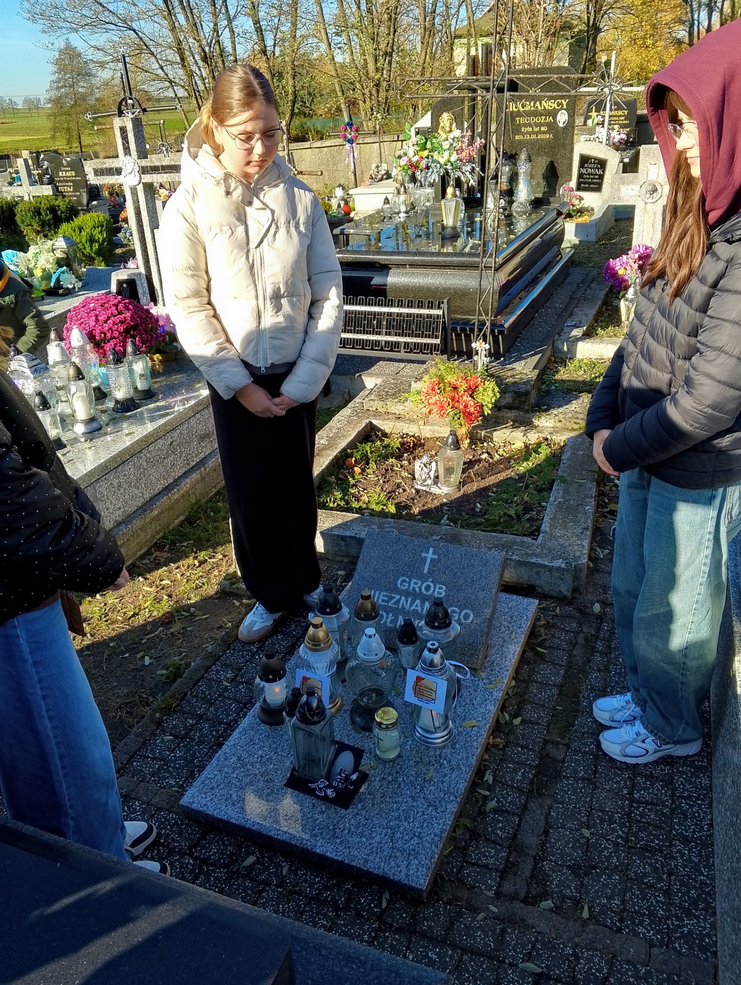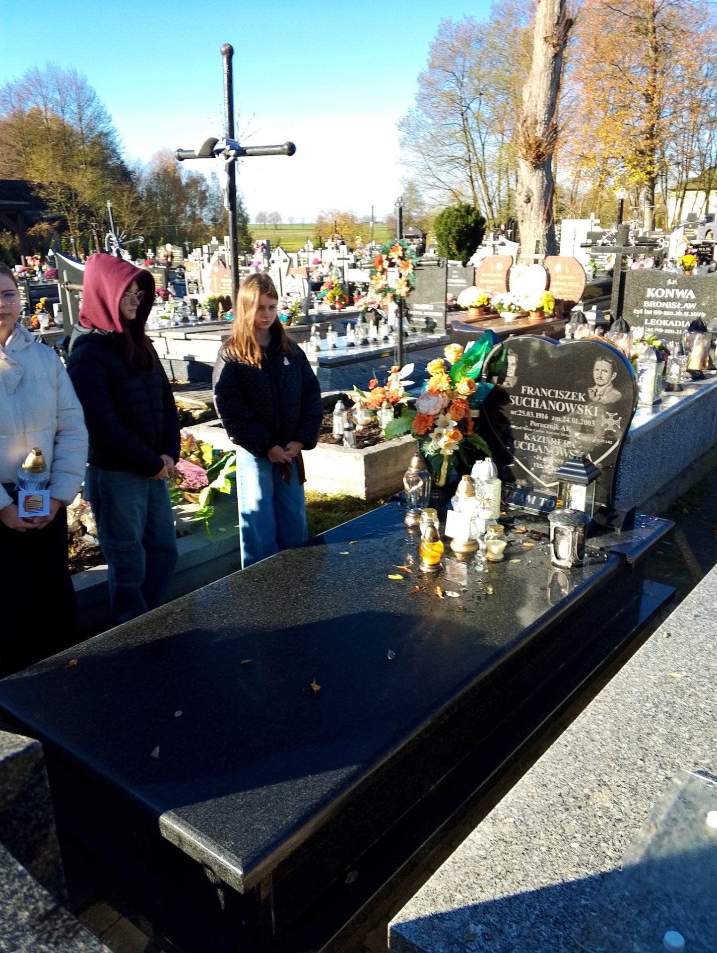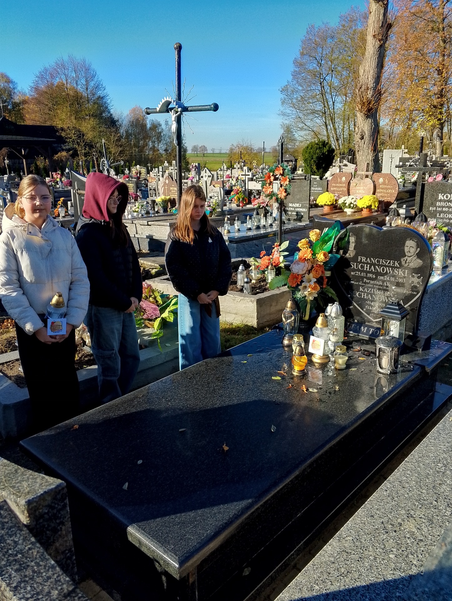 31 października uczniowie naszej szkoły udali się na cmentarz, zapalić znicze i złożyć wiązankę na grobie Pana Franciszka Suchanowskiego bohatera walk pod Monte Cassino oraz grobach Nieznanego Żołnierza.