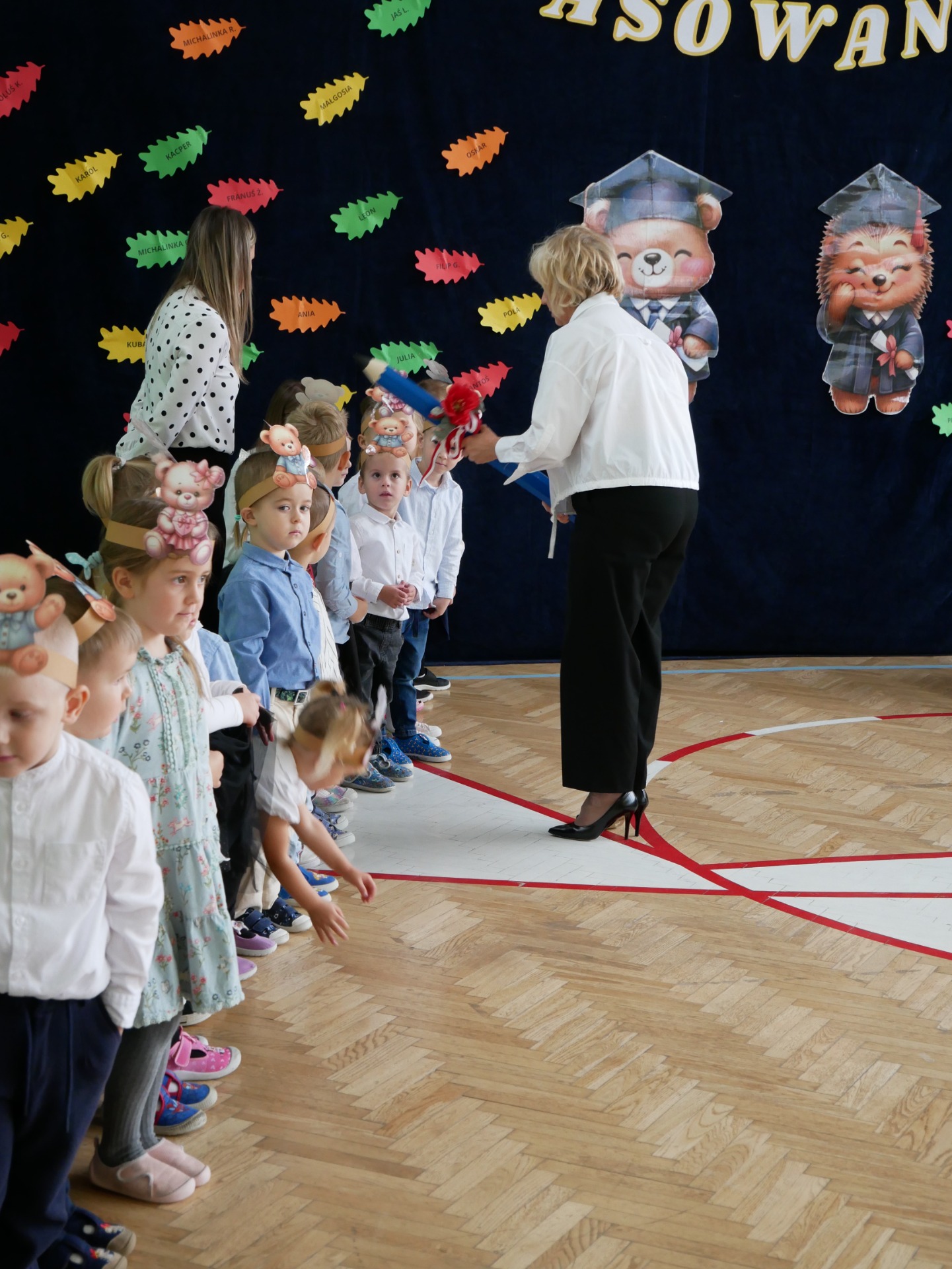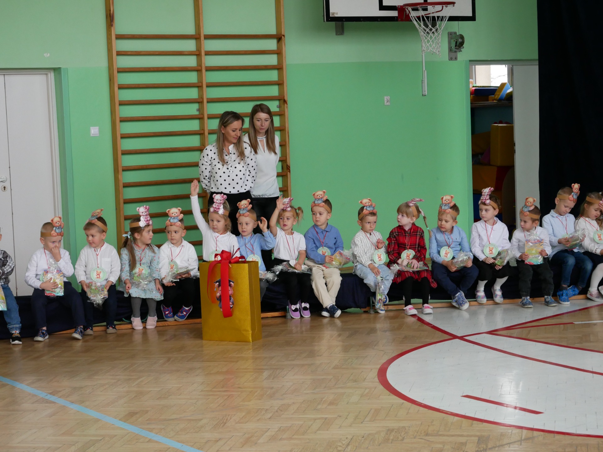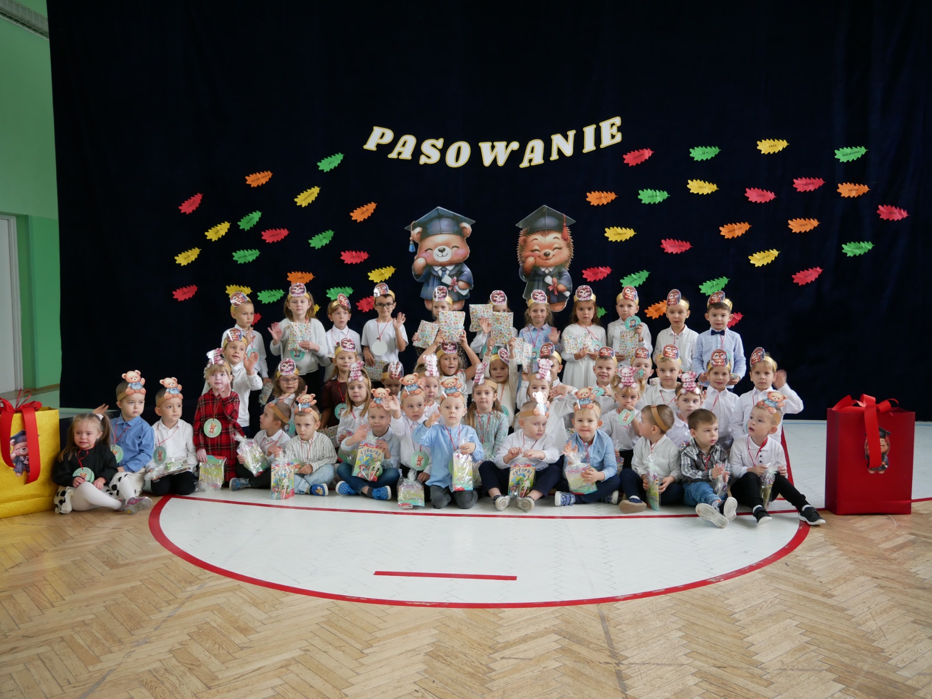 28 października odbyło się Pasowanie na przedszkolaka i starszaka. Uroczystość rozpoczęła się od powitania zebranych gości i przedstawienia krótkiej części artystycznej, w której dzieci mogły zaprezentować swoje umiejętności. Były więc piosenki i wierszyki. Po części artystycznej, dzieci złożyły przyrzeczenie a Pani Dyrektor dokonała uroczystego pasowania każdego dziecka. Na pamiątkę tego ważnego wydarzenia każdy przedszkolak i zerówkowicz otrzymał medal i drobny upominek.